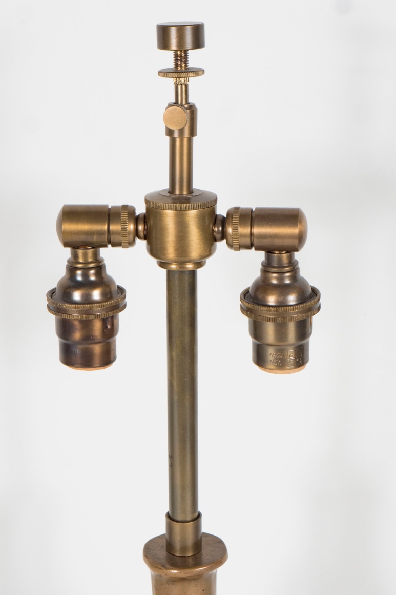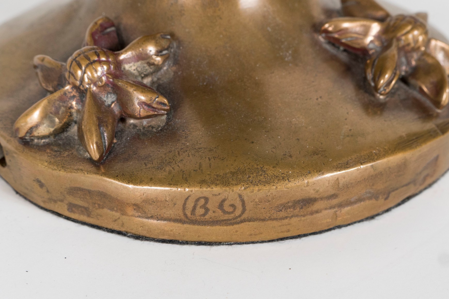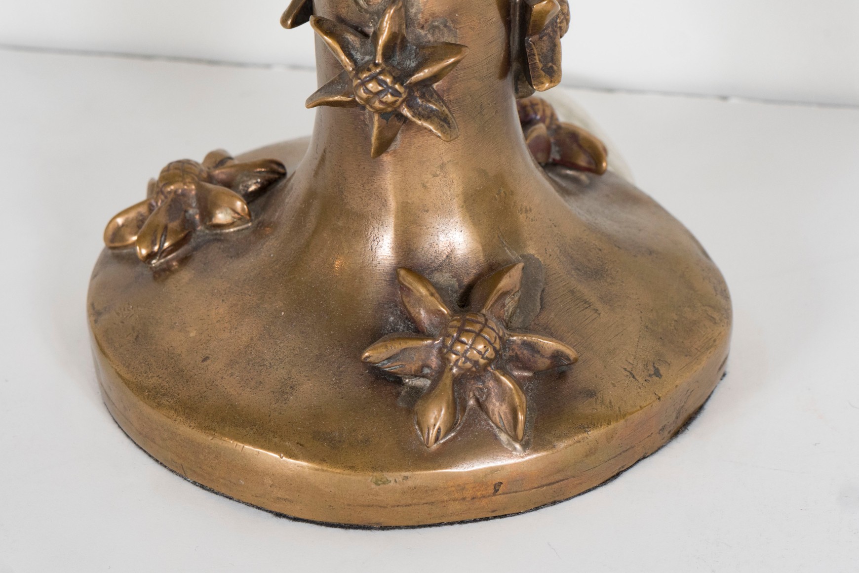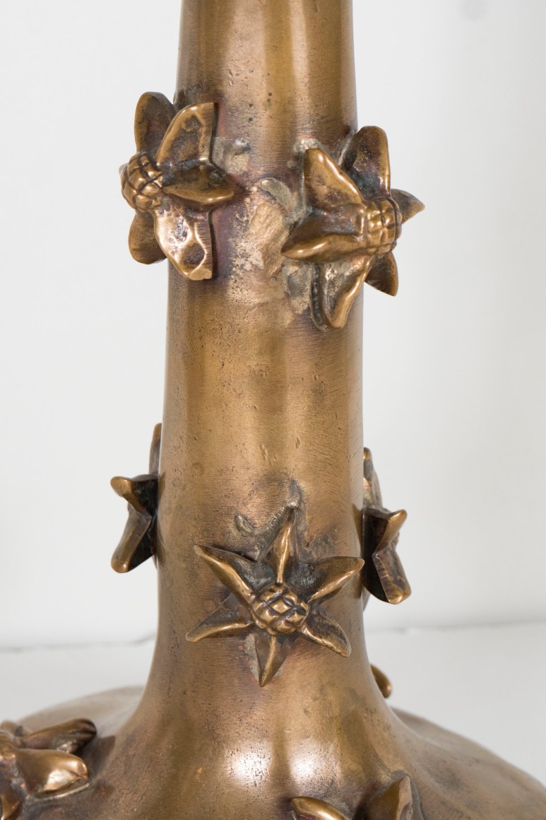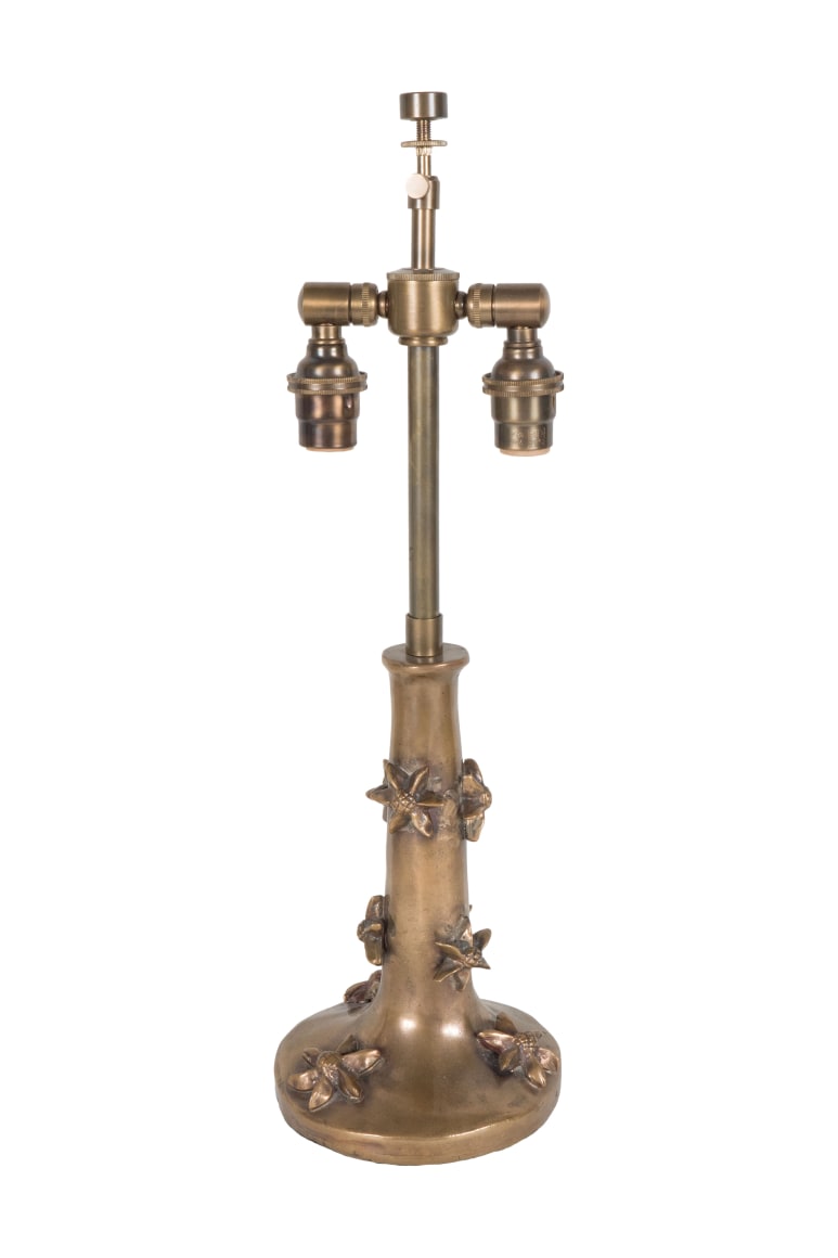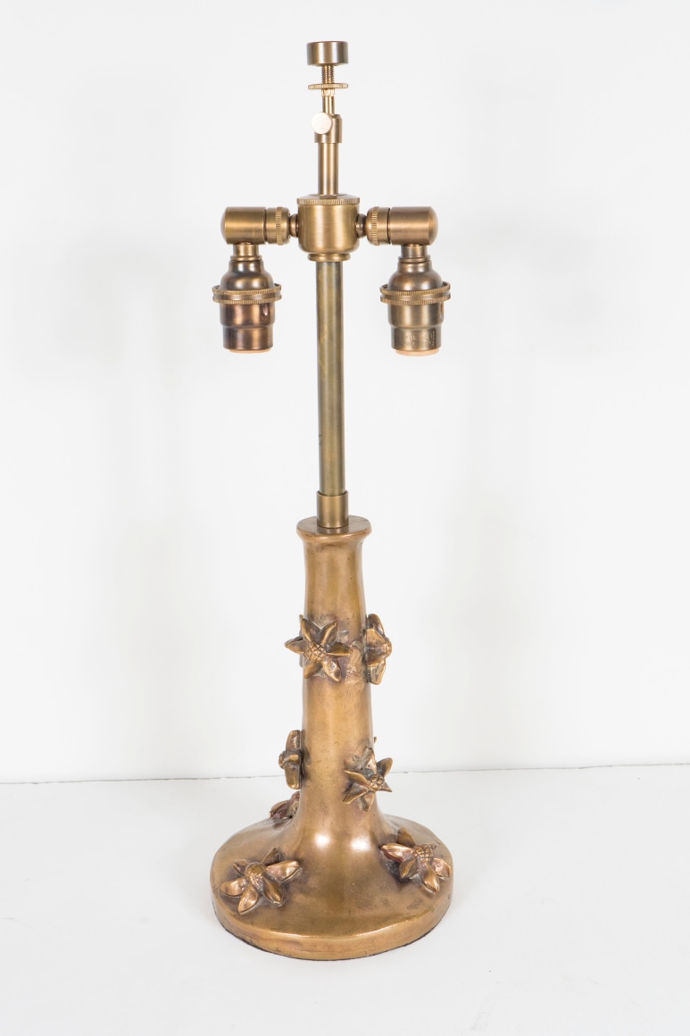 A small bronze Garouste & Bonetti Table Lamp, signed B.G., the flared base with tapering stem molded with high relief floral motifs.