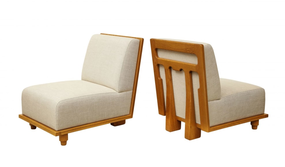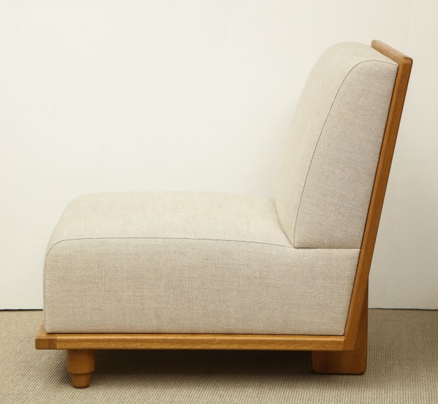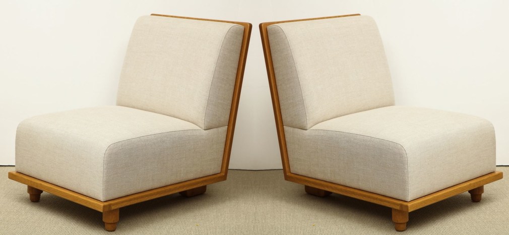 French 1940’s inspired slipper chairs with elaborate detailed back