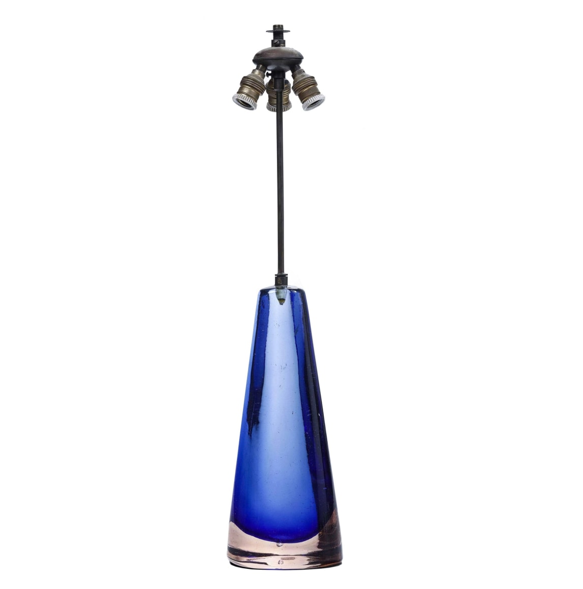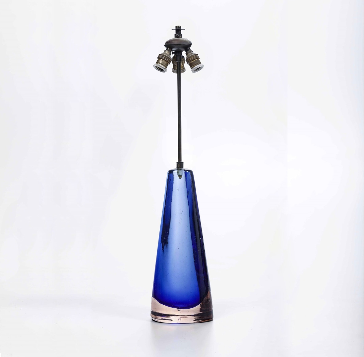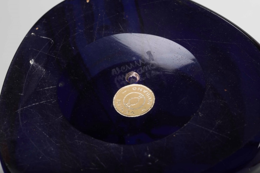 Venini : table lamp : blue murano sommerso base and nickel lamping