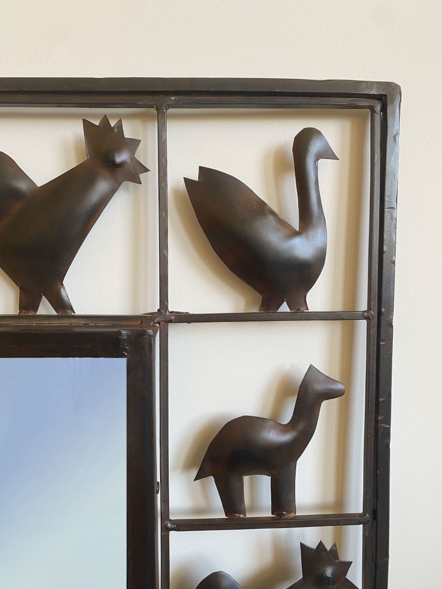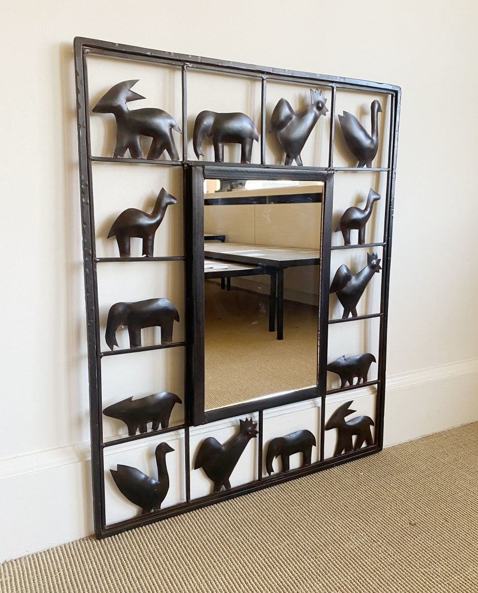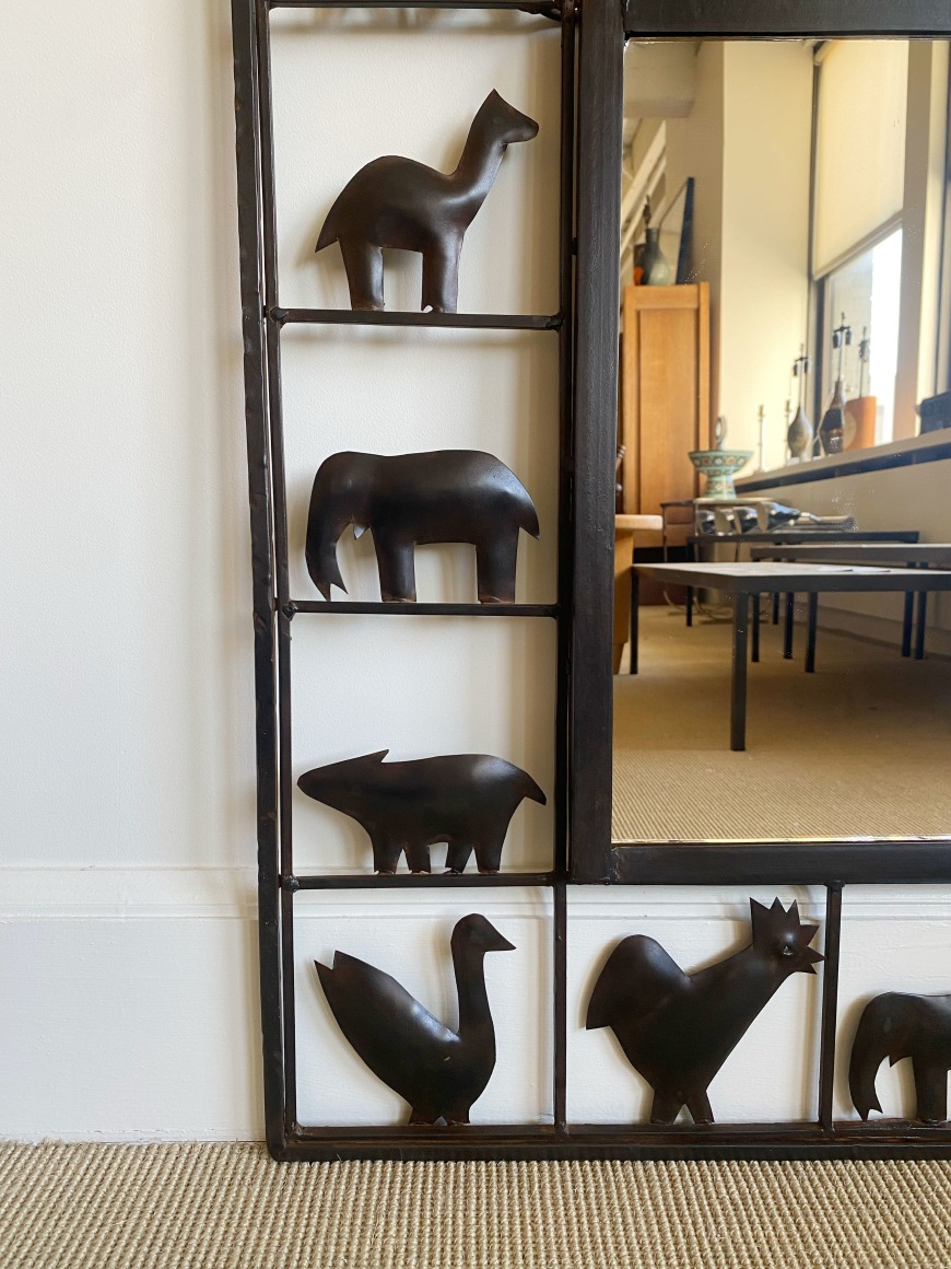 CAST IRON MIRROR WITH ANIMAL MOTIF France, c.1950
