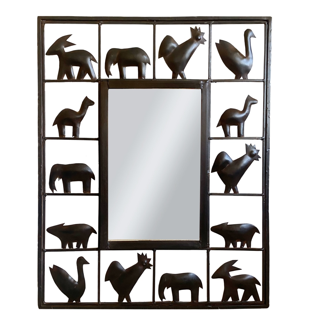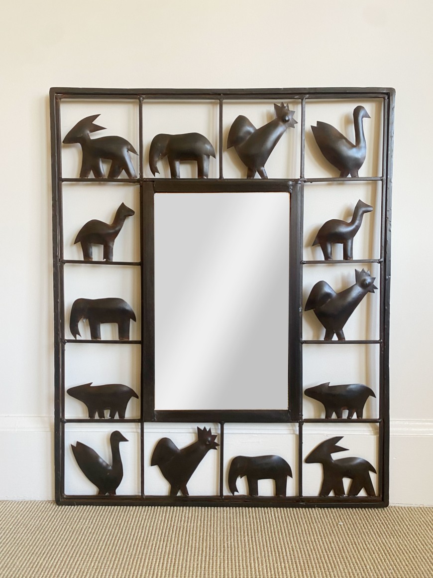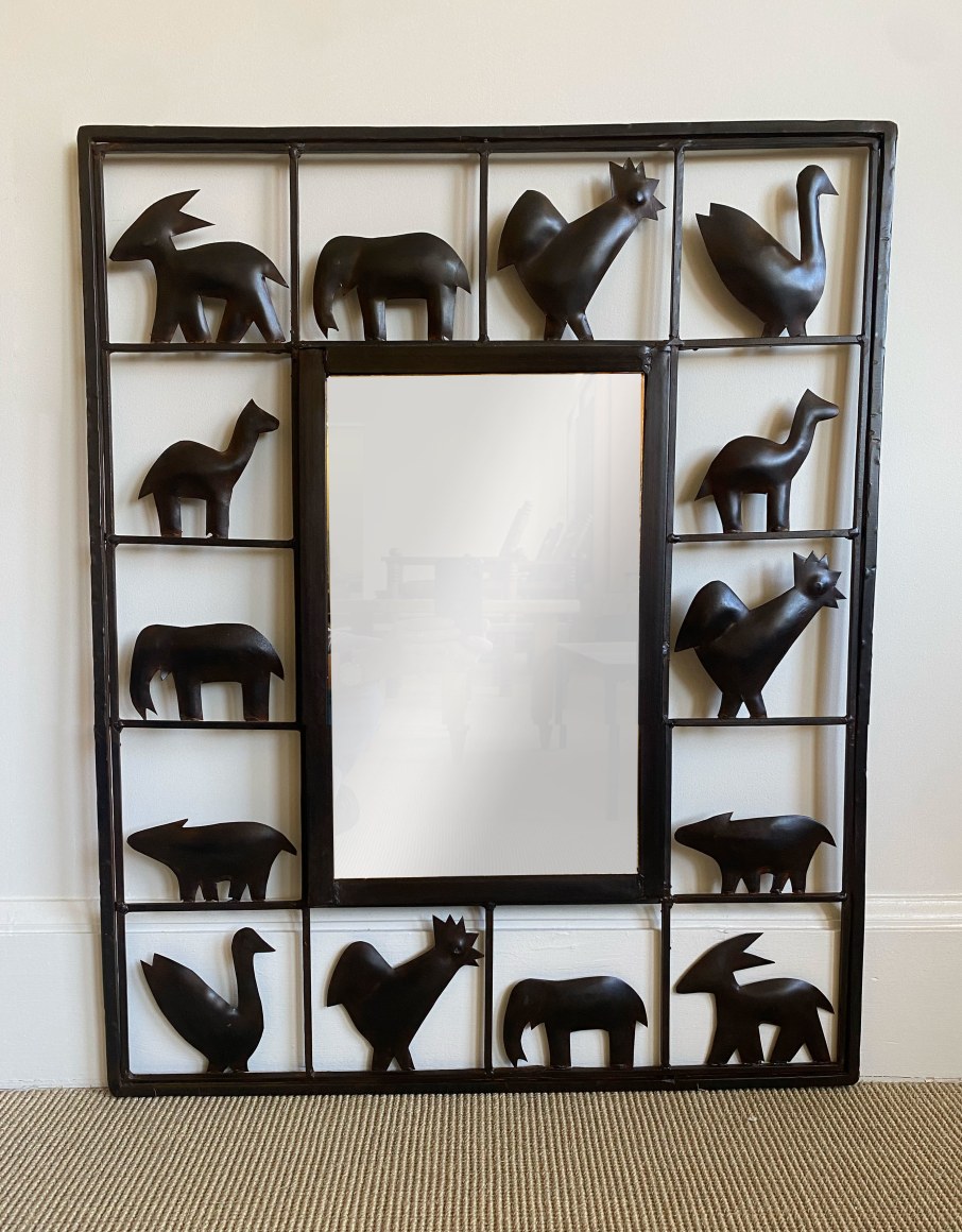 CAST IRON MIRROR WITH ANIMAL MOTIF France, c.1950