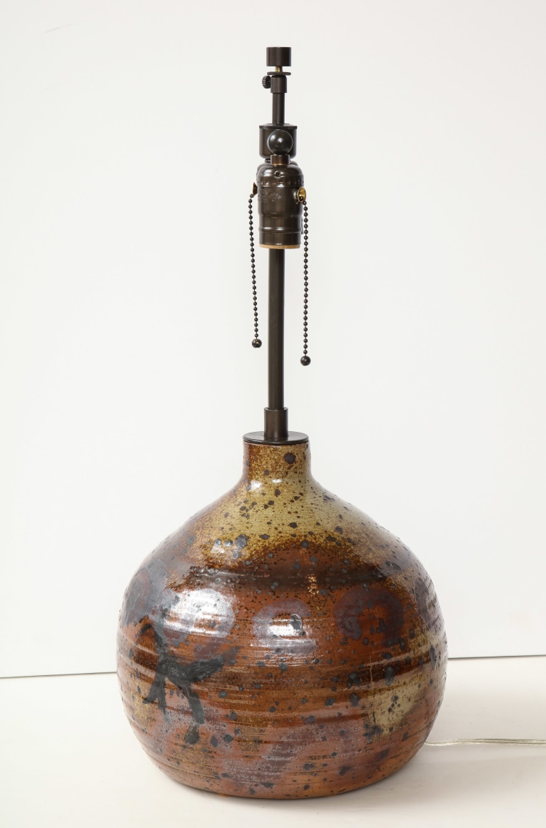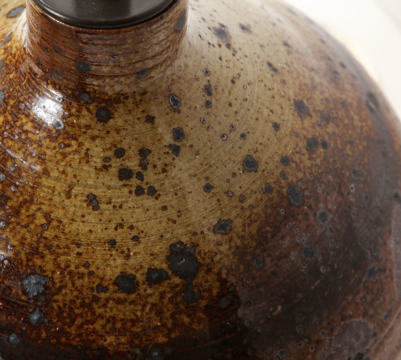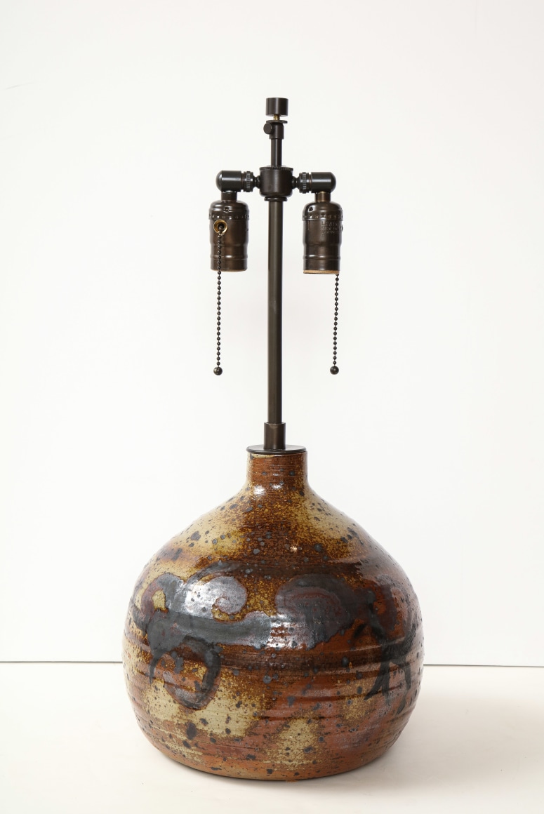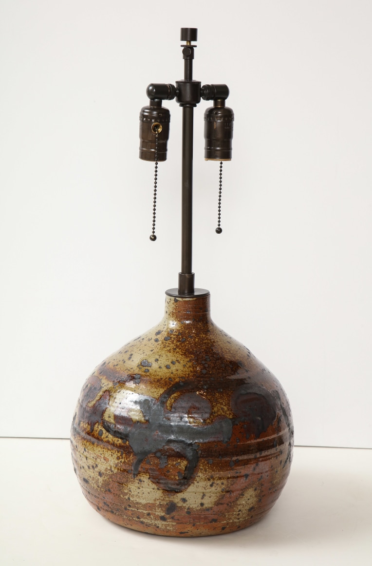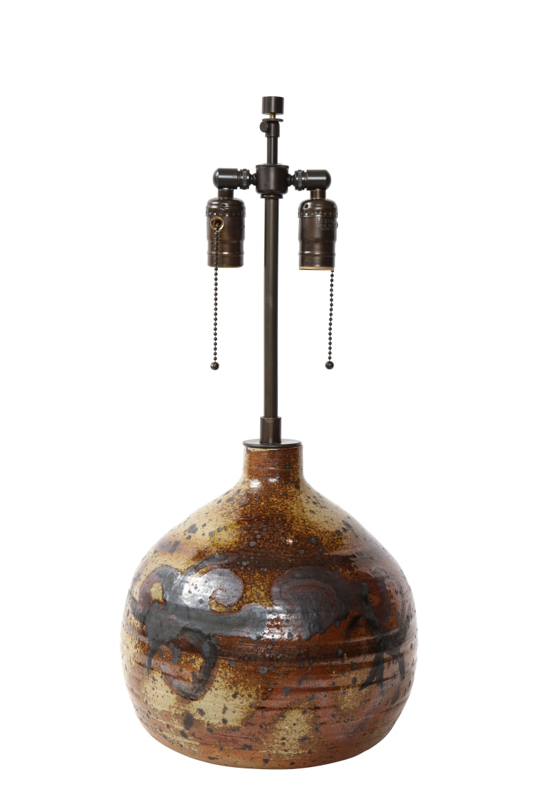 Large ceramic lamp in burnt umber finish with abstract forms from La Born