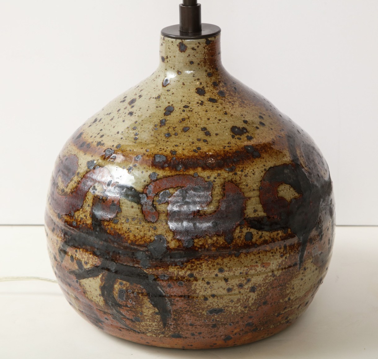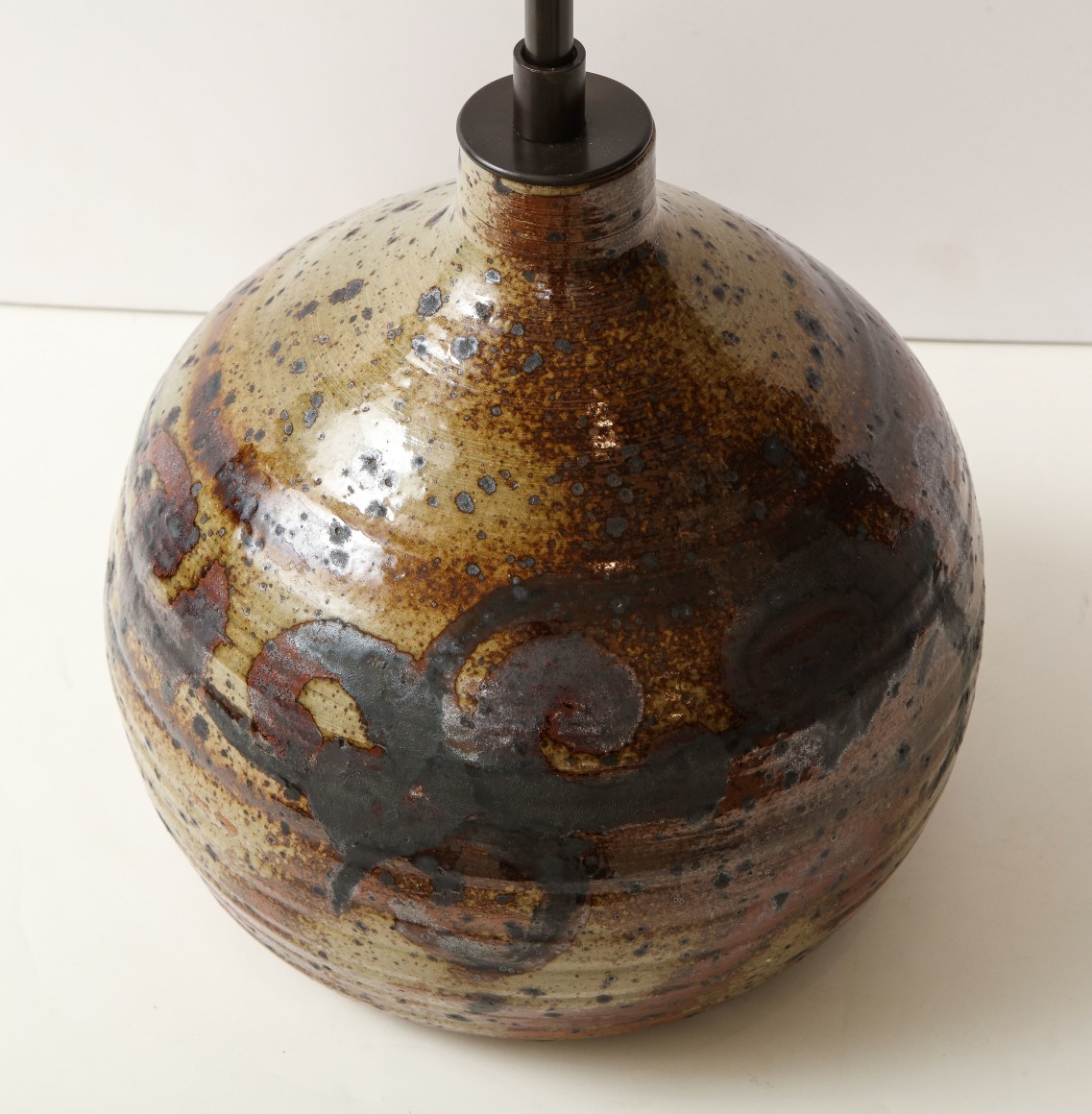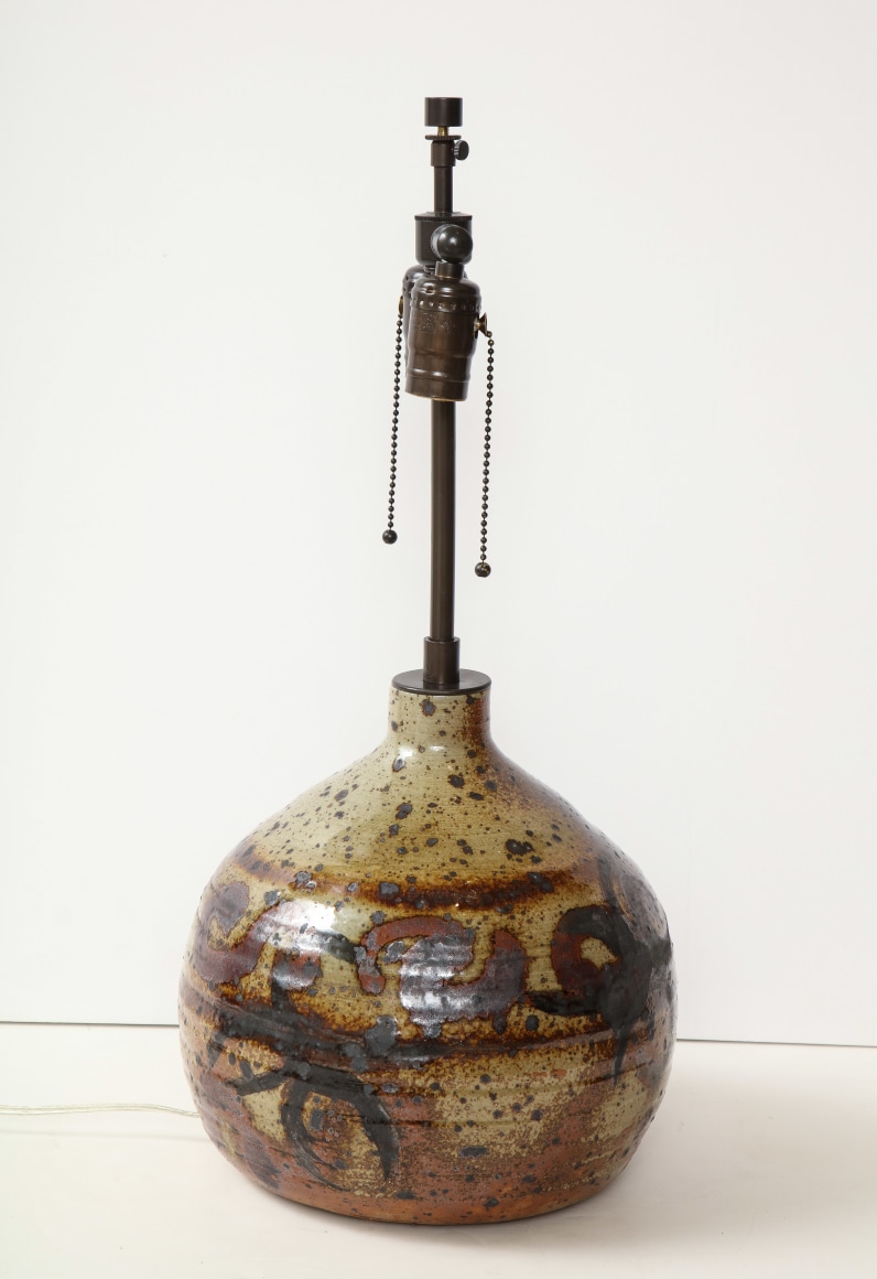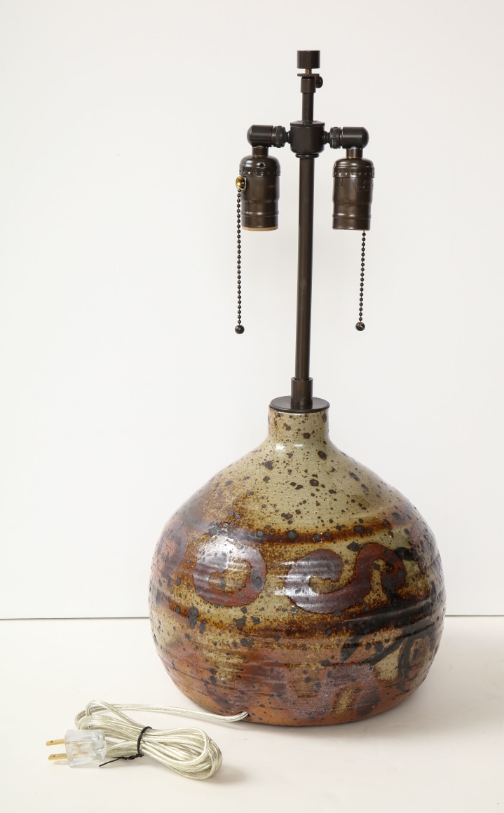 Large ceramic lamp in burnt umber finish with abstract forms from La Born