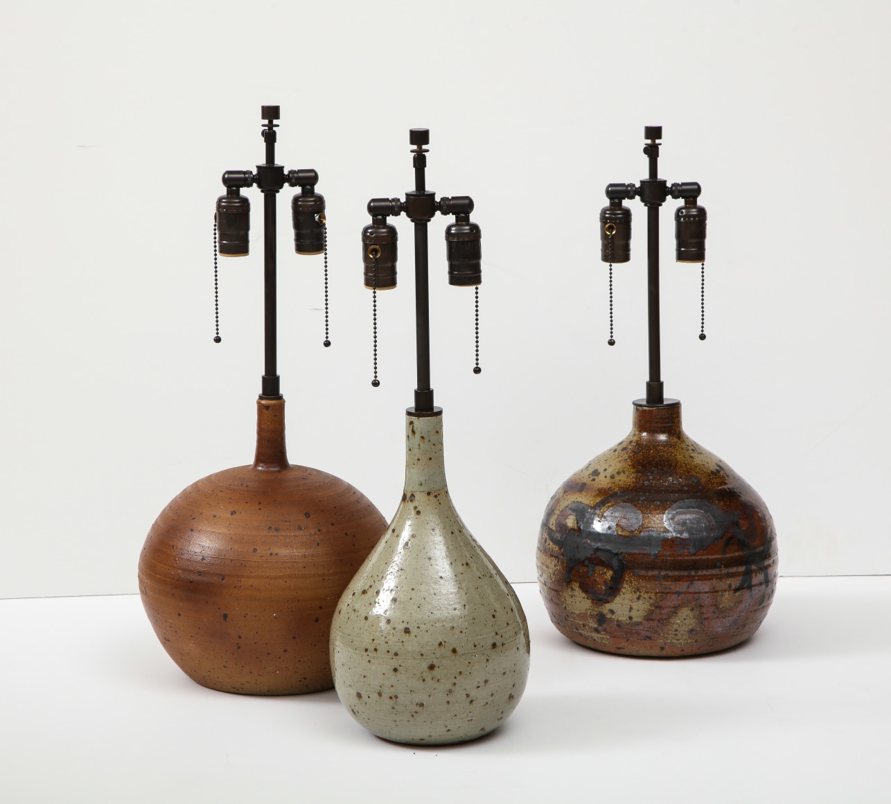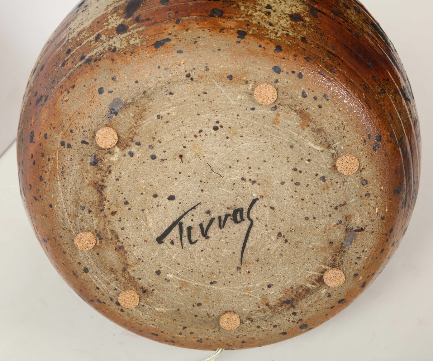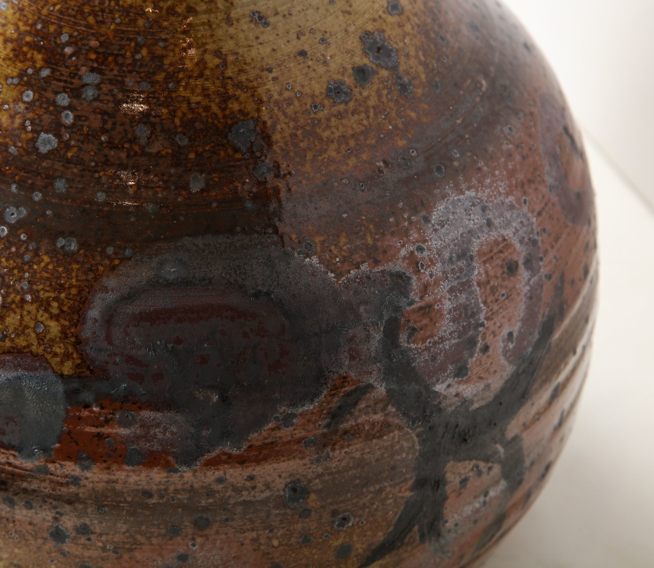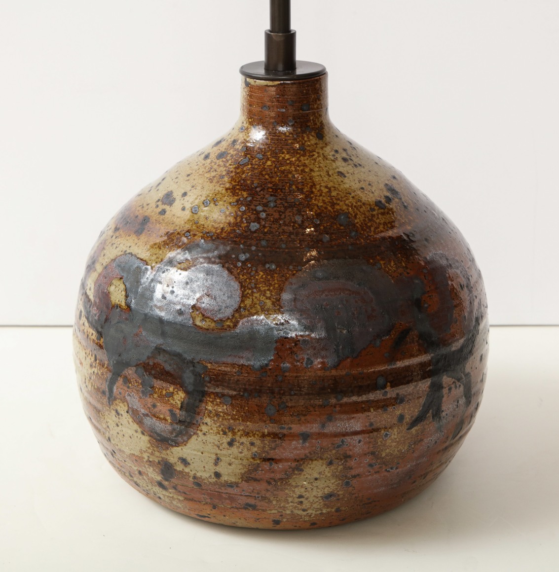 Large ceramic lamp in burnt umber finish with abstract forms from La Born