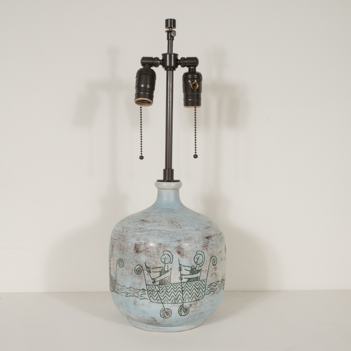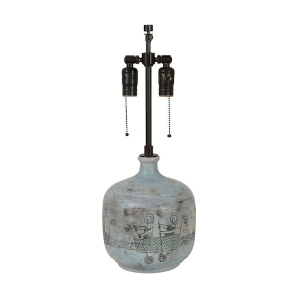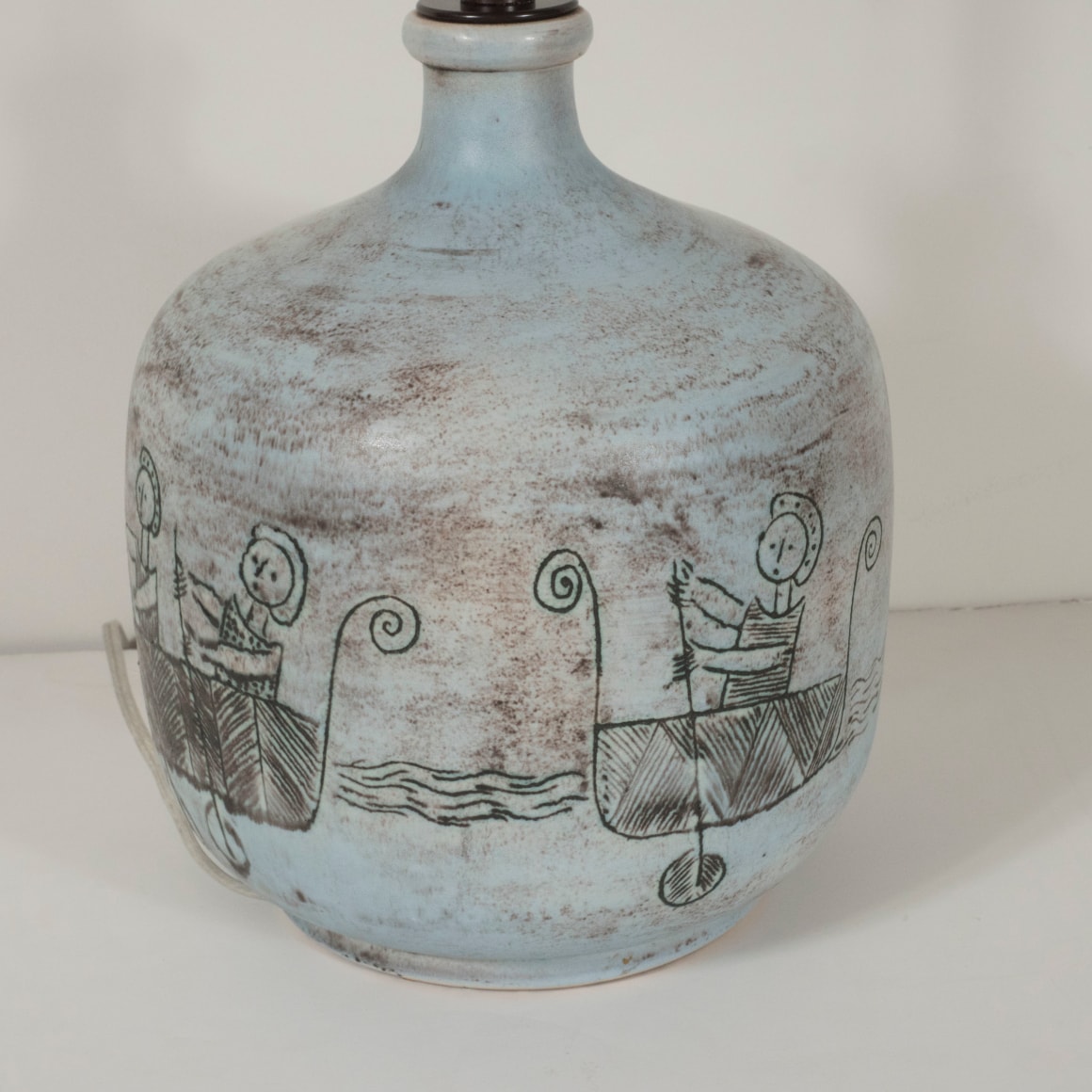 Ceramic lamp with oarsmen design by Jacques Blin, France c. 1950
