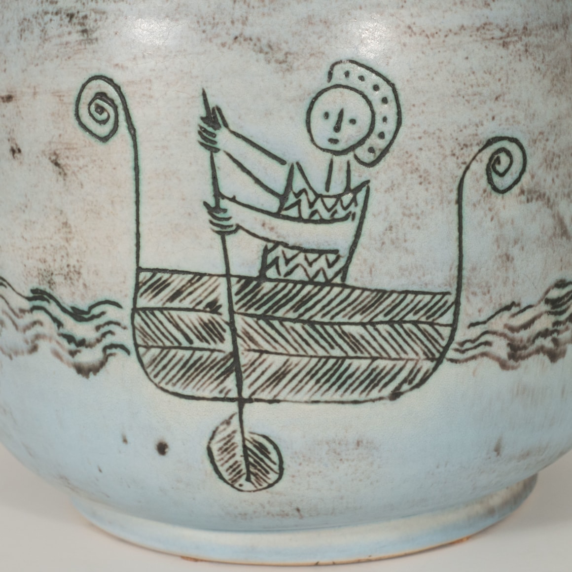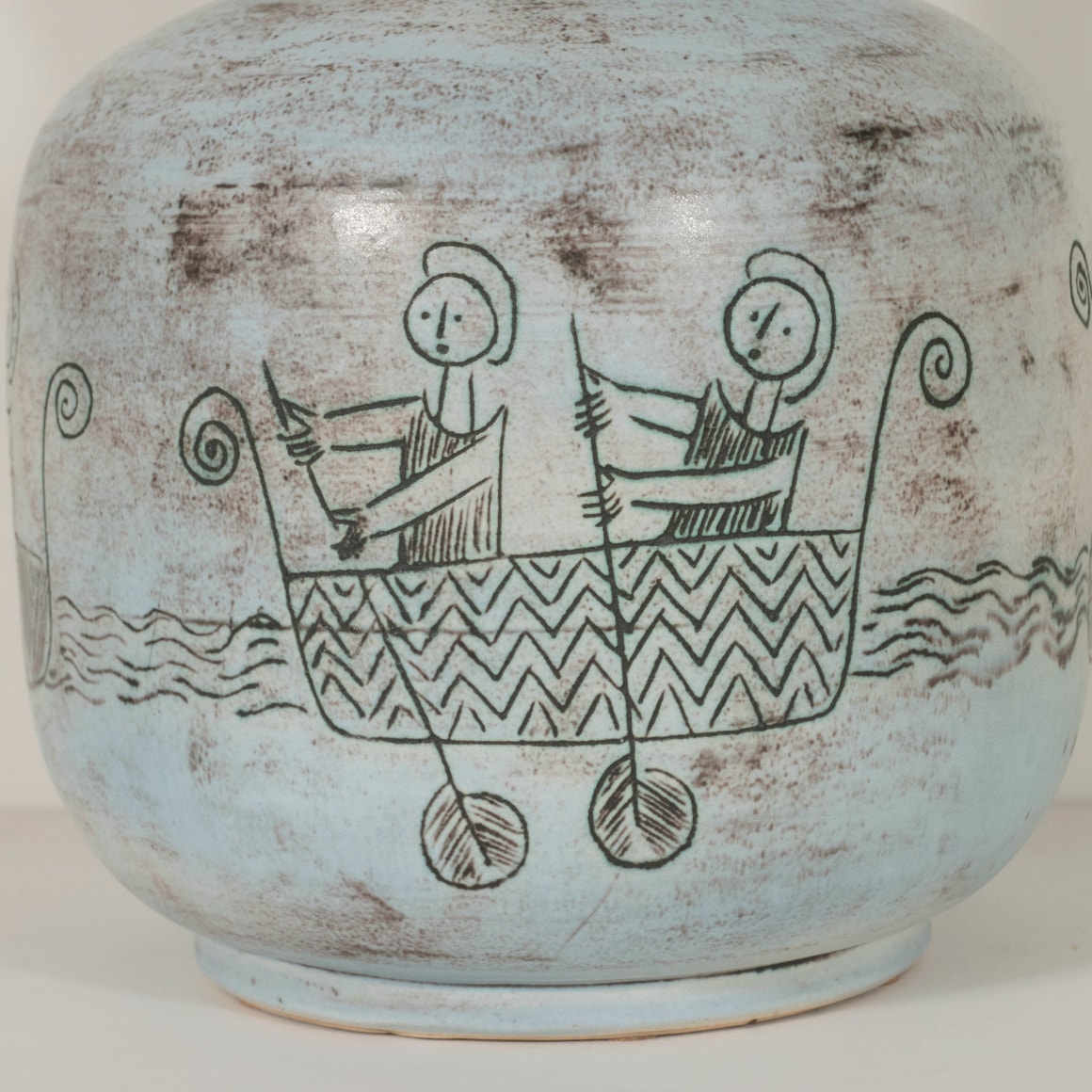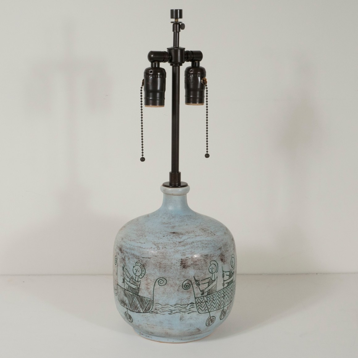 Ceramic lamp with oarsmen design by Jacques Blin, France c. 1950