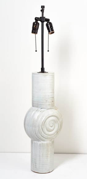 Tall white ceramic lamp, France c. 1970