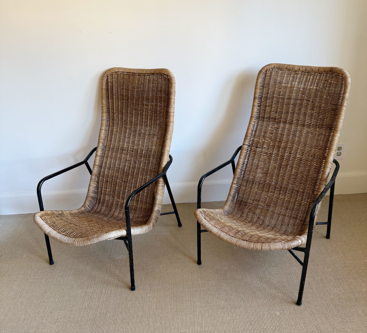 DIRK VAN SILEDREGT WICKER LOUNGE CHAIRS