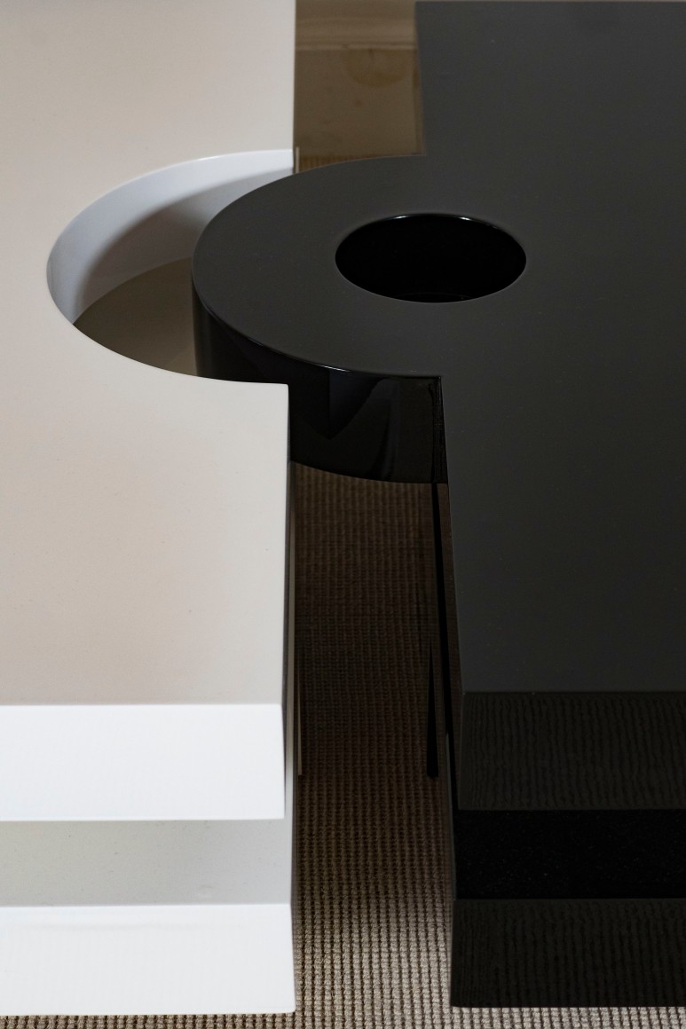 Francois Cante-Pacos, signed; Pierre Cardin coffee table, black and white "L'Amours" design