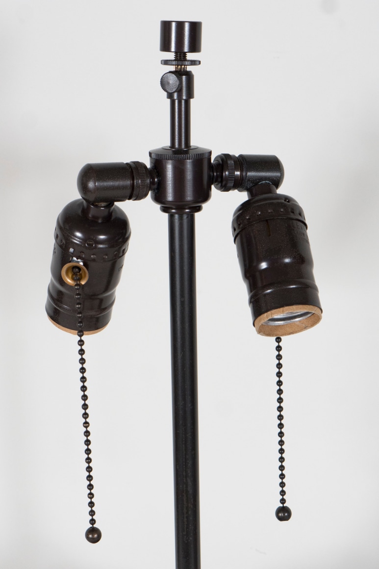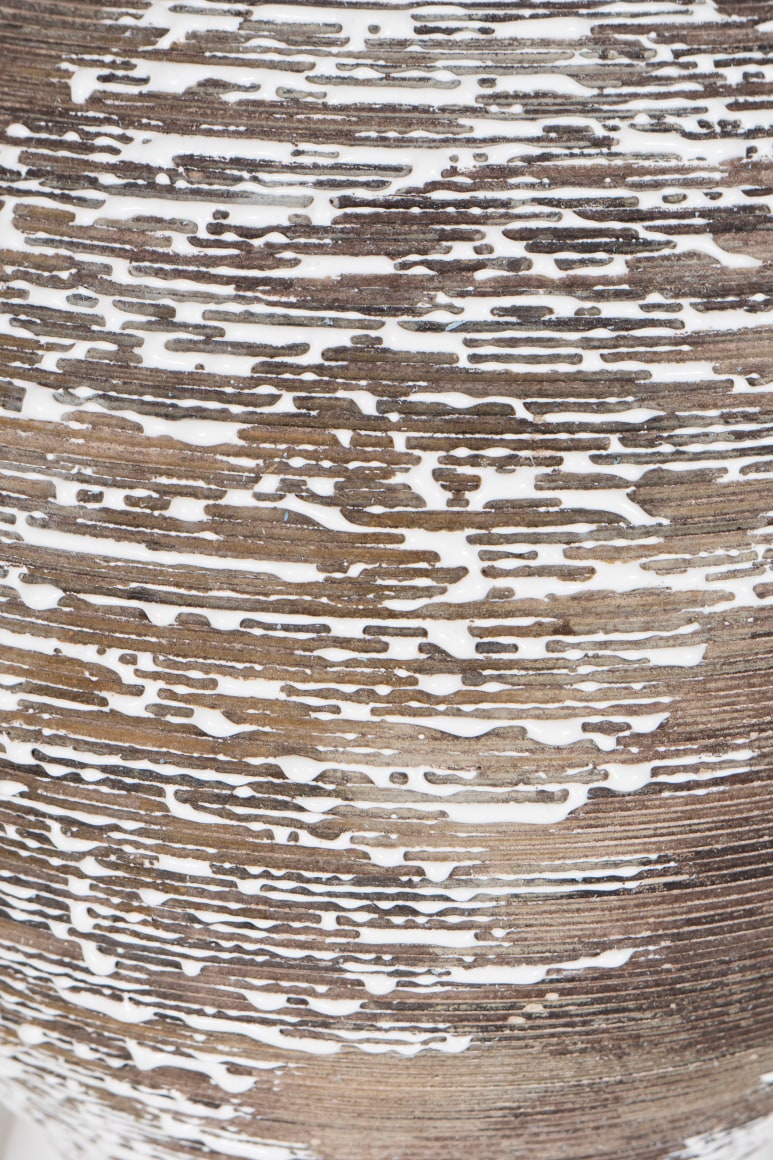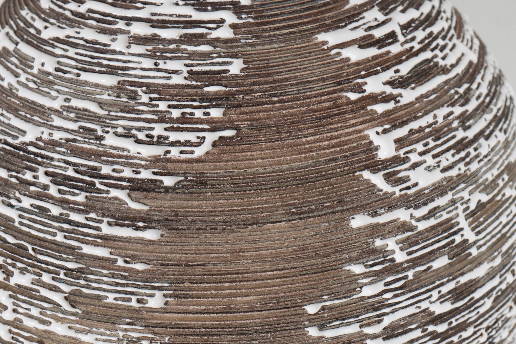 French 40's Ceramic Lamp with Textured Brown Circular Pattern and White Diagonal Low Relief Modeling.