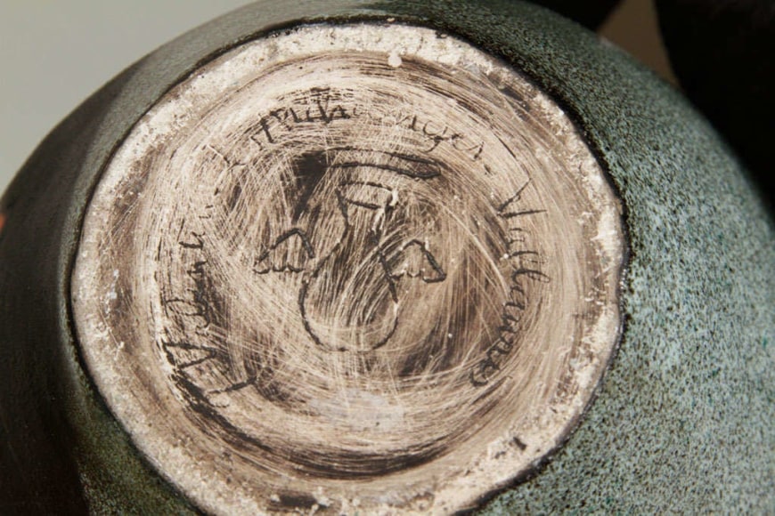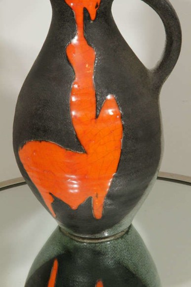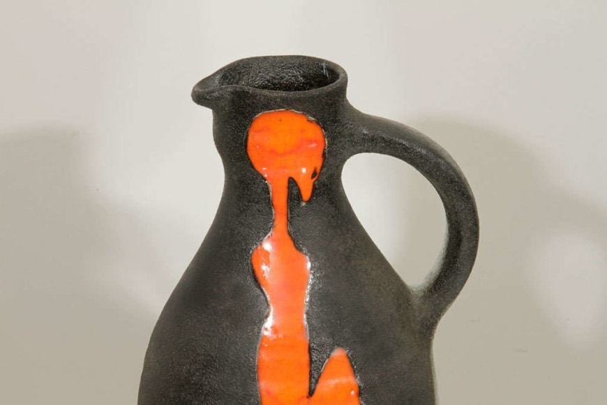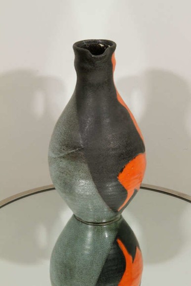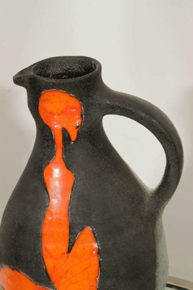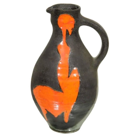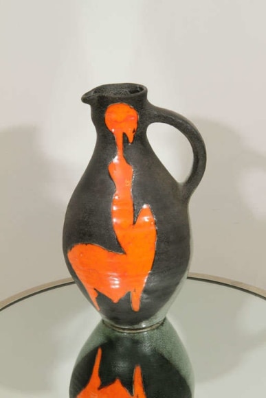 Gilbert Valentin "Les Archanges" painted ceramic jug with bold abstract design, Vallauris, France c. 1950