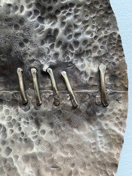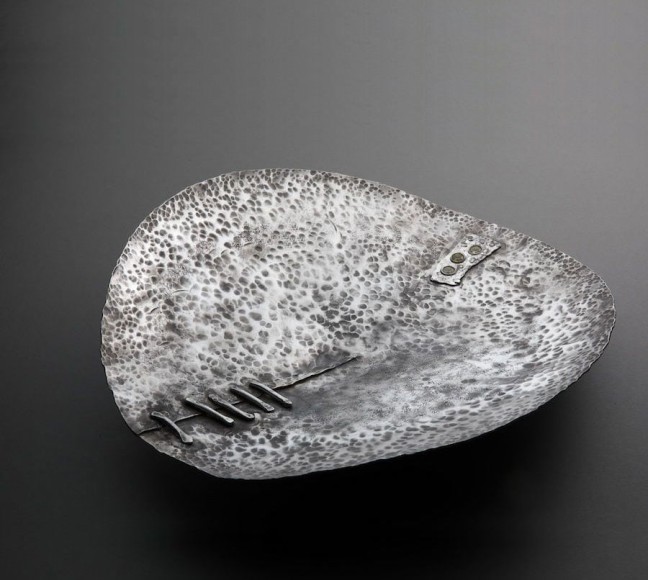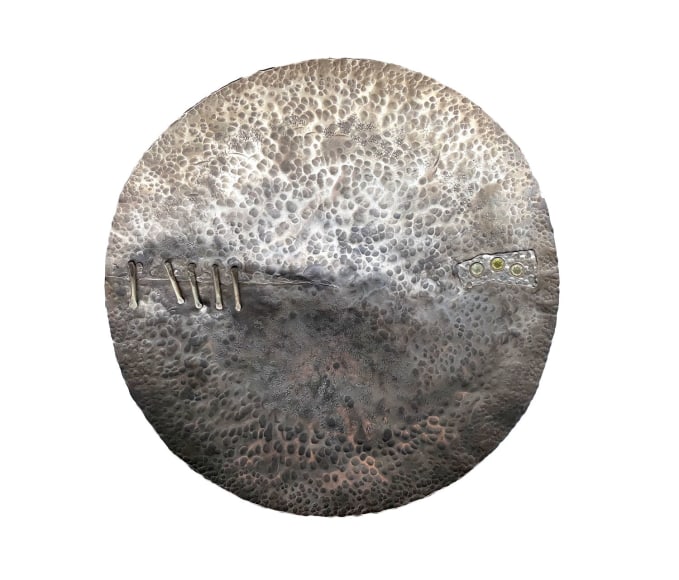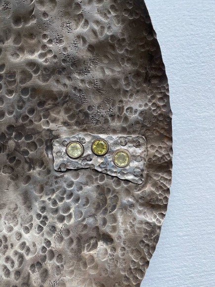 Unique hammered bowl set with three stones in solid French silver by Artist Jean Grisoni 16" H: 4"