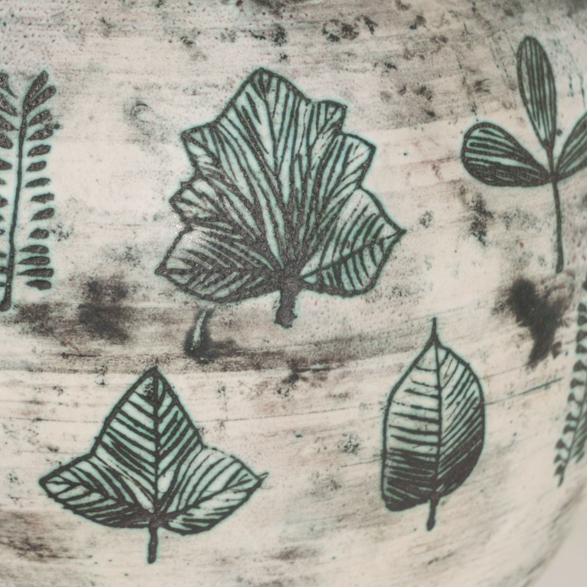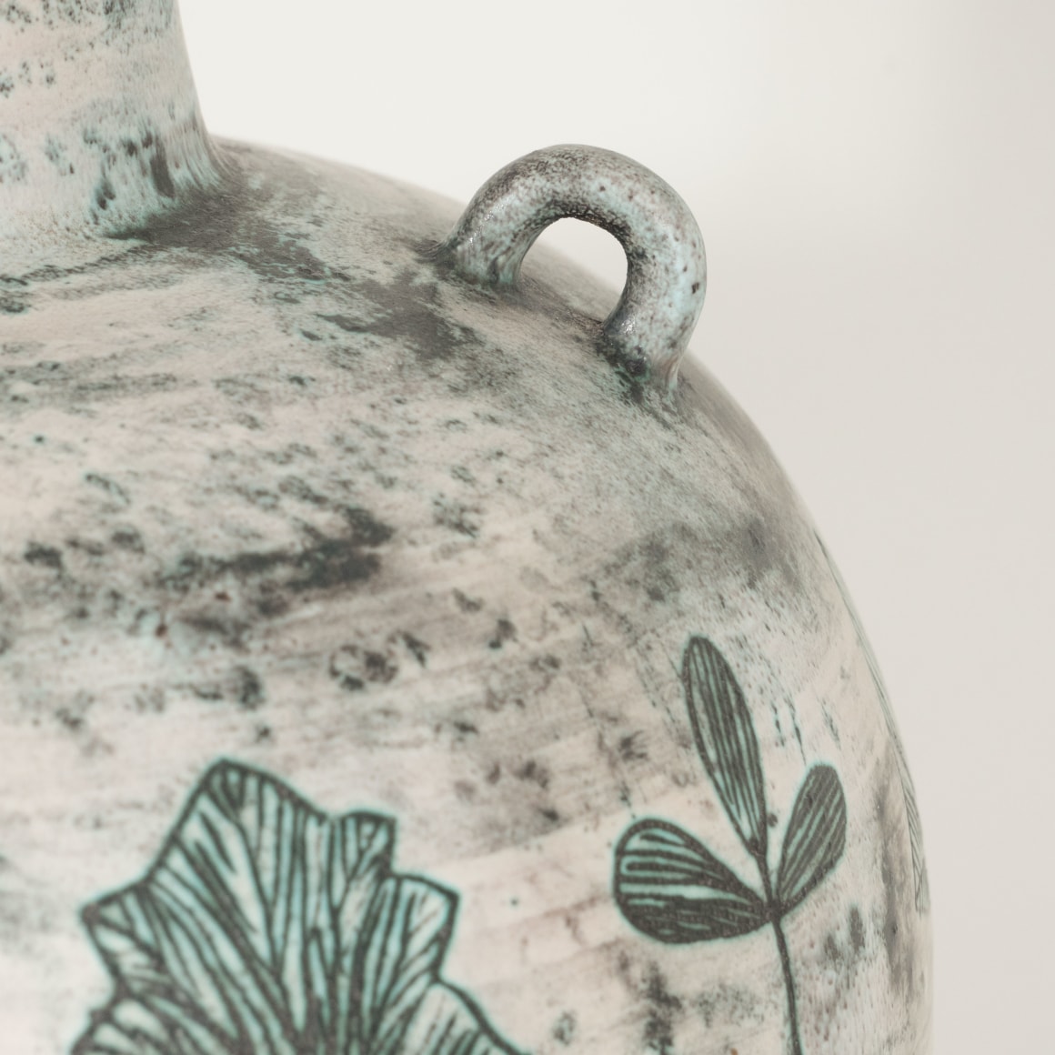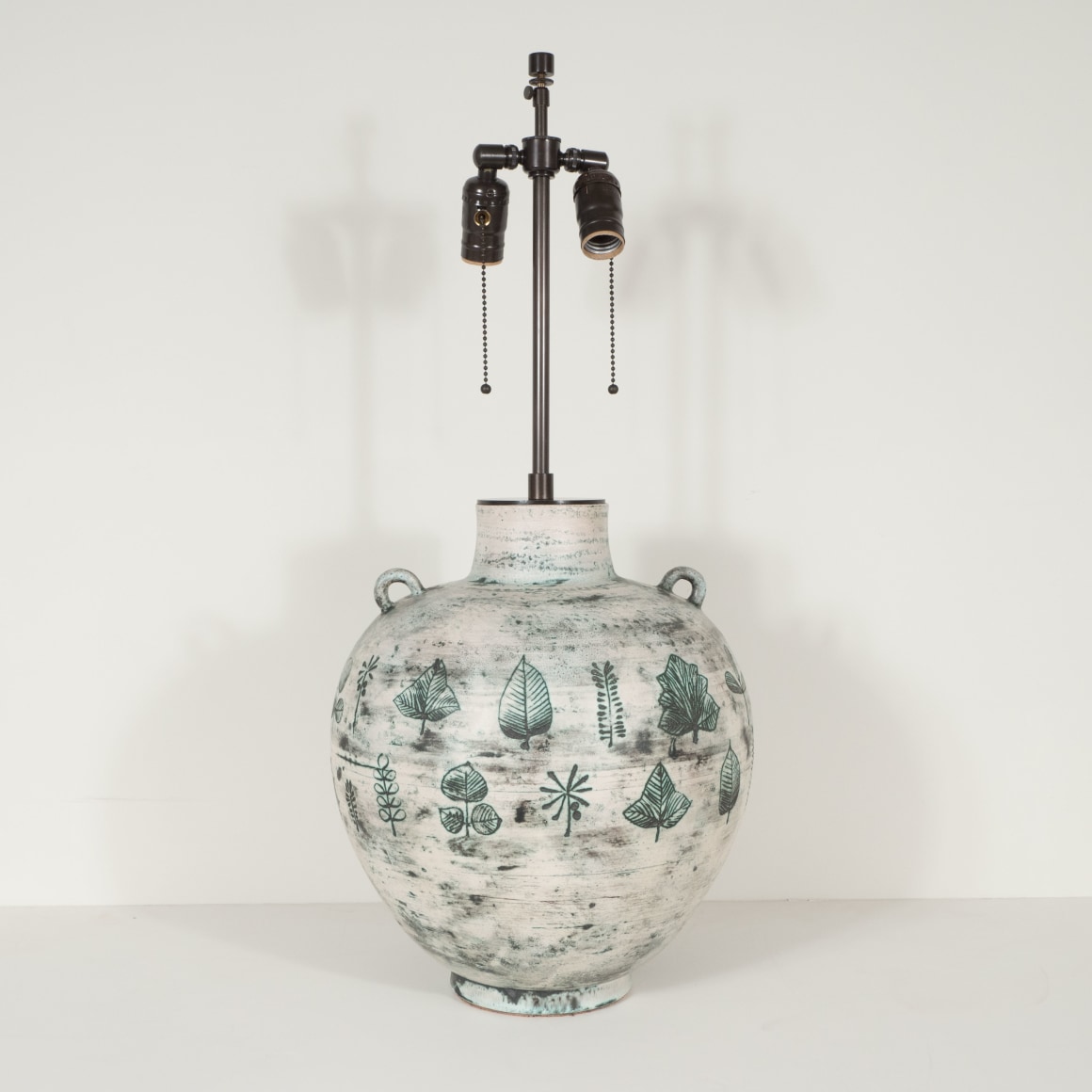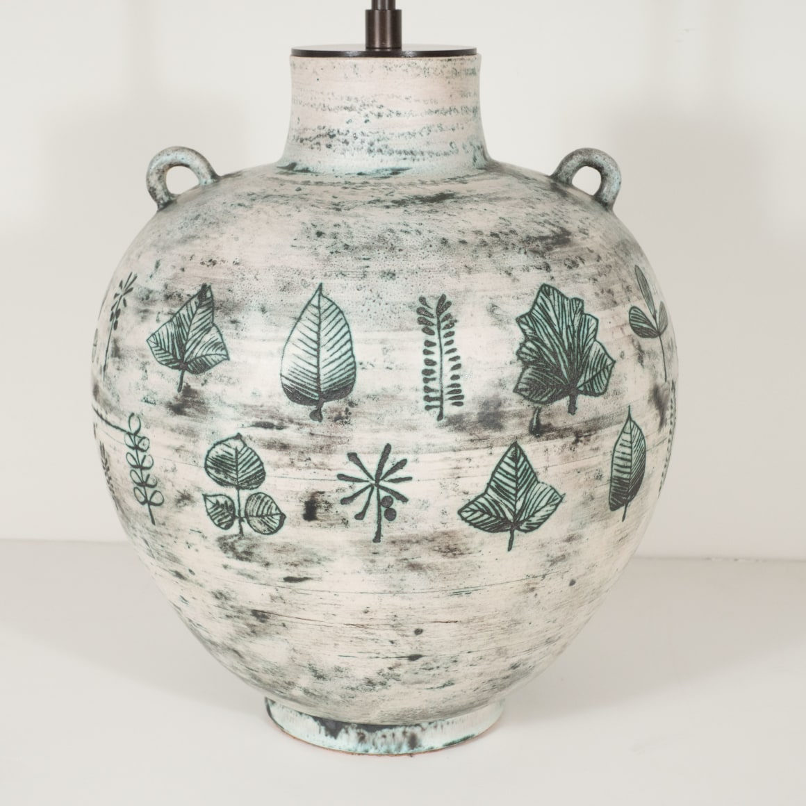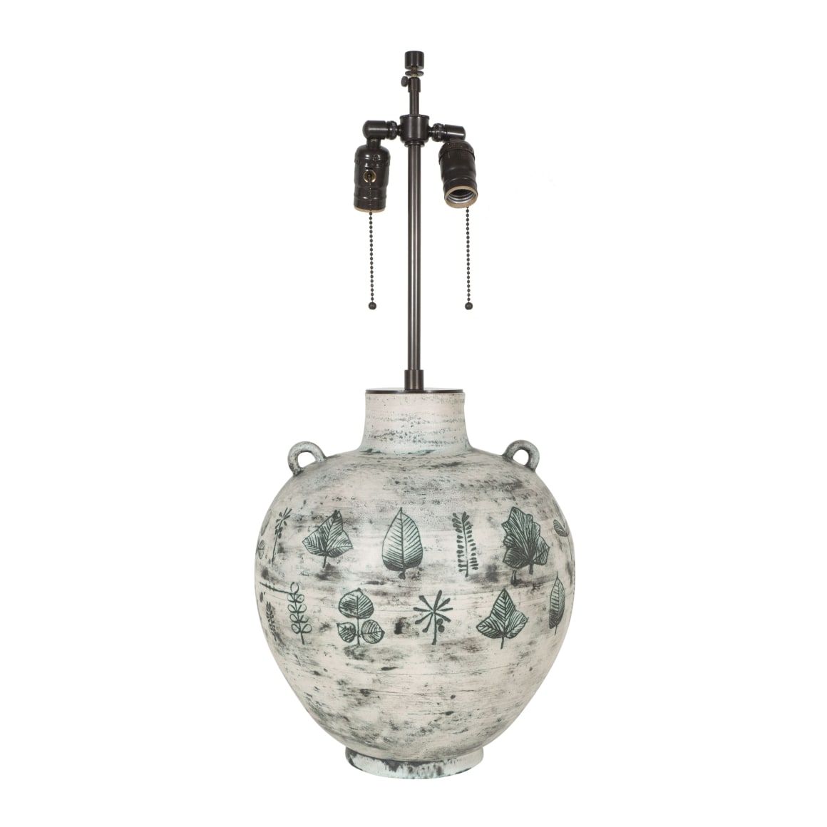 Large white and green ceramic lamp with leaf design by Jacques Blin, France c. 1950