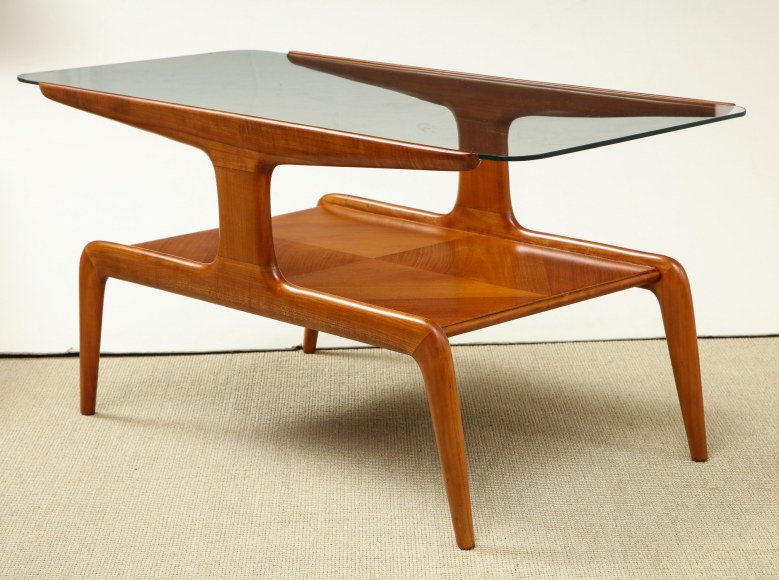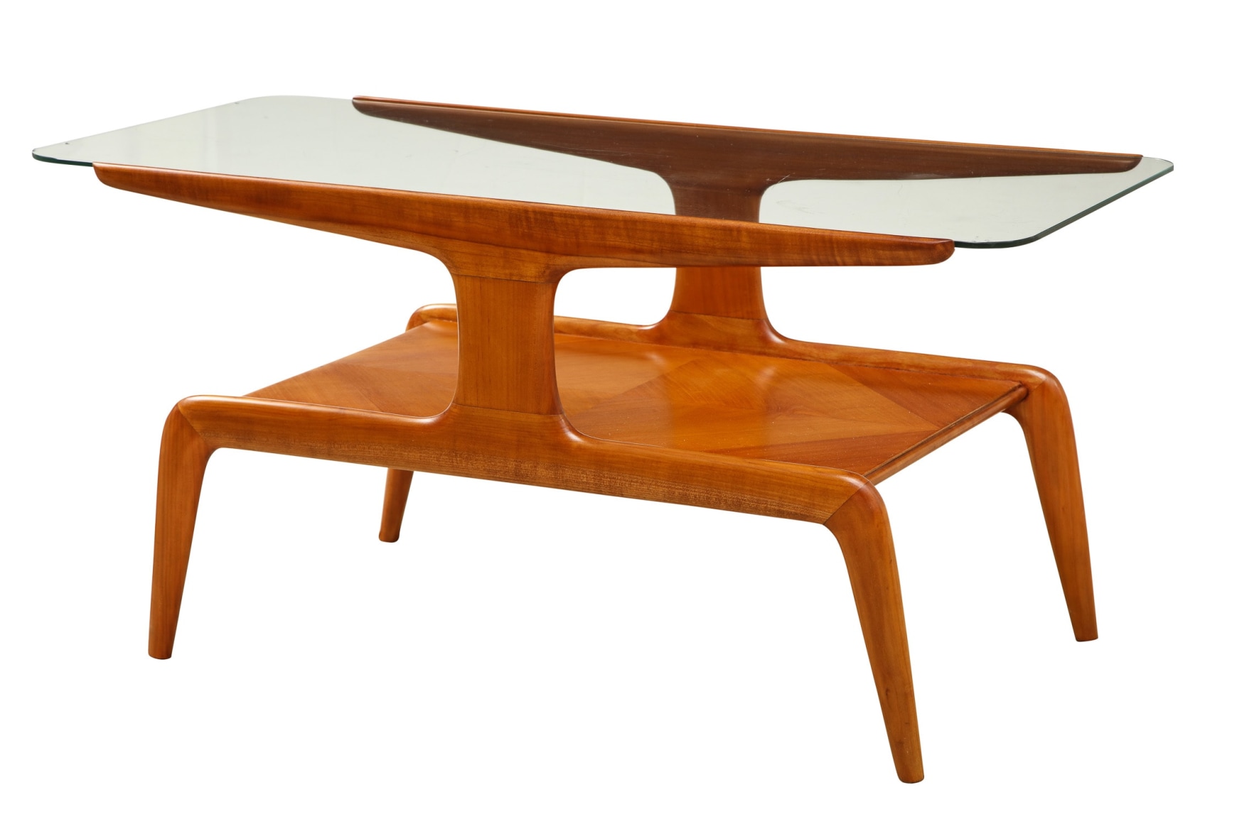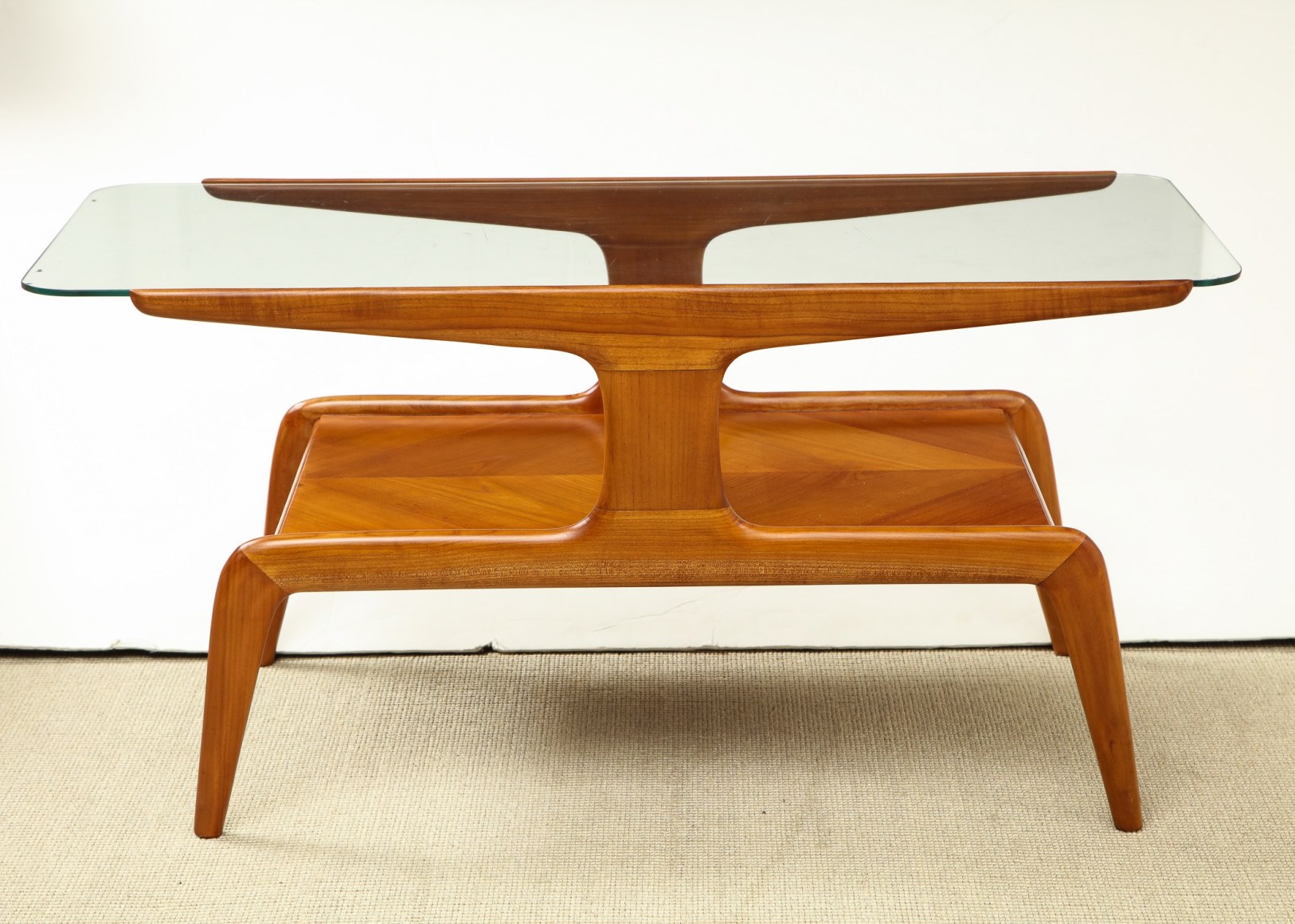 Low table in walnut with glass top by Gio Ponti, Italy c. 1950