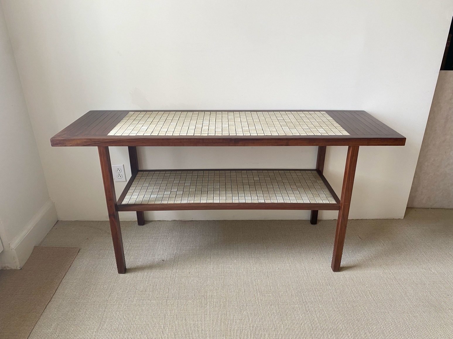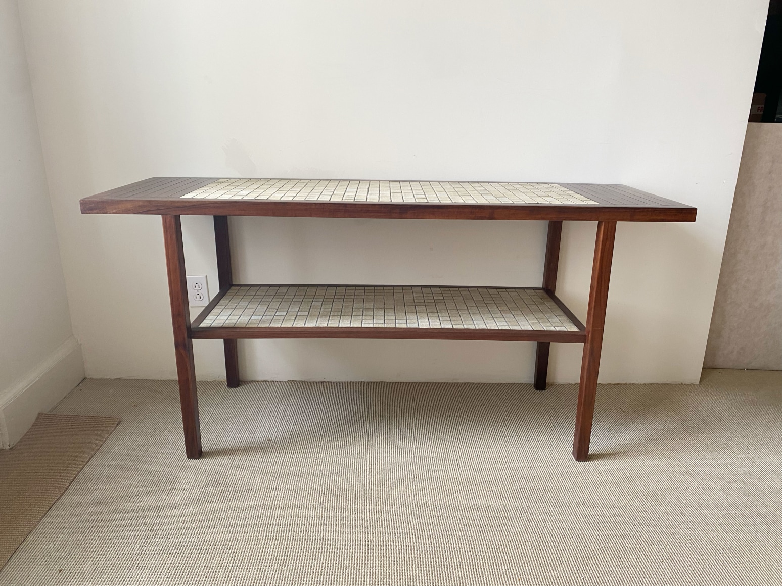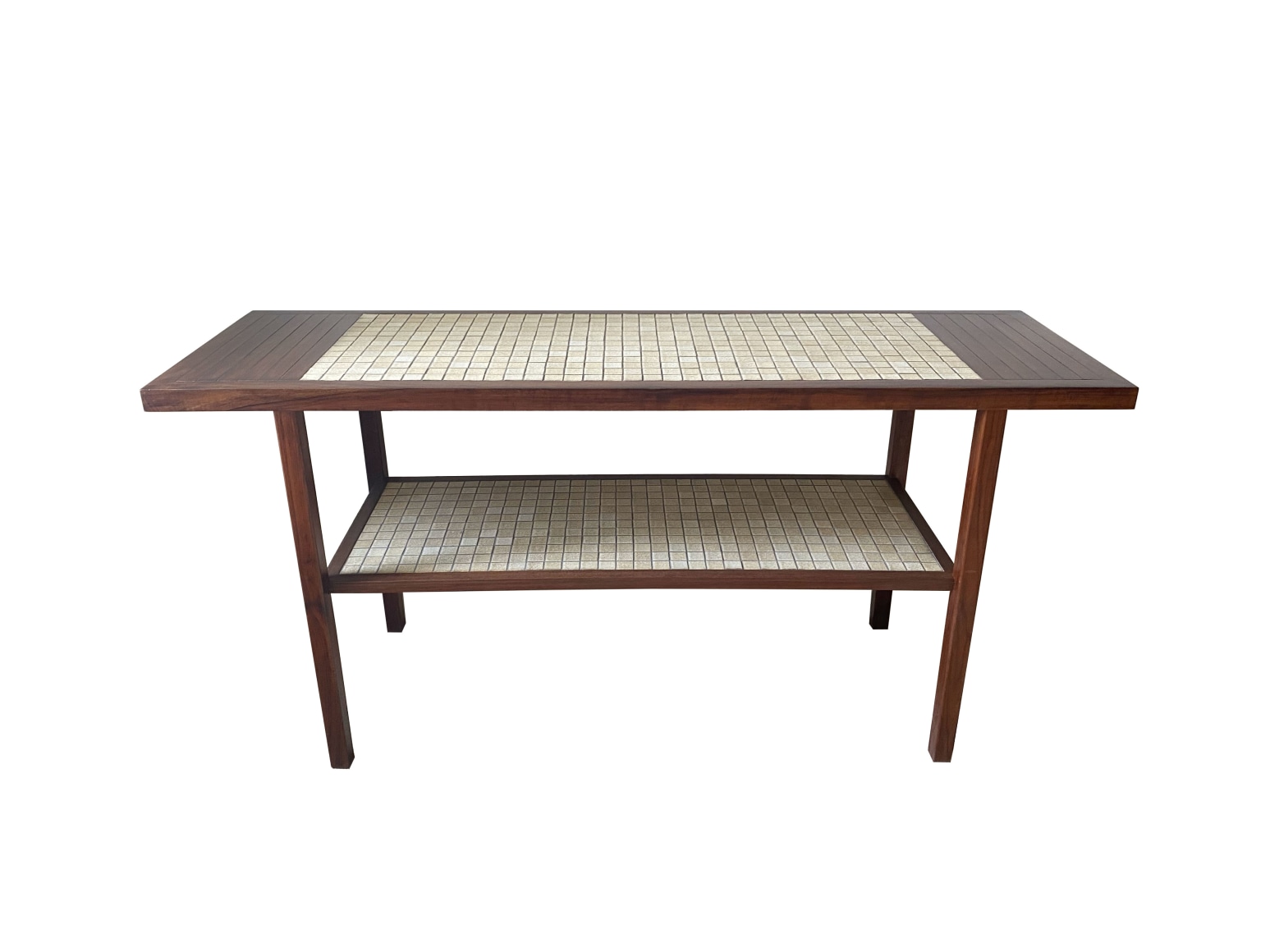 walnut, ceramic tile 60.5"W x 19.375"D x 29"H shelf height : 15.375"