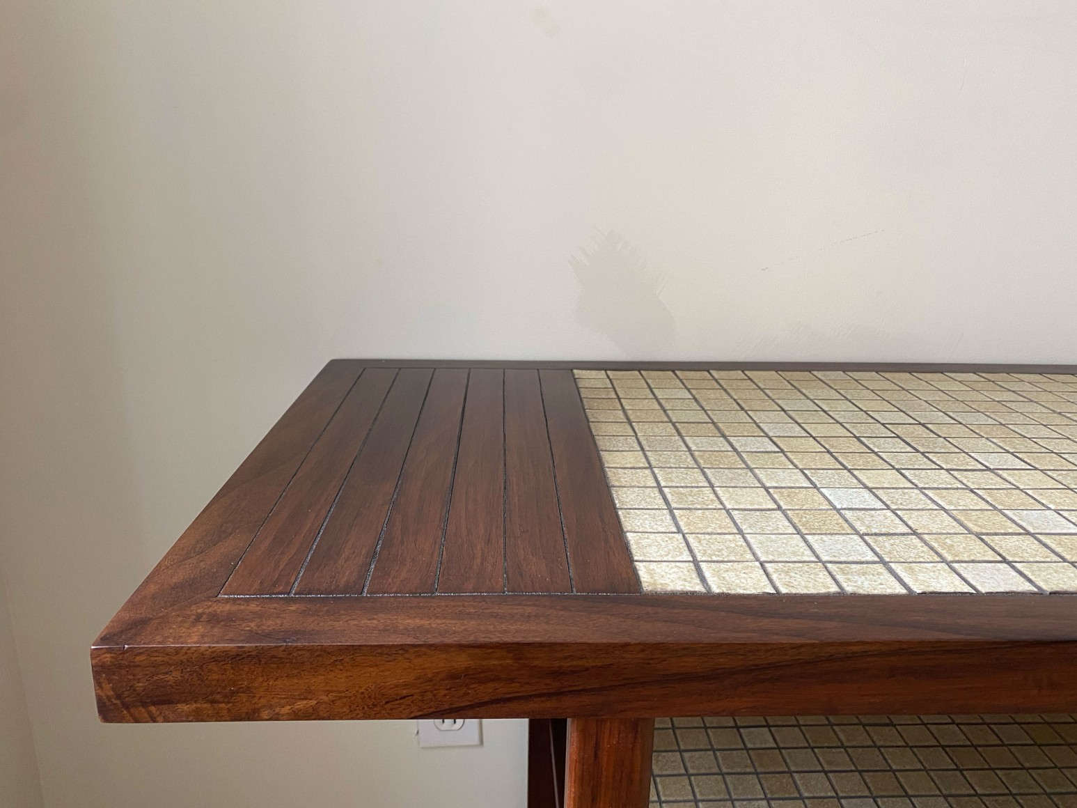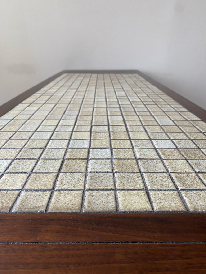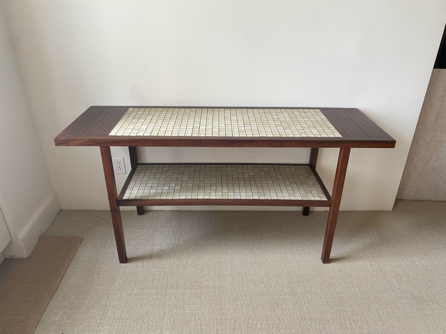 walnut, ceramic tile 60.5"W x 19.375"D x 29"H shelf height : 15.375"
