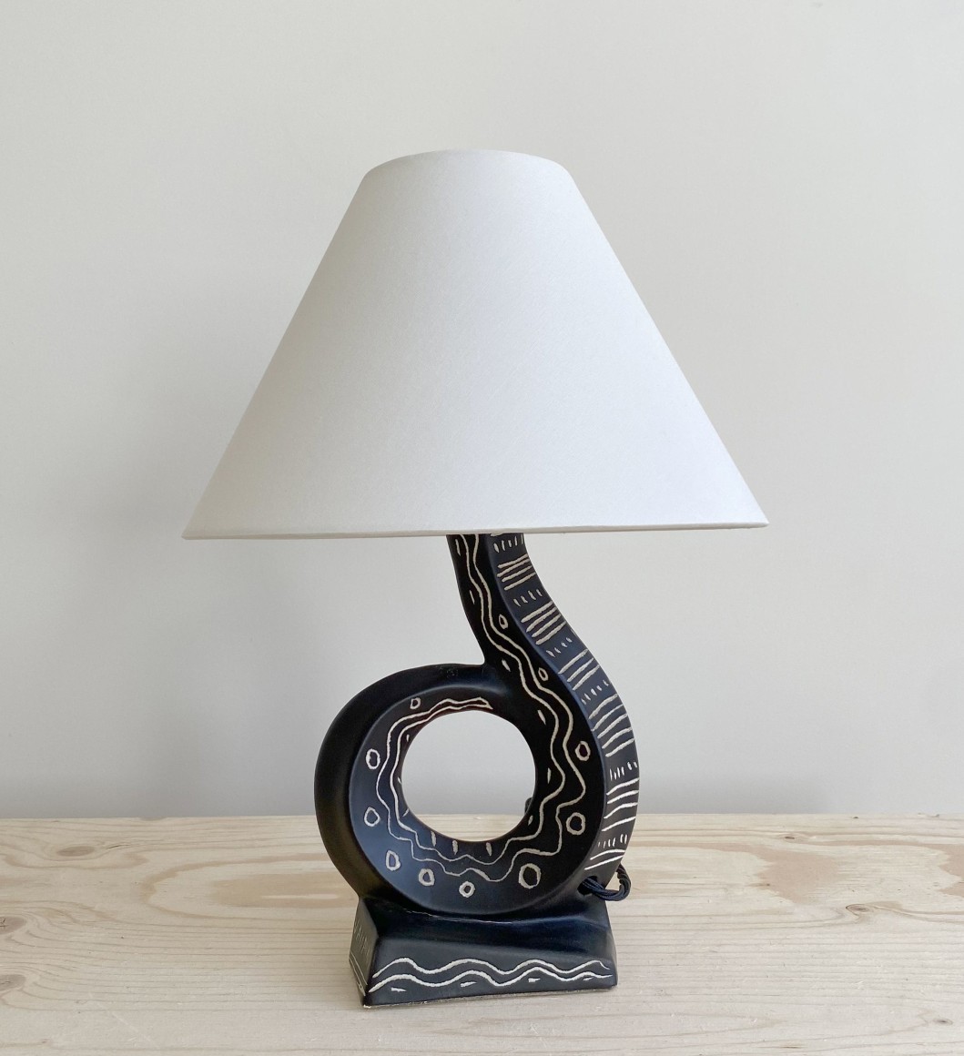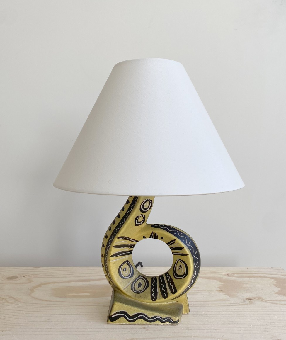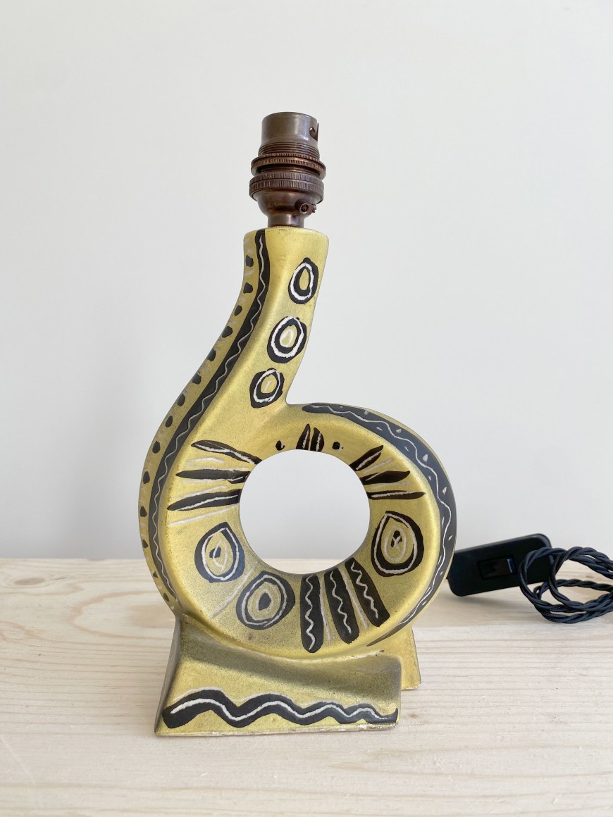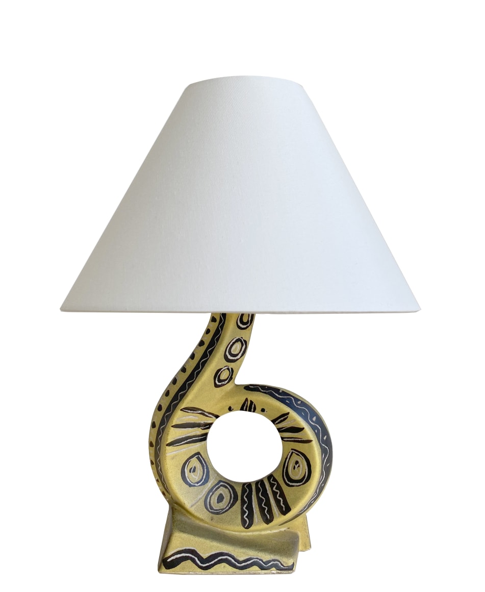 rare free form ceramic table lamp by potter Hélène Ugo, decorated by artist Michel Barbier