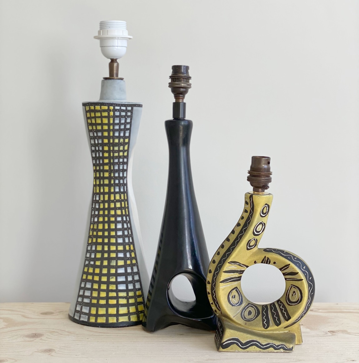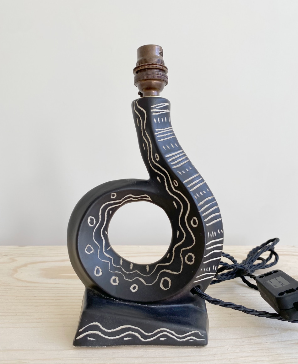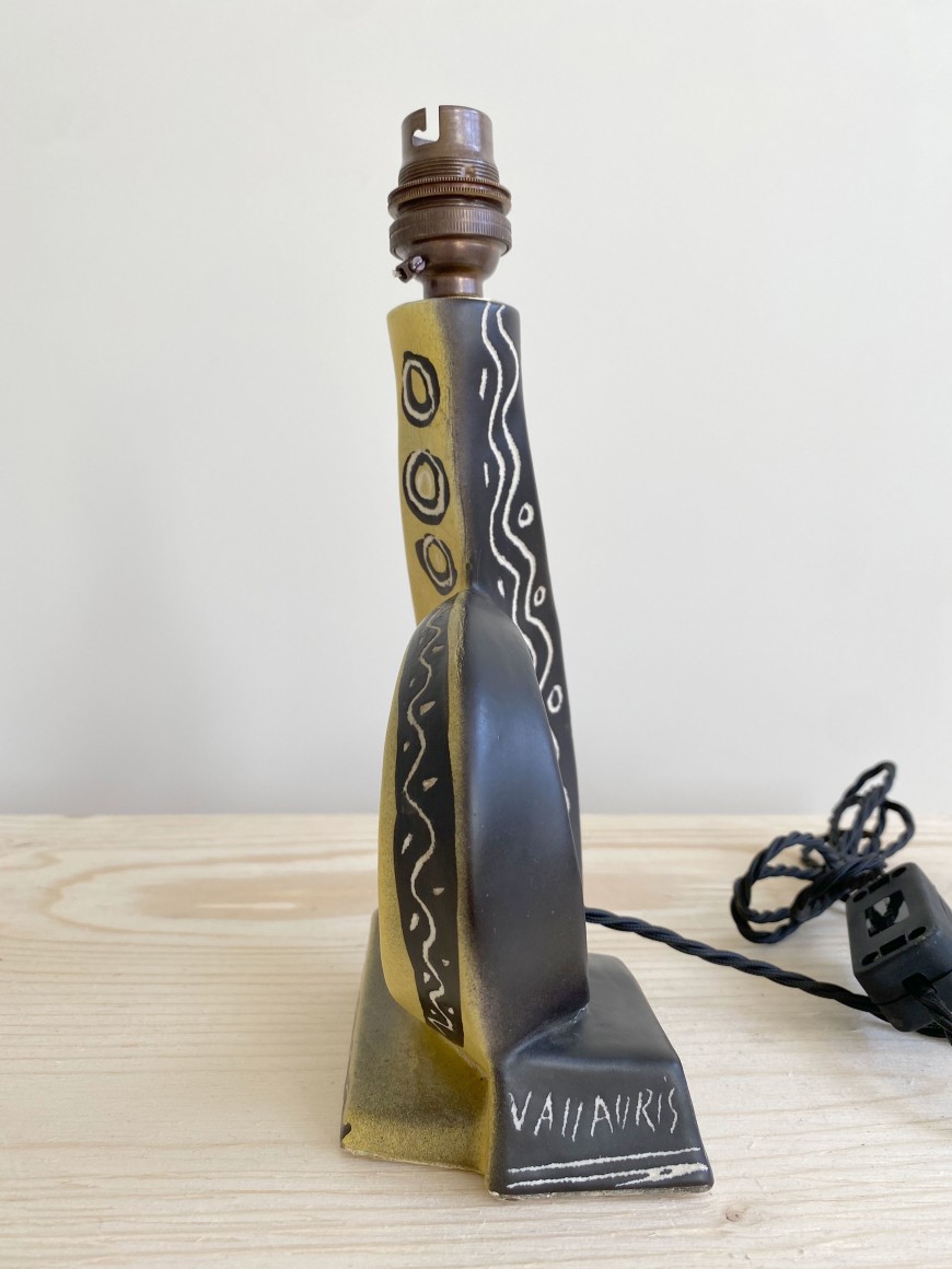 rare free form ceramic table lamp by potter Hélène Ugo, decorated by artist Michel Barbier