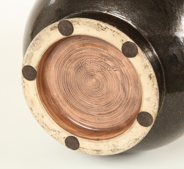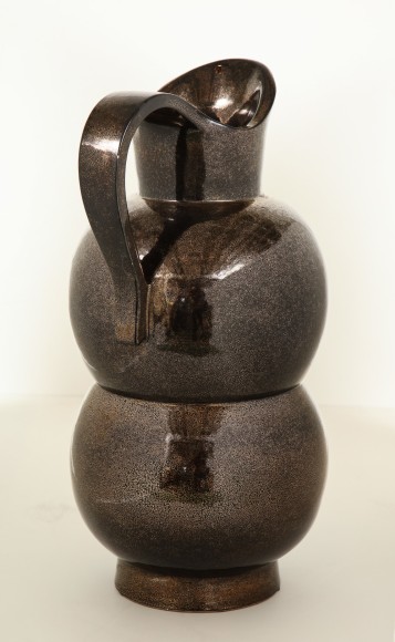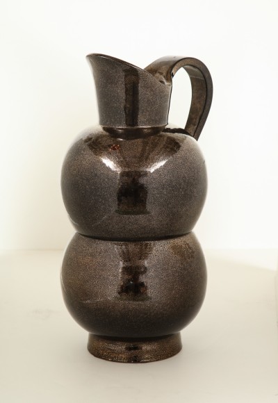 Monumental metallic glazed pitcher vase by Accolay