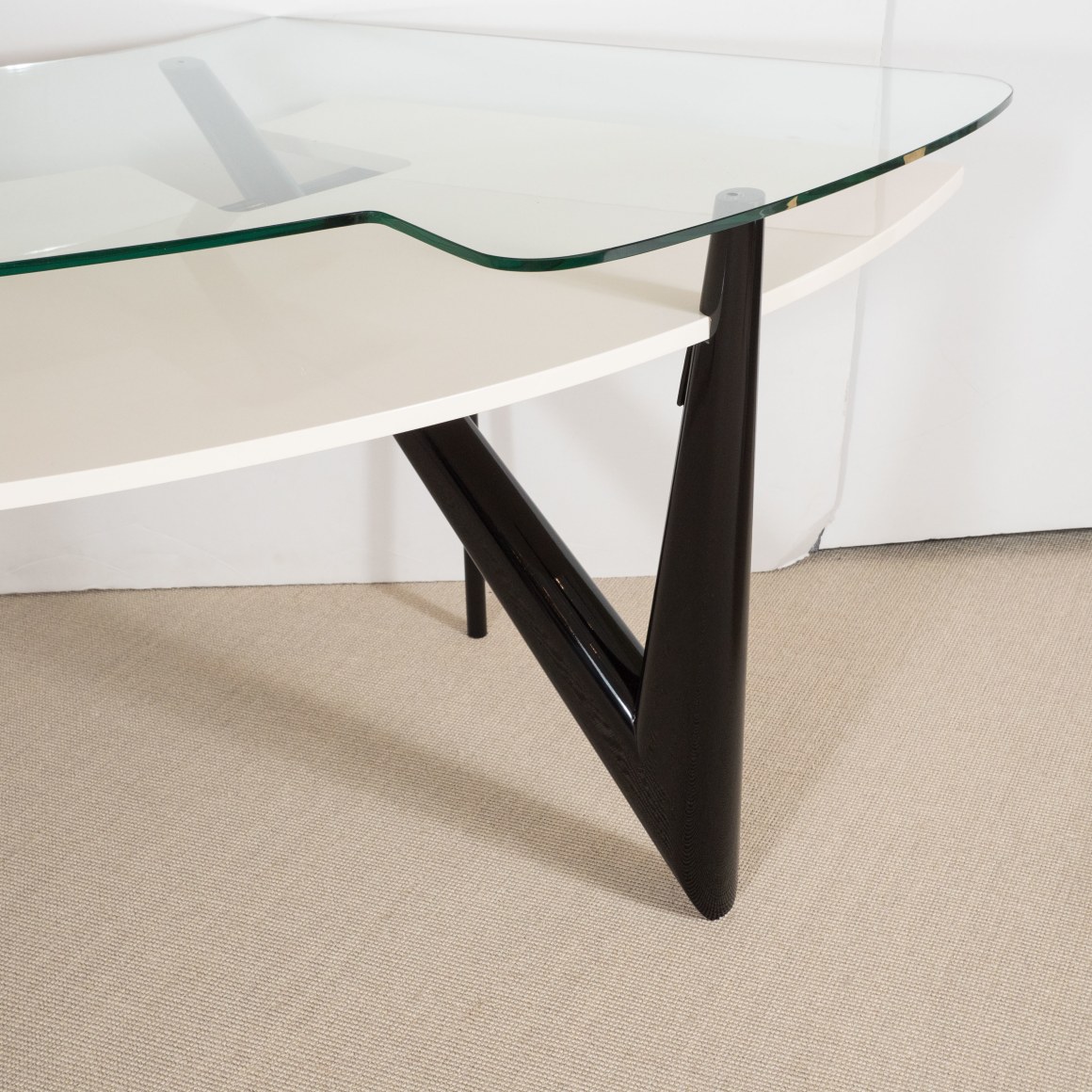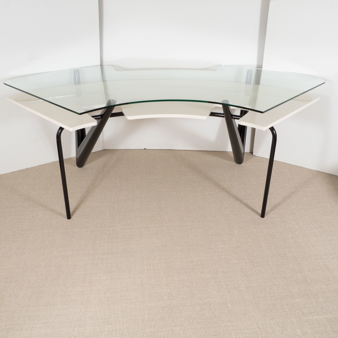 Lacquer desk with glass top in the style of Osvaldo Borsani, Italy c. 1960