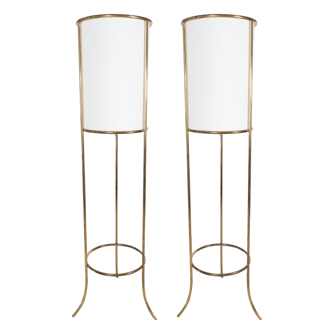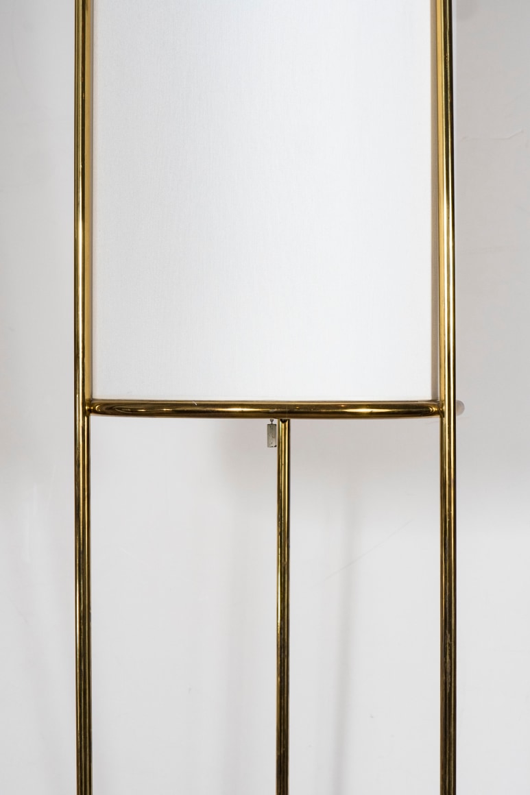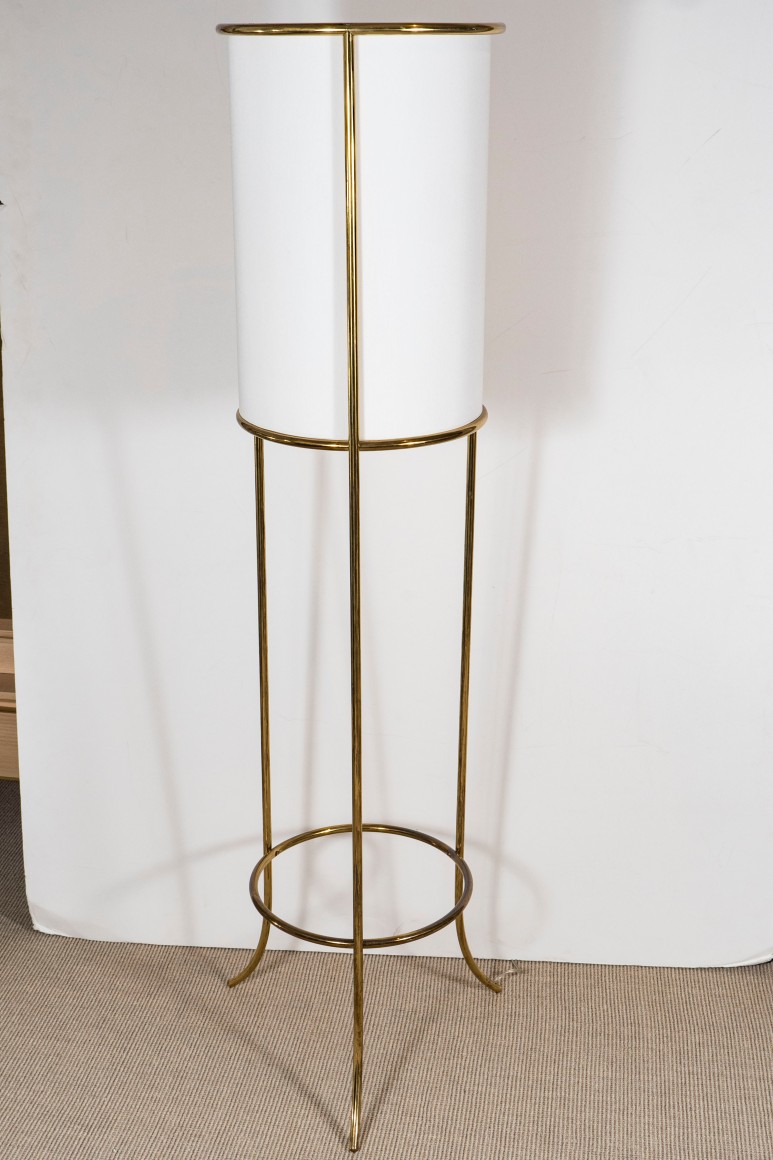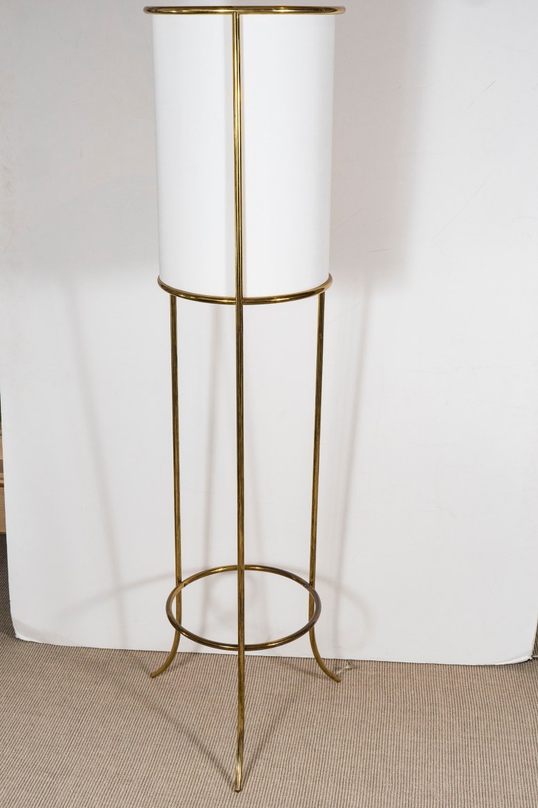 Pair of tripod floor lamps with fine brass tubular rods by T.H. Robsjohn - Gibbings for Hansen, USA c. 1950