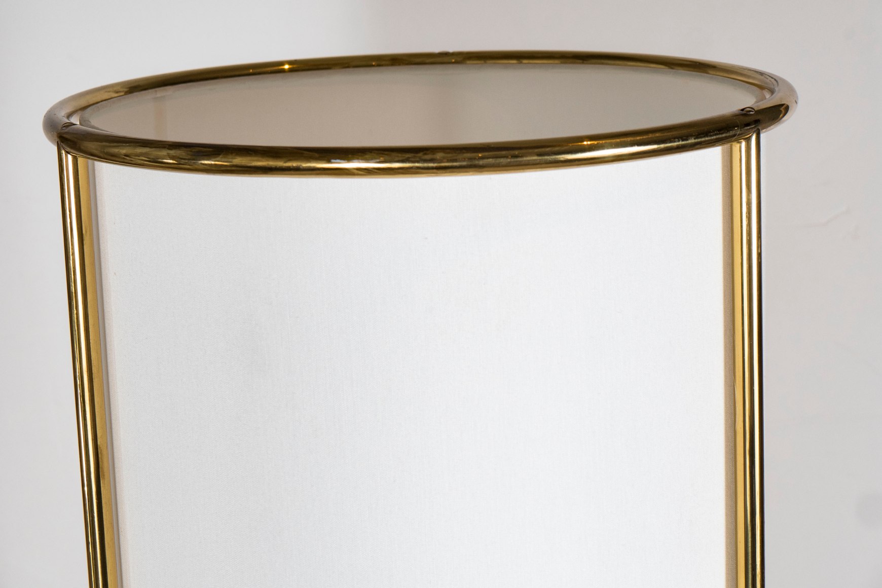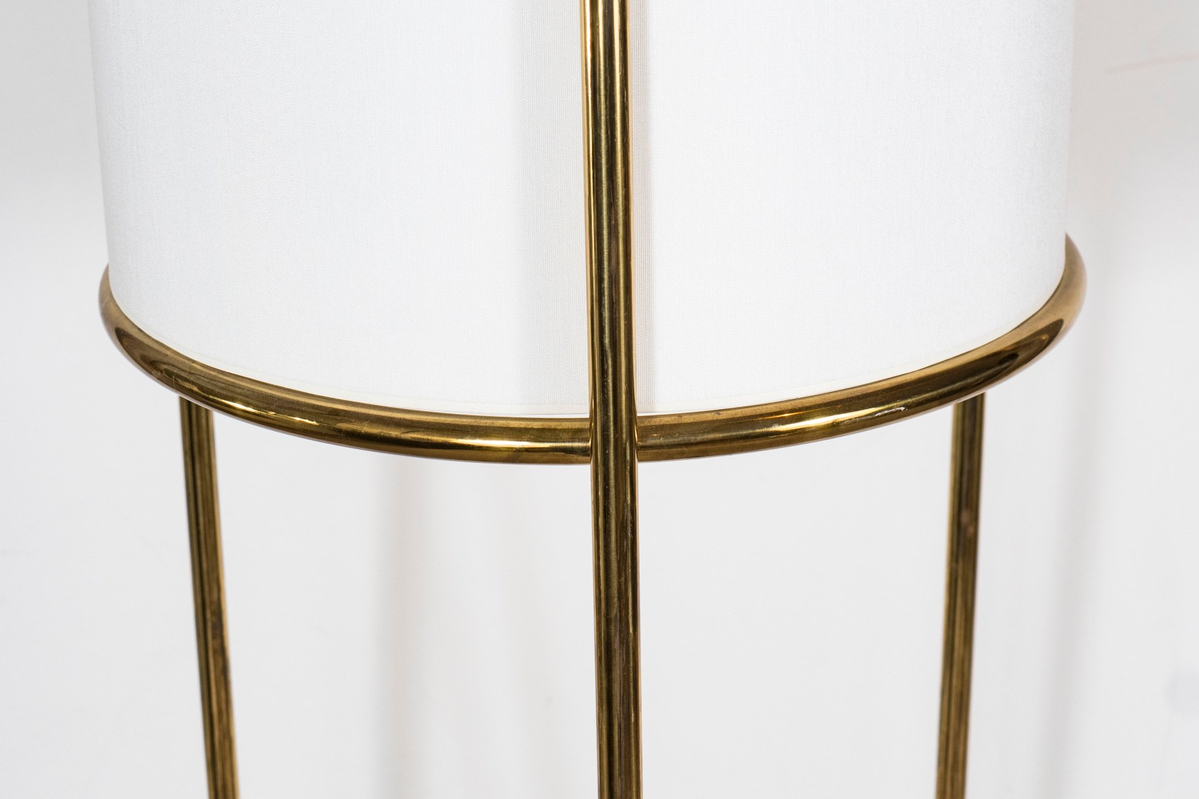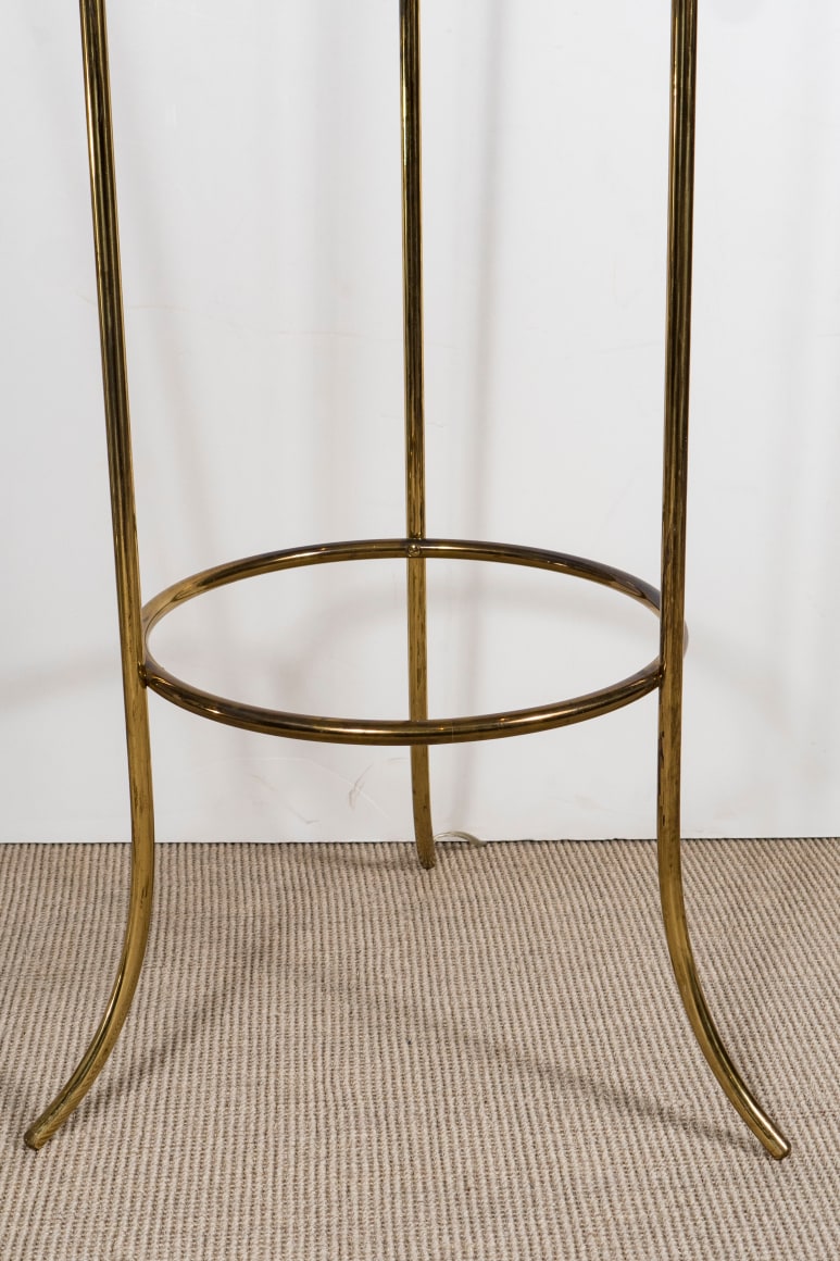 Pair of tripod floor lamps with fine brass tubular rods by T.H. Robsjohn - Gibbings for Hansen, USA c. 1950