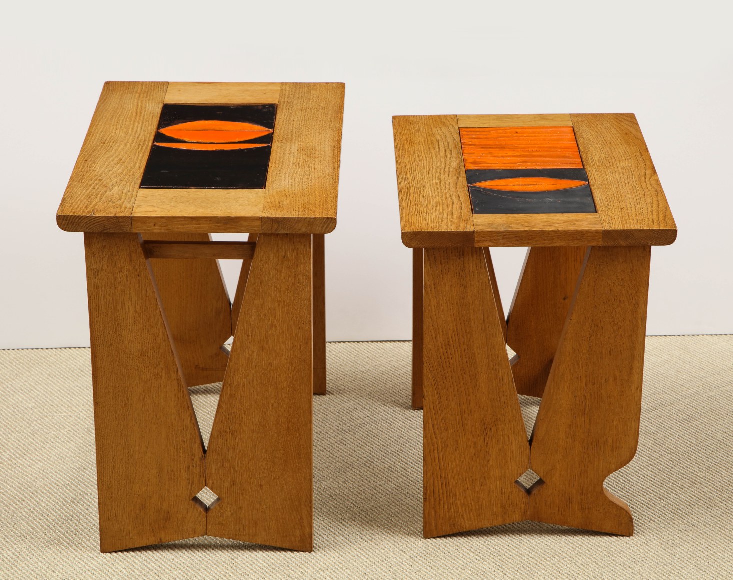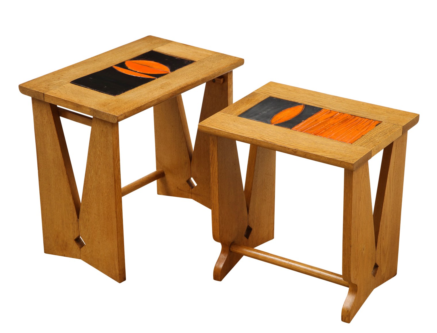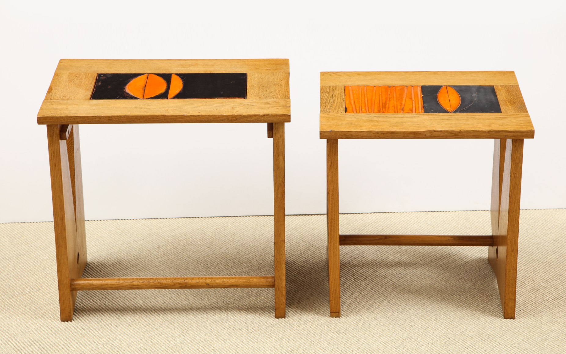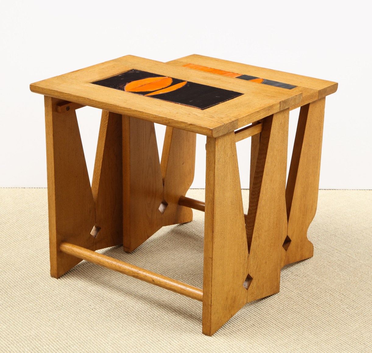 Pair of nesting tables by Robert Guillerme for Votre Maison with tiles by Boleslaw Danikowski, France c. 1960