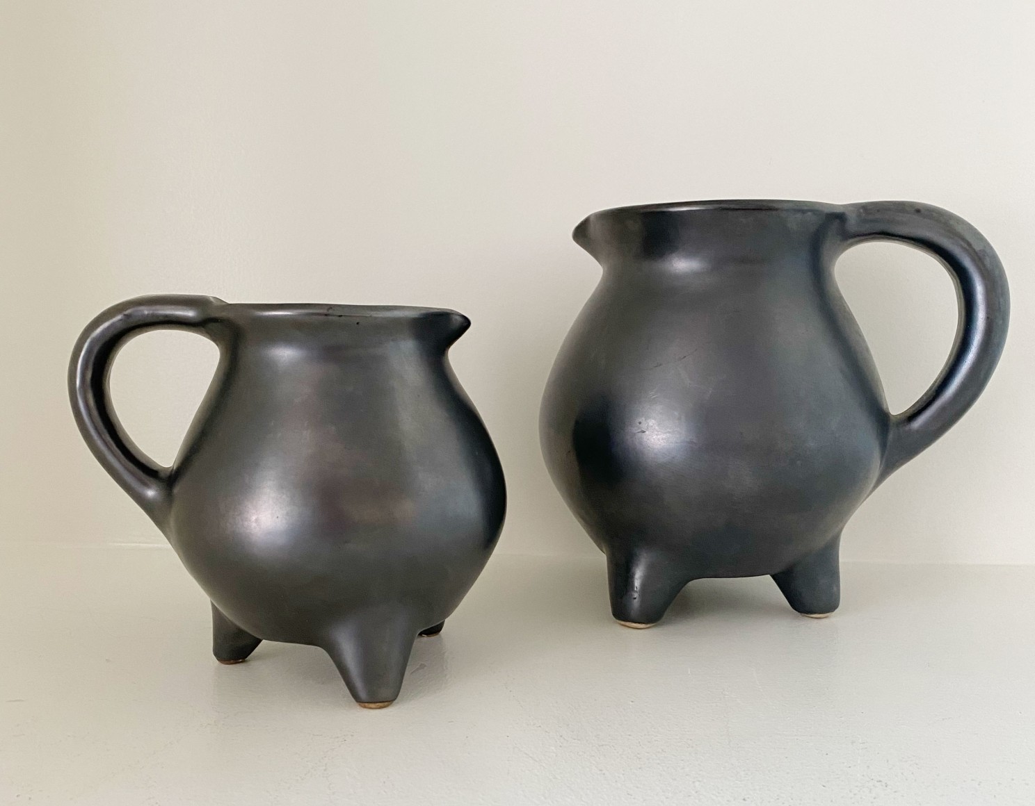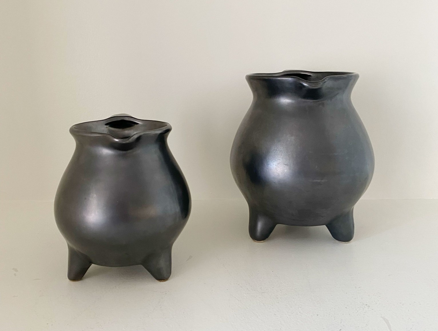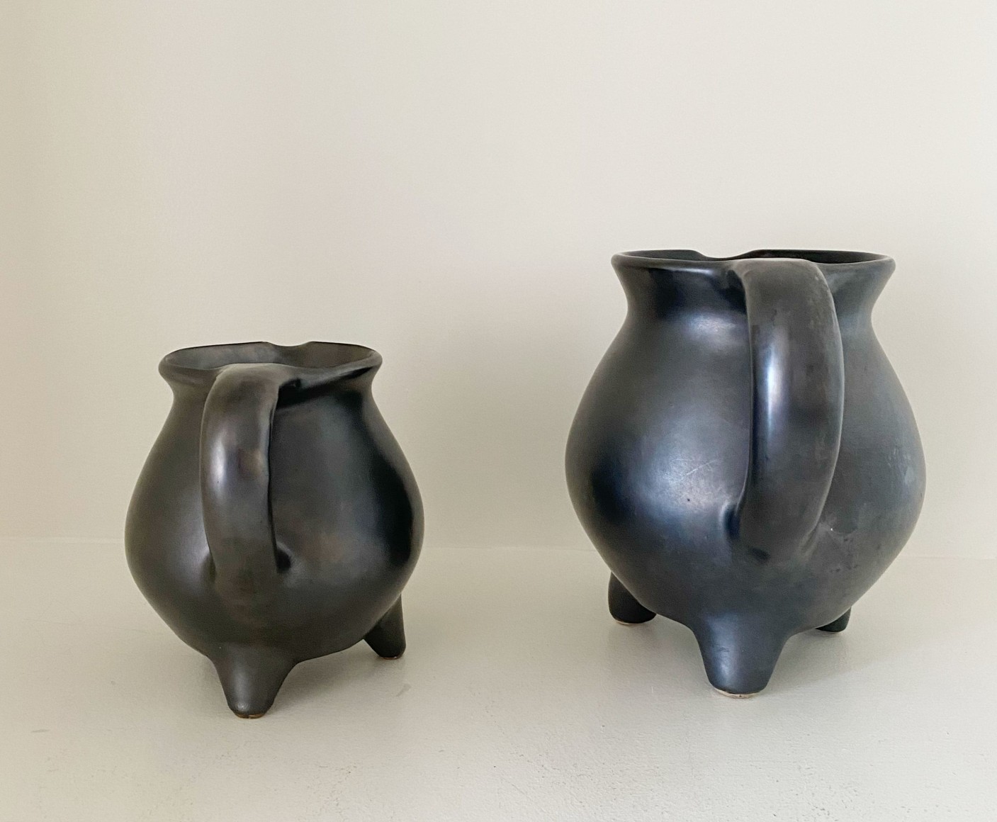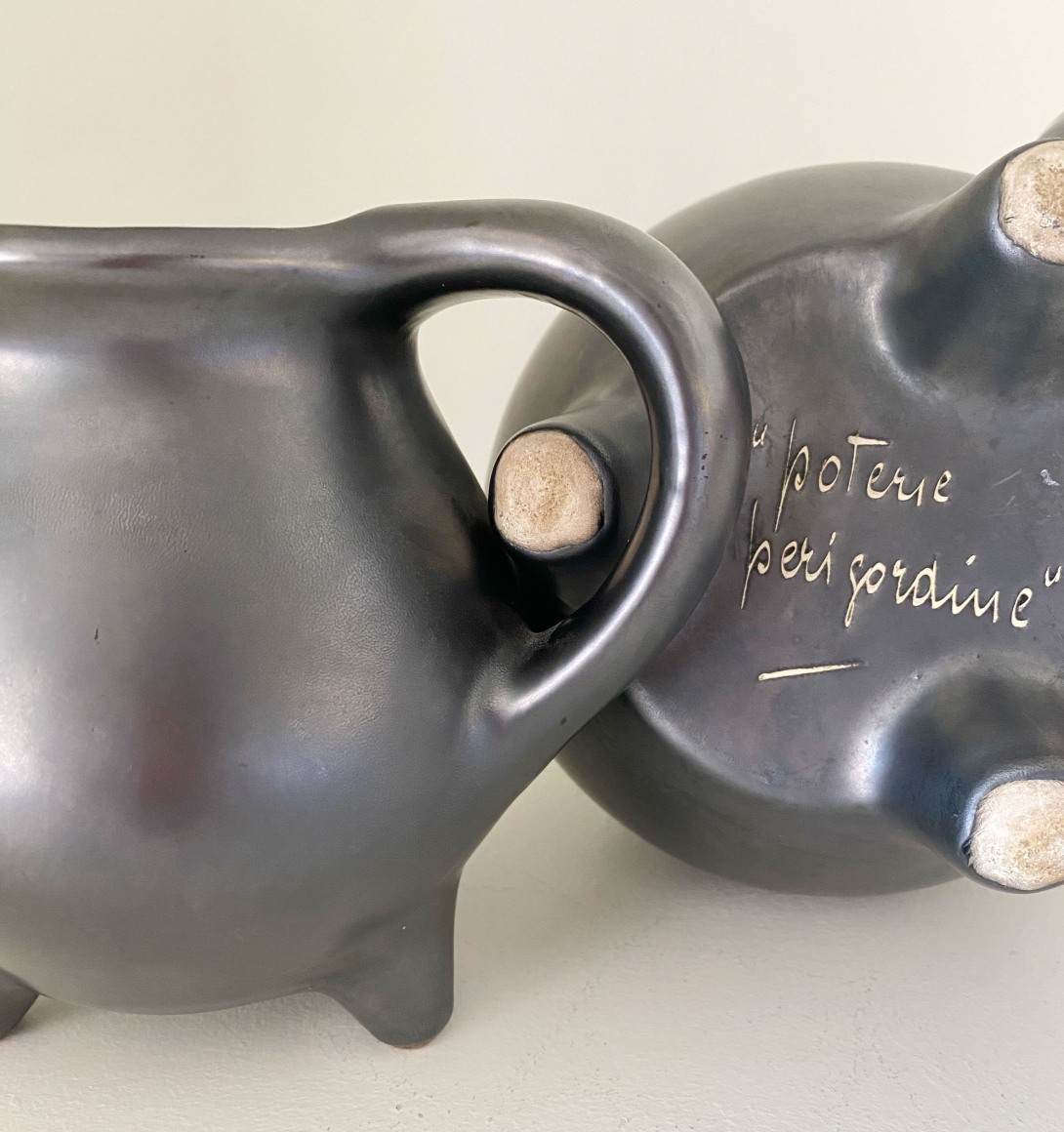 PAIR OF POTERIE PERIGOURDINE BLACK GLAZED POTS