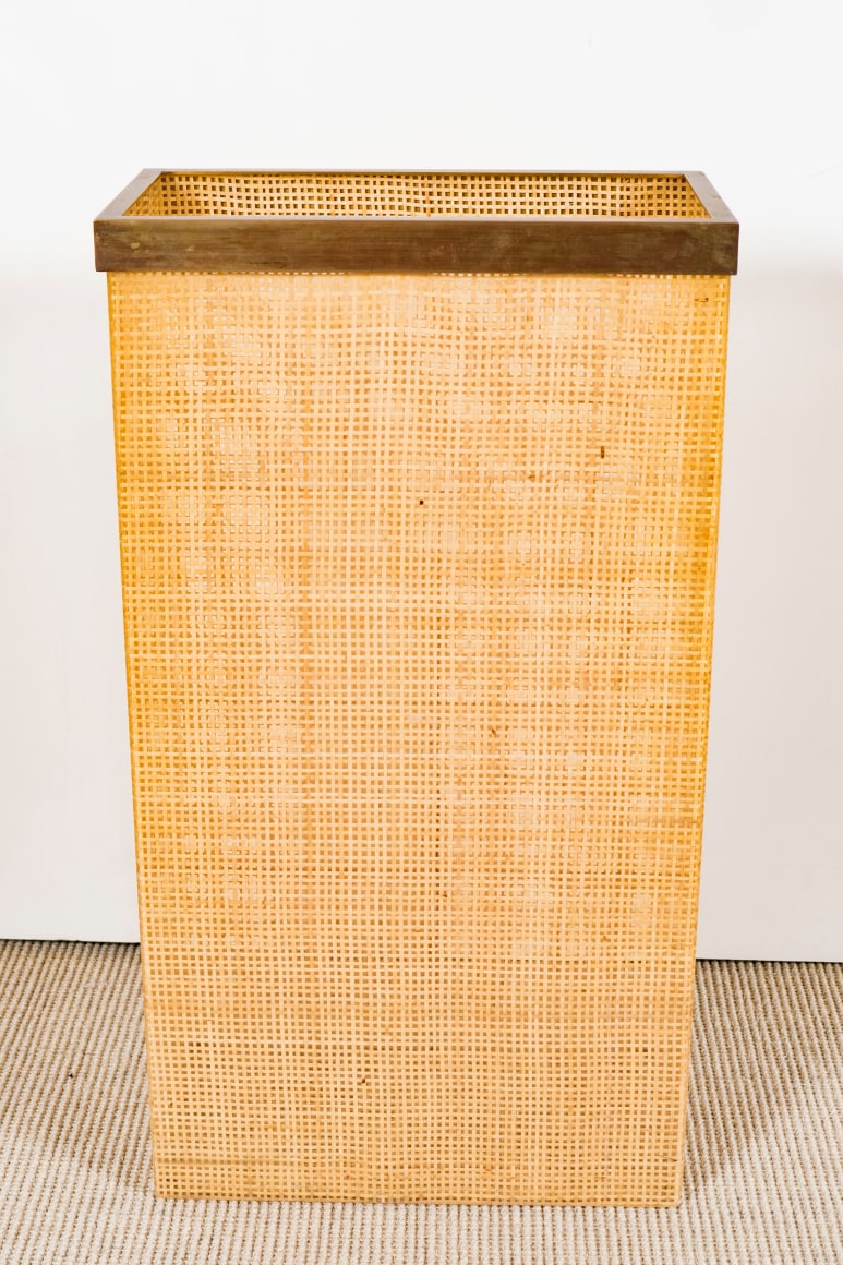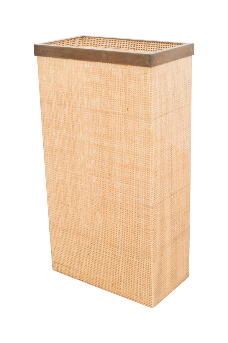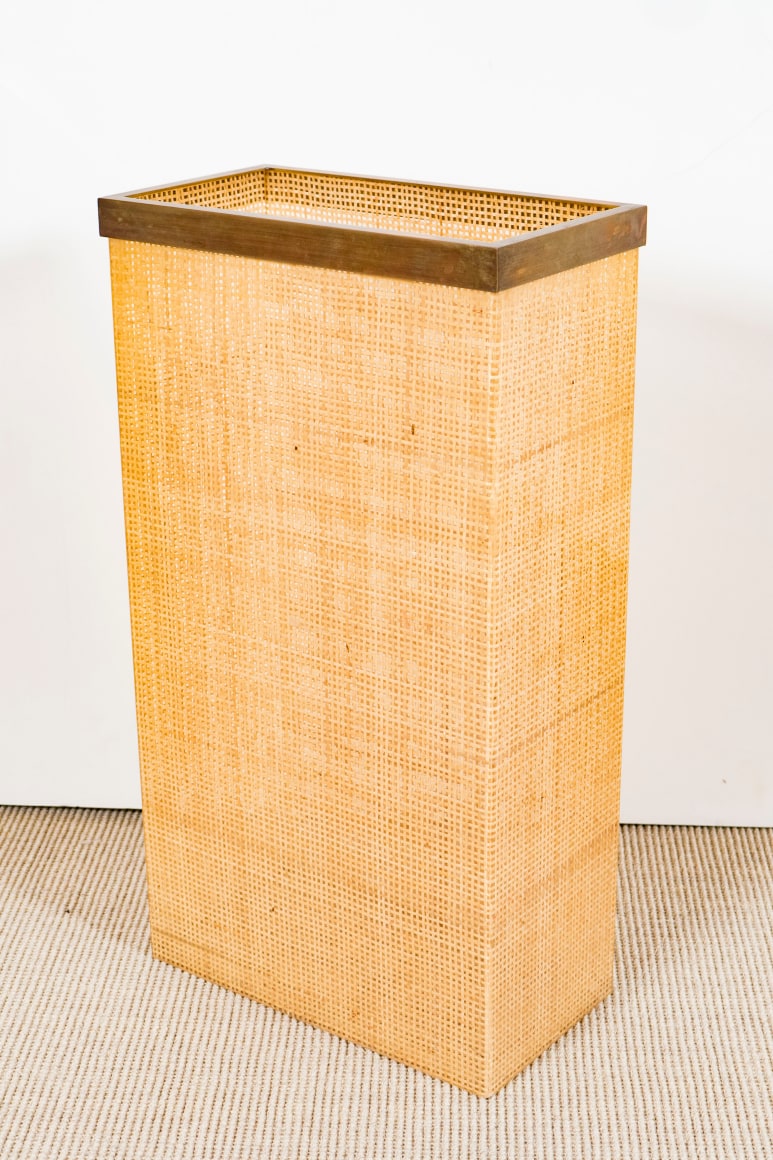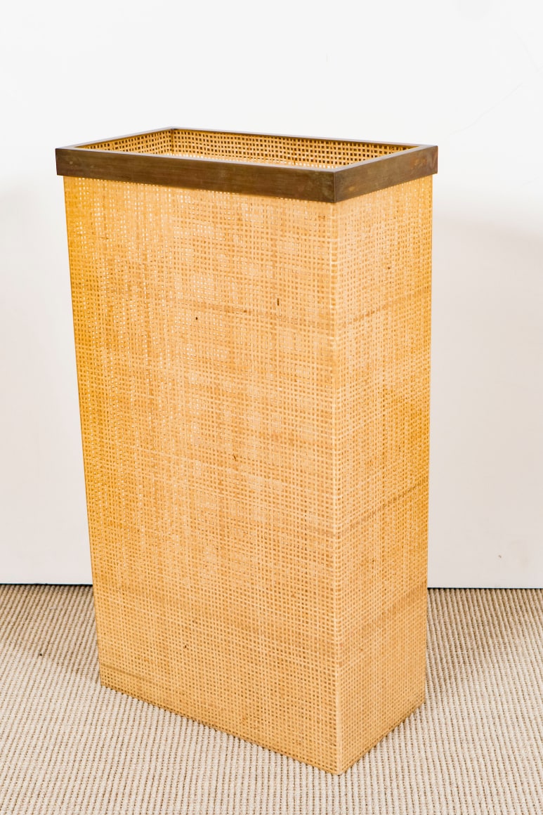 Plastic and cane umbrella stand with removable bronze lip, Italy c. 1950