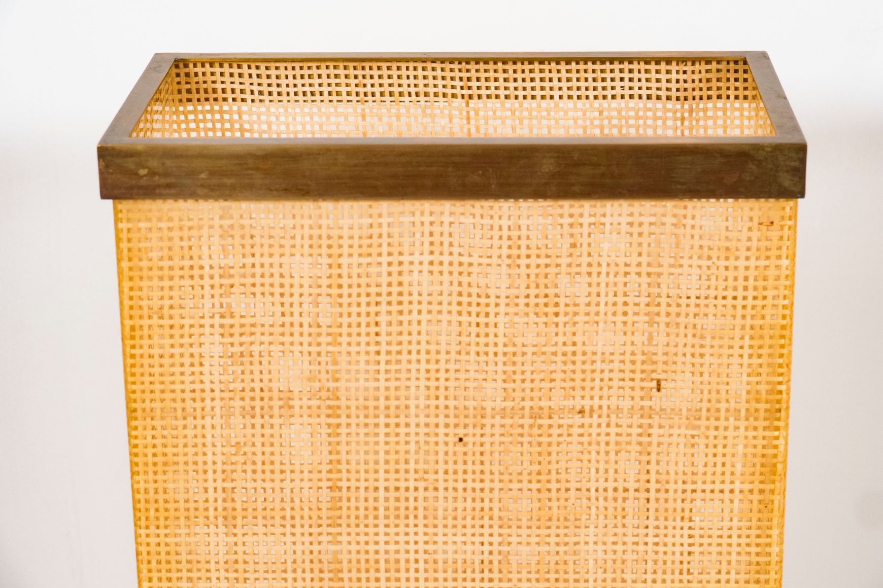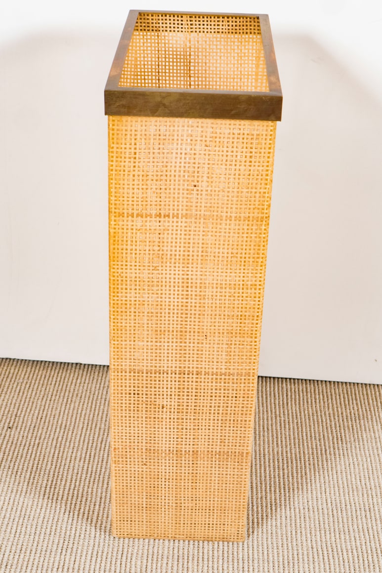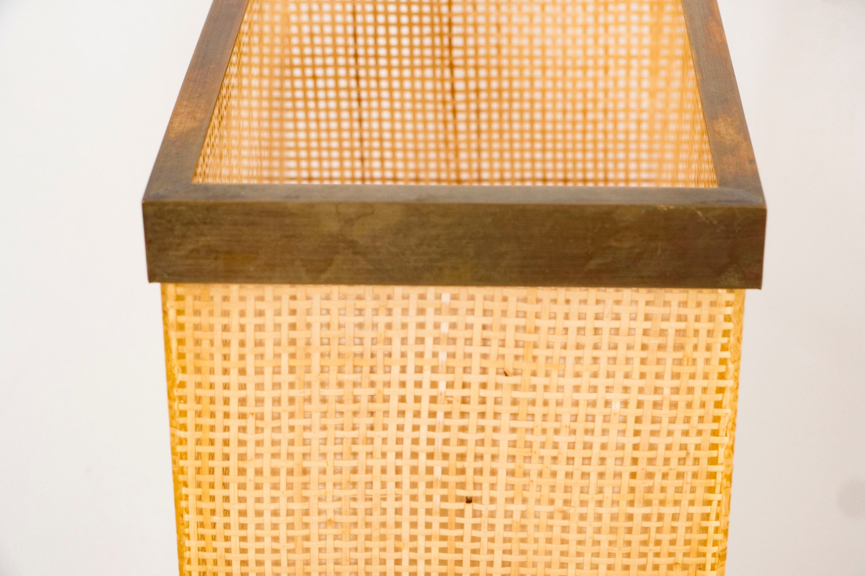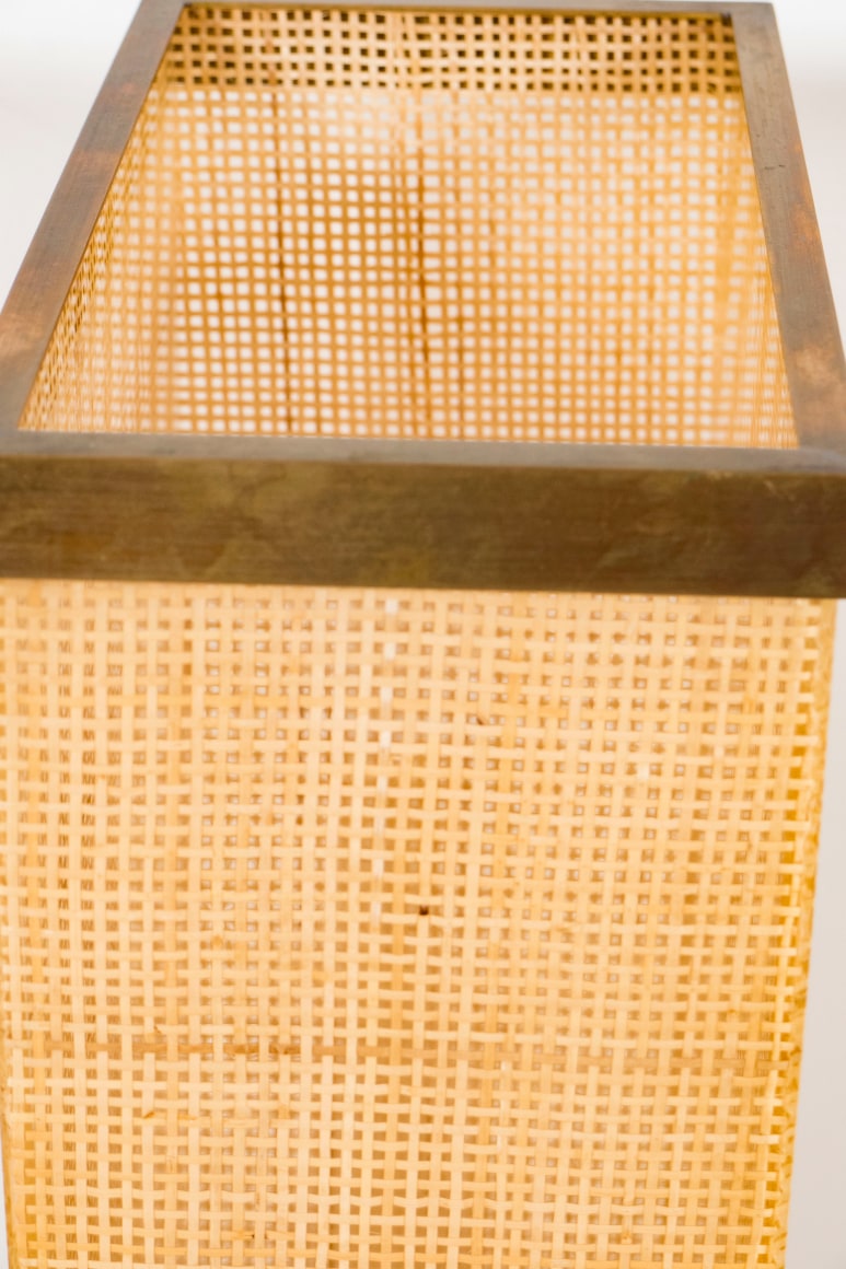 Plastic and cane umbrella stand with removable bronze lip, Italy c. 1950