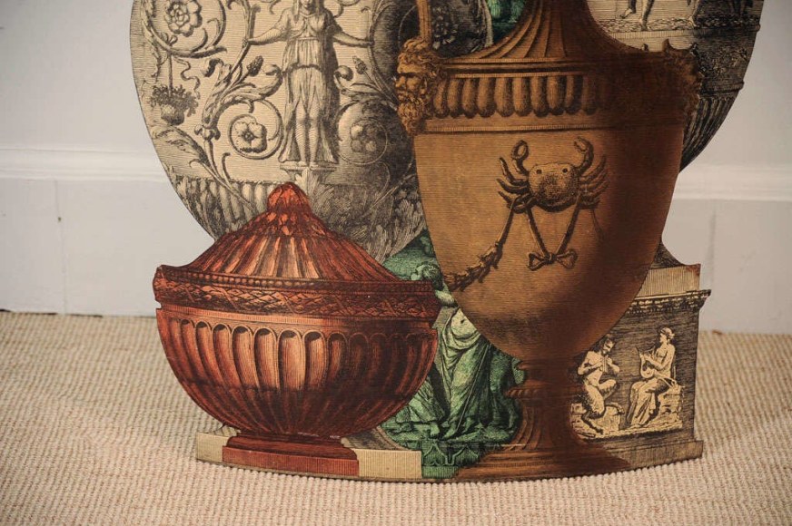 Metal umbrella stand with printed Roman vessels by Fornasetti, Italy c. 1960