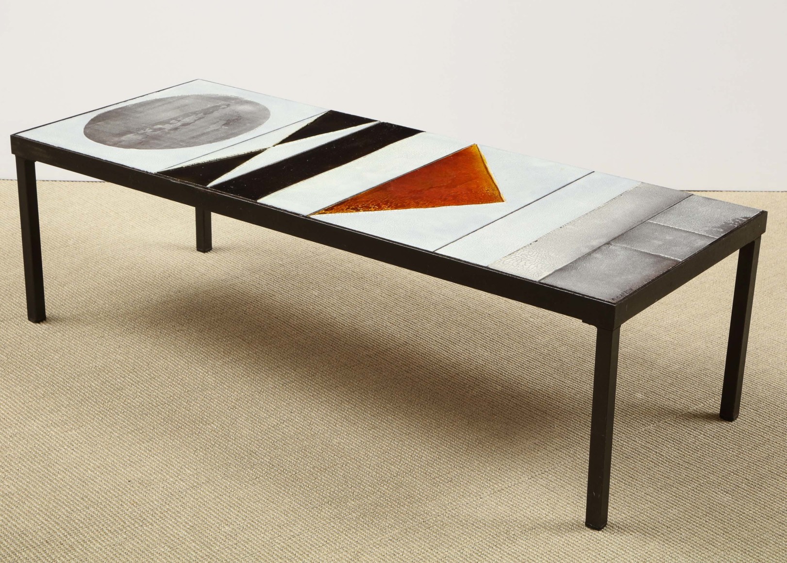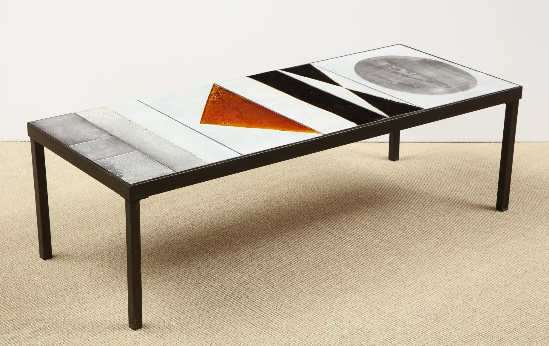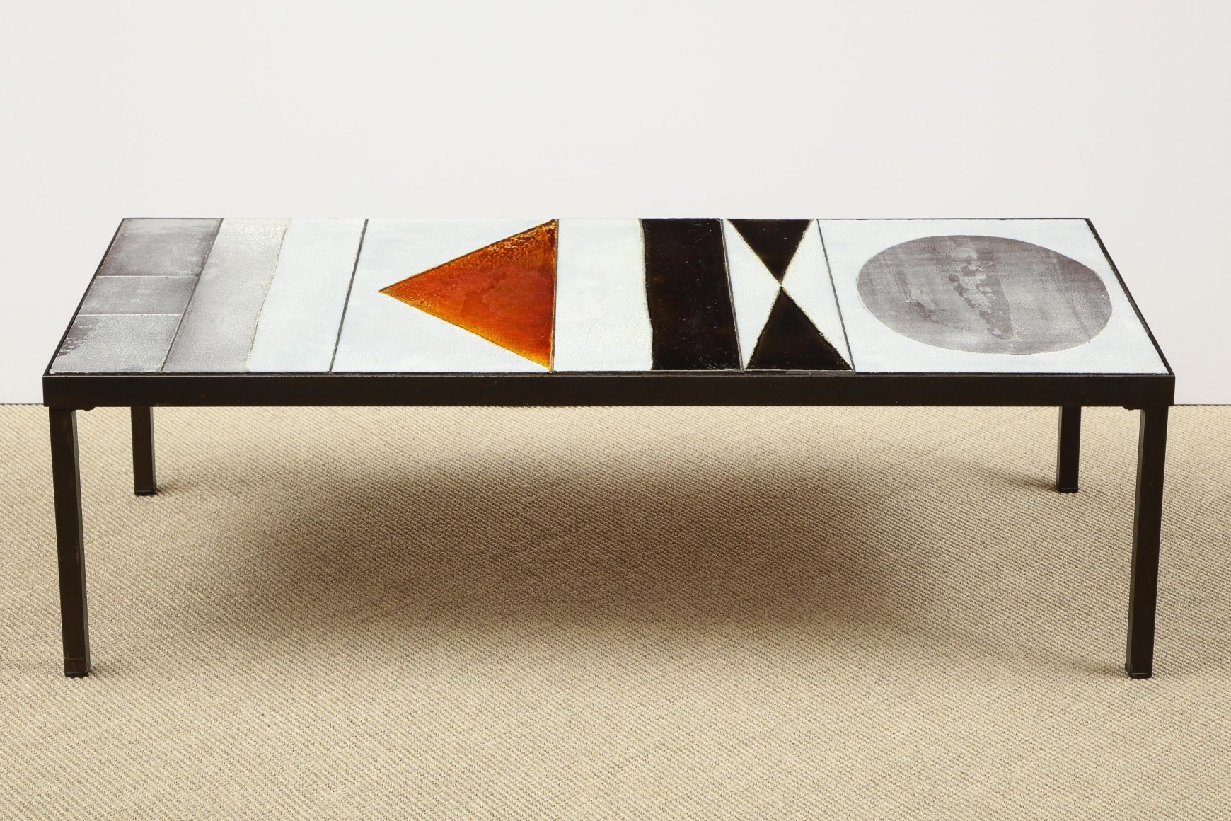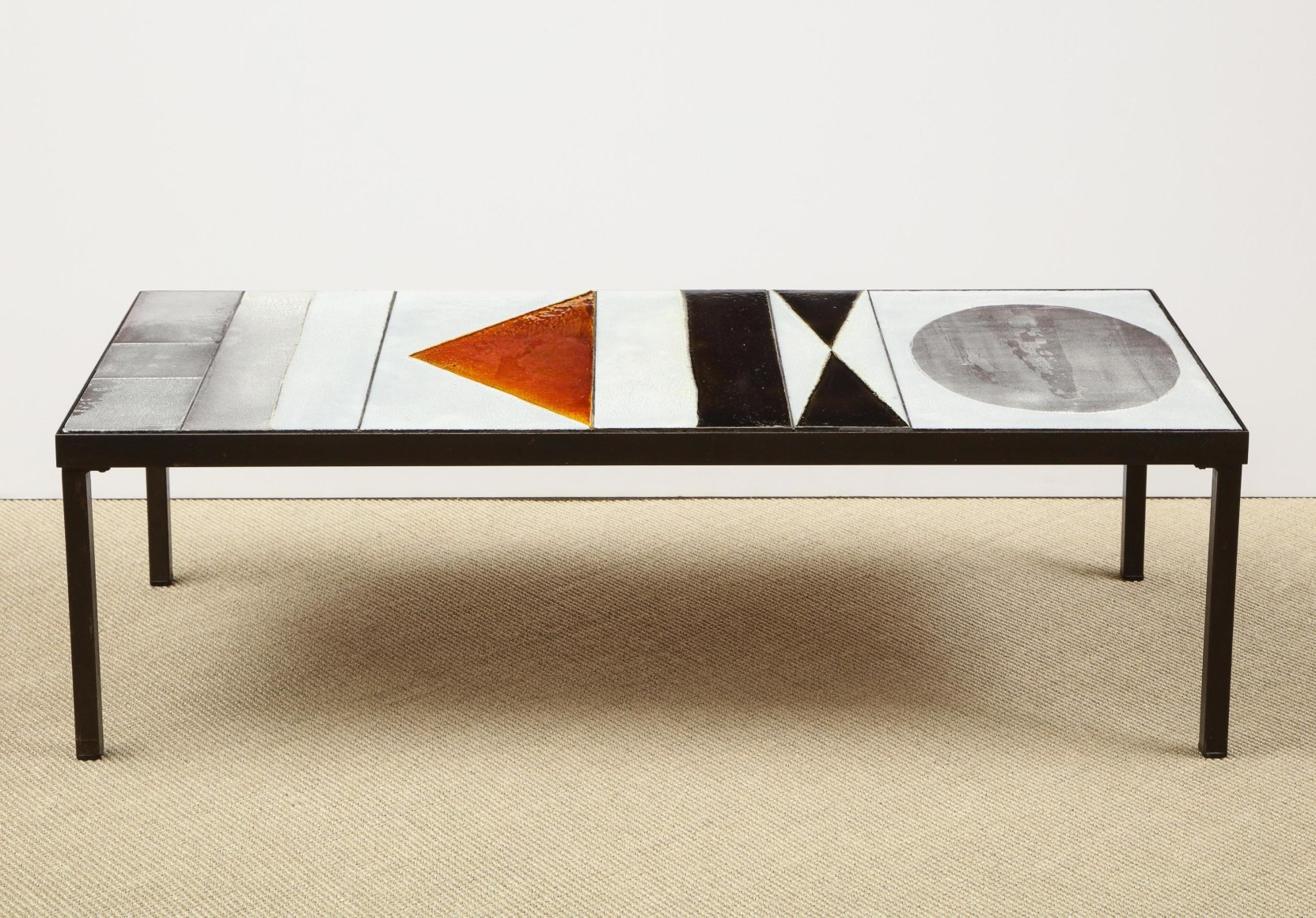 Rectangular low table with ceramic tile top by Roger Capron, France c. 1950