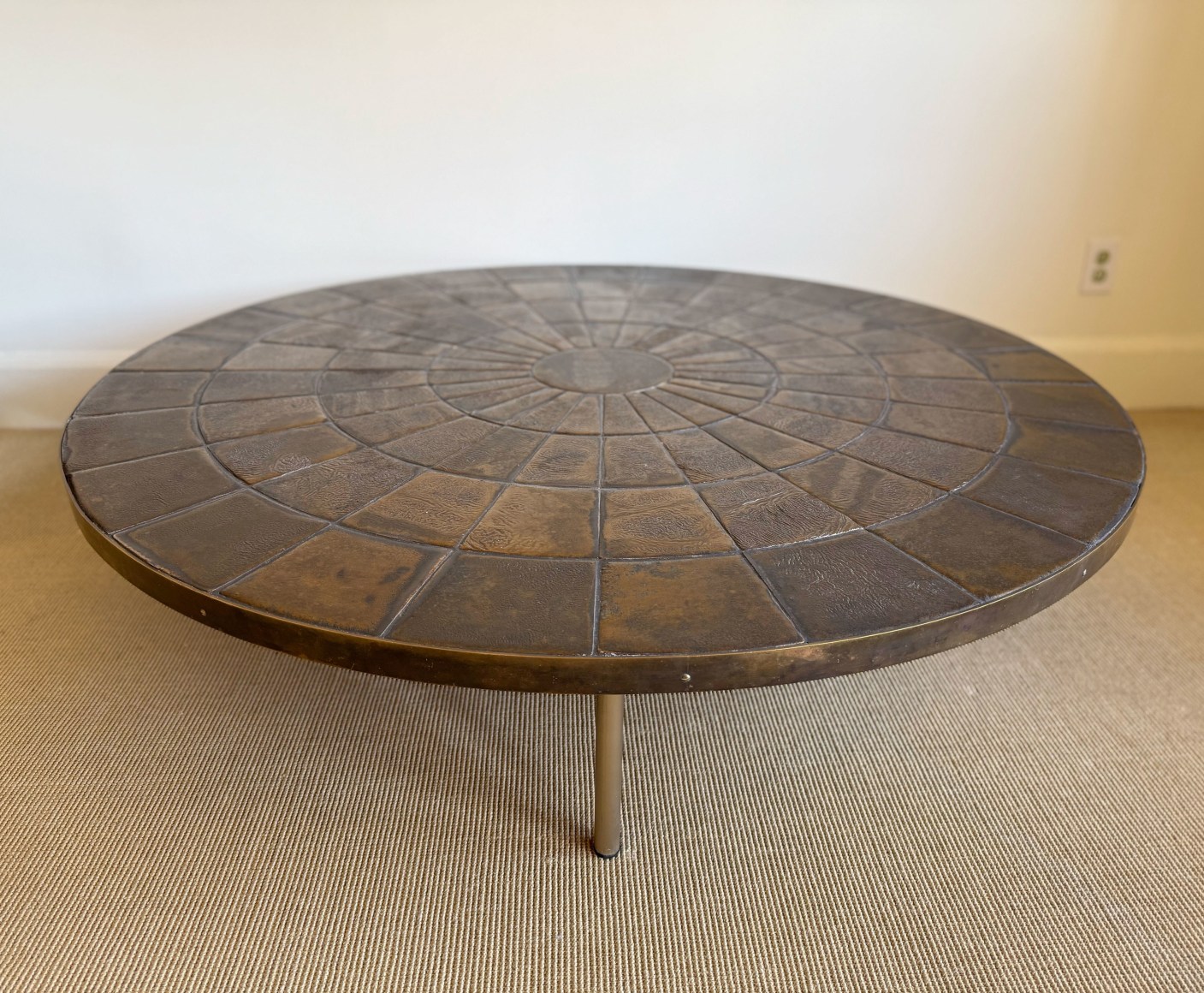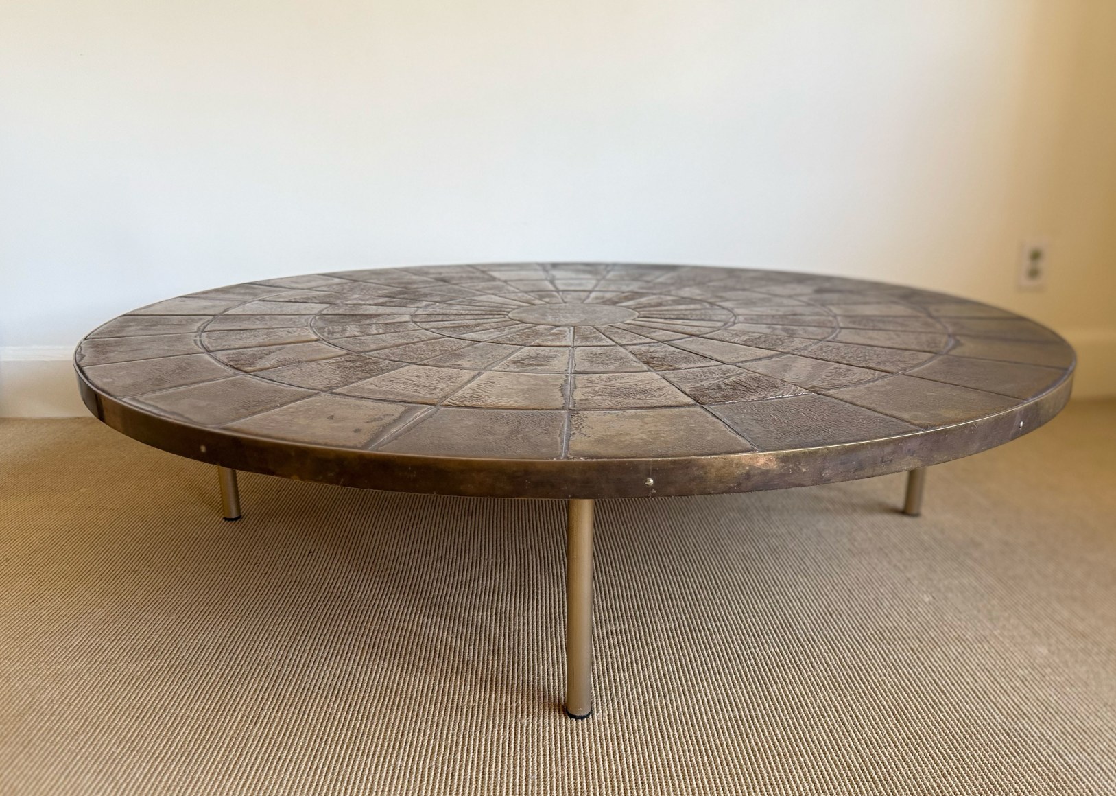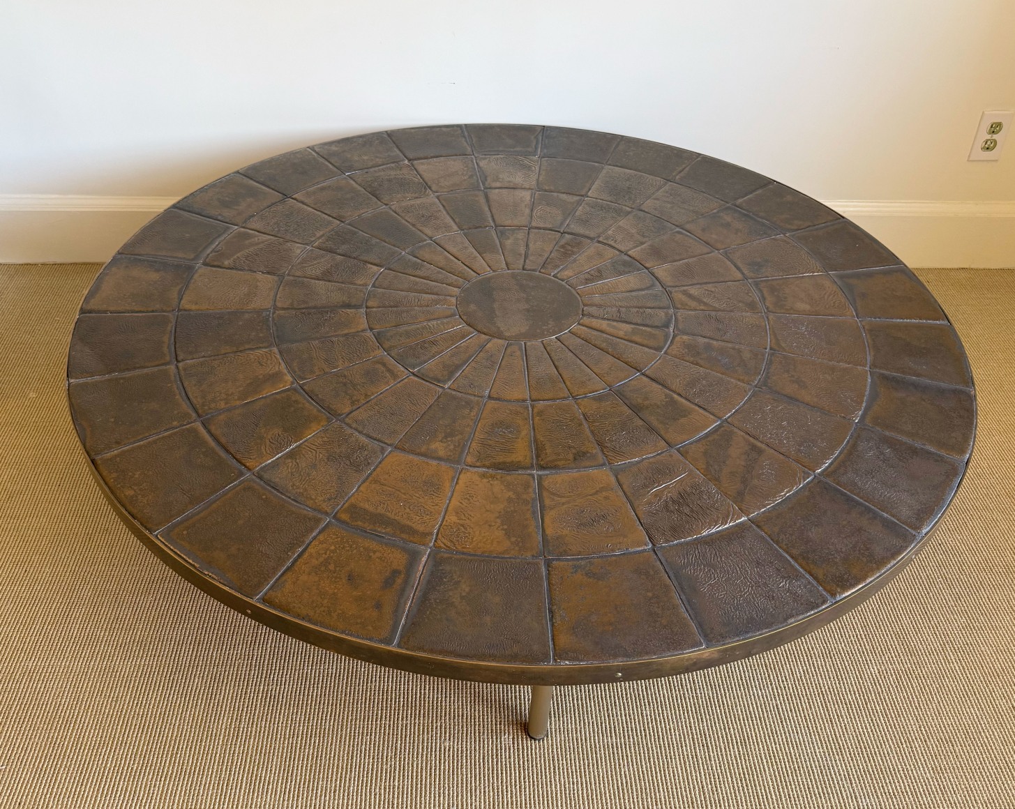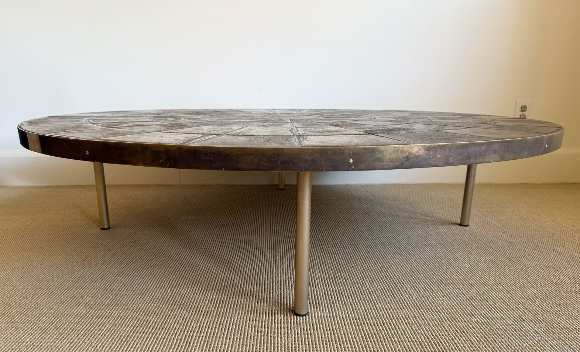 glazed tile, brass edge, metal legs