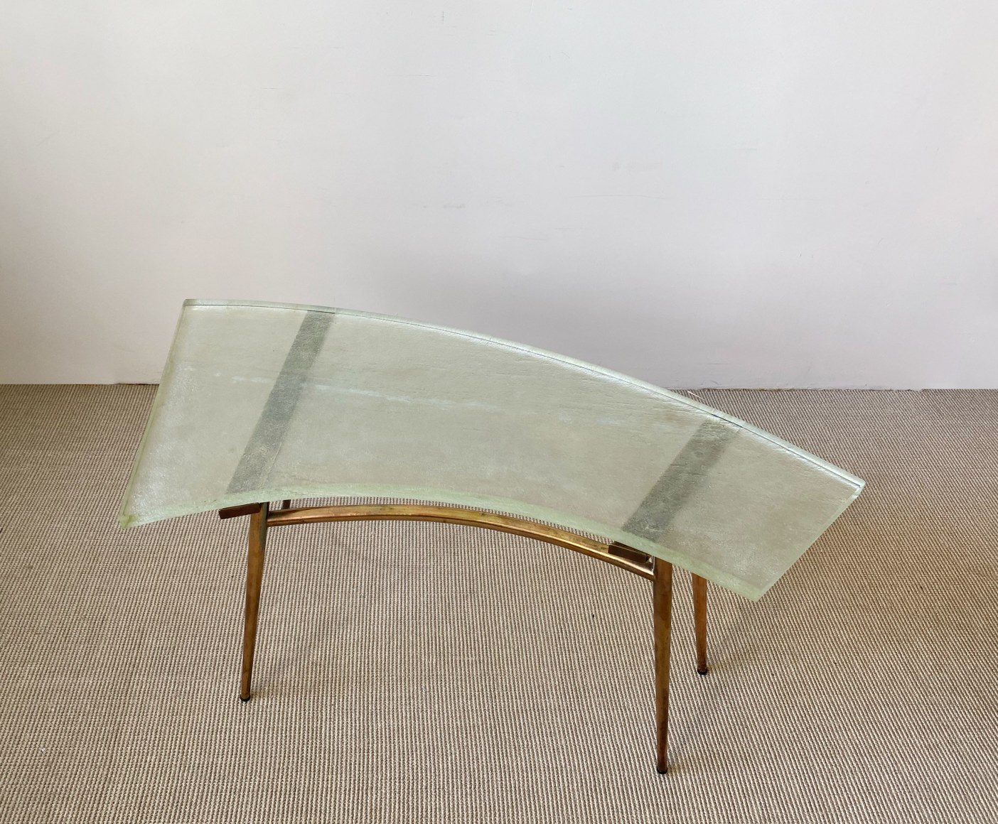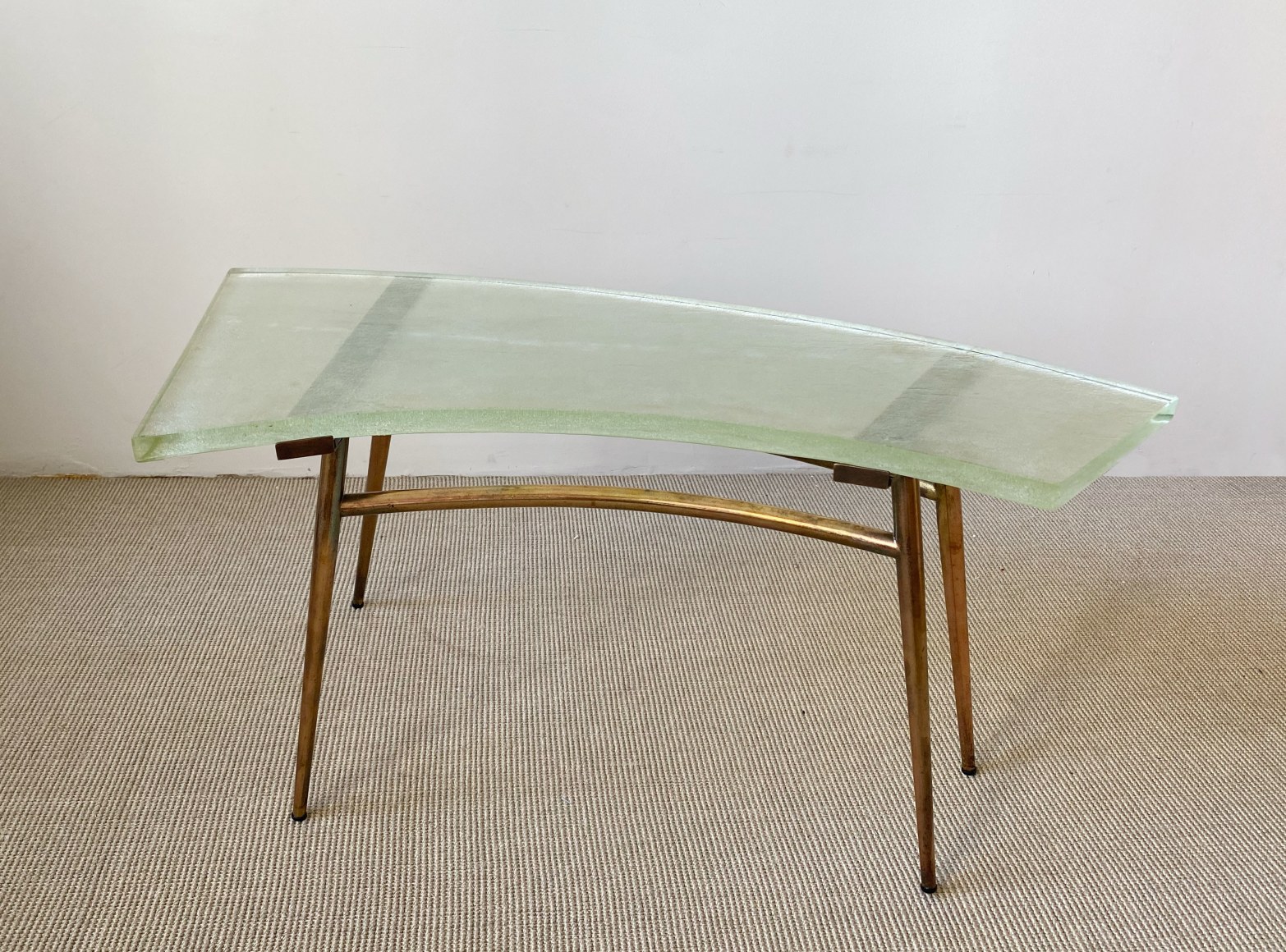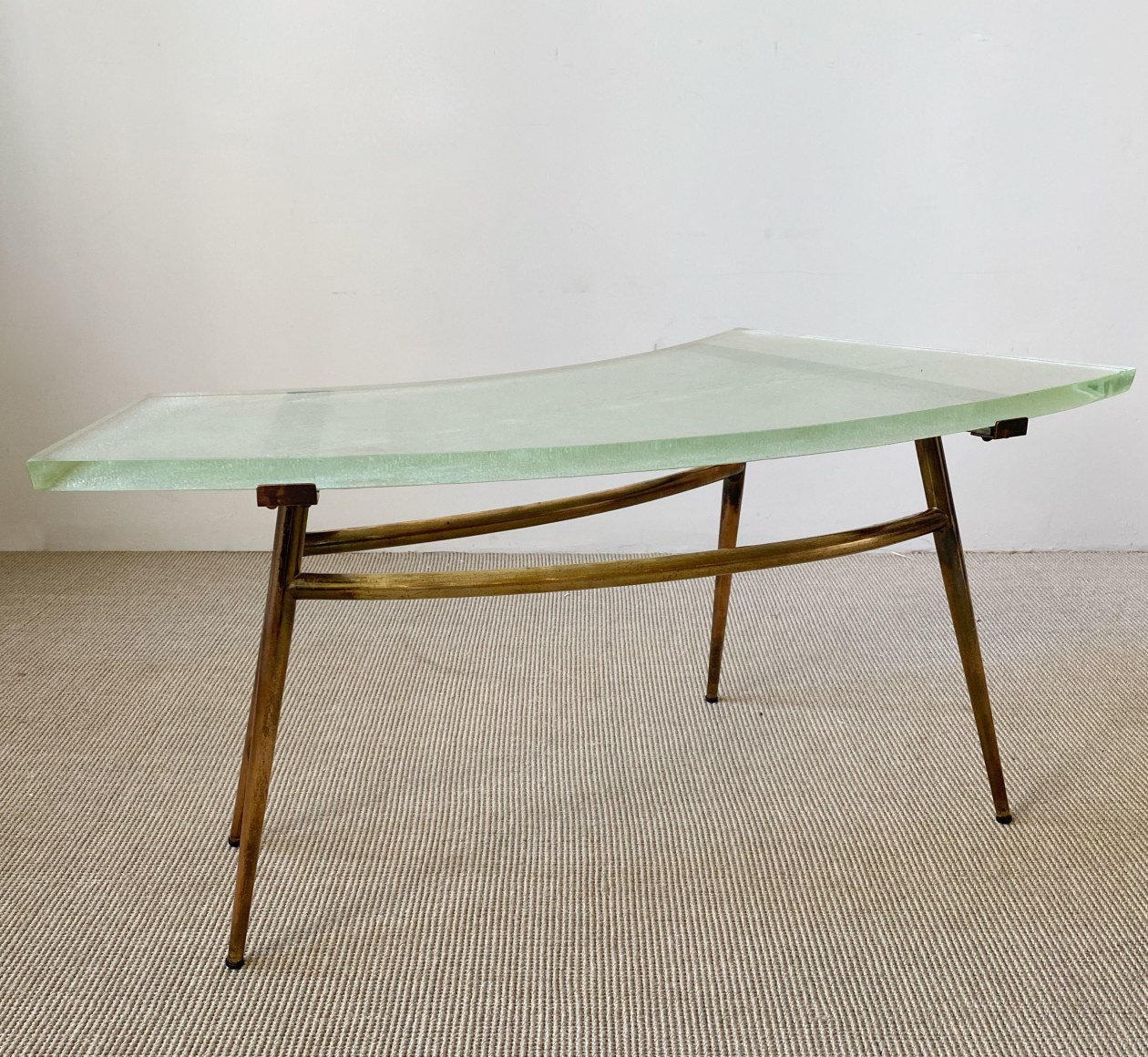 SAINT GOBAIN GLASS AND BRASS TABLE France, c.1950