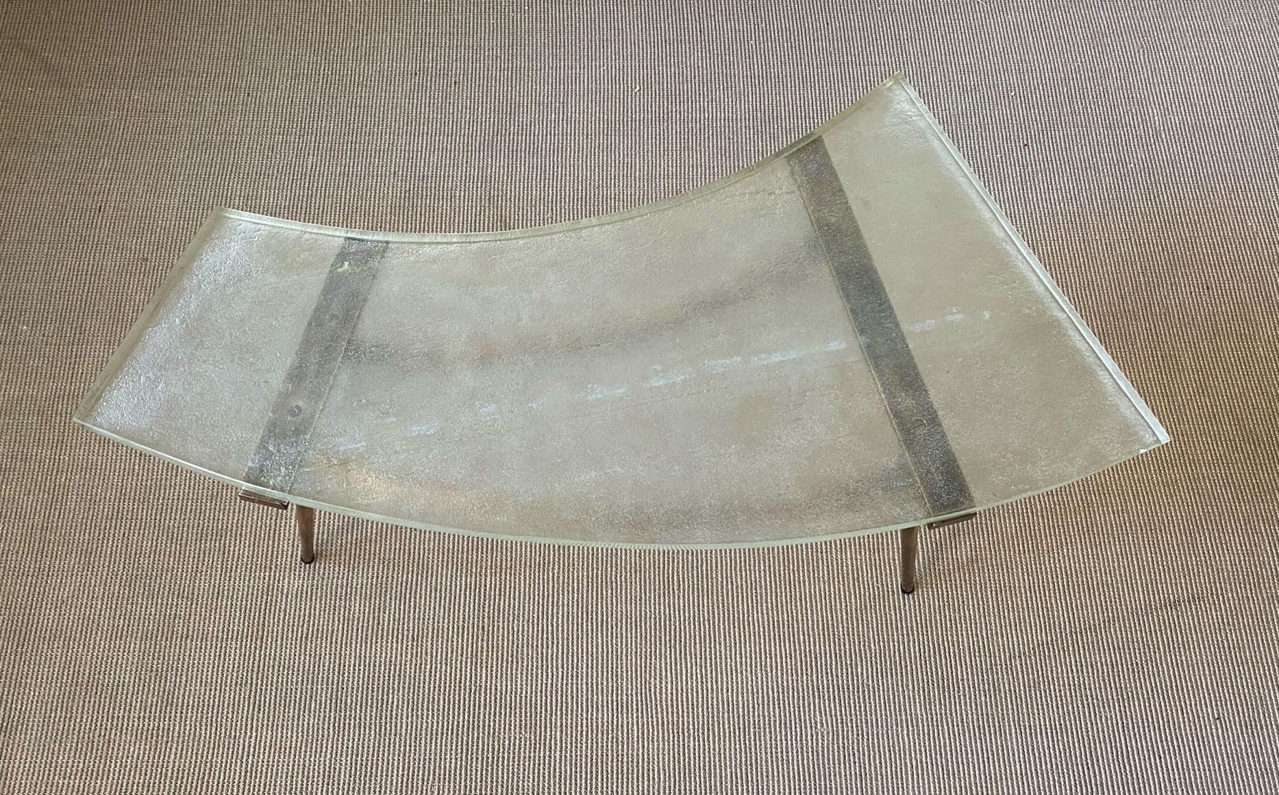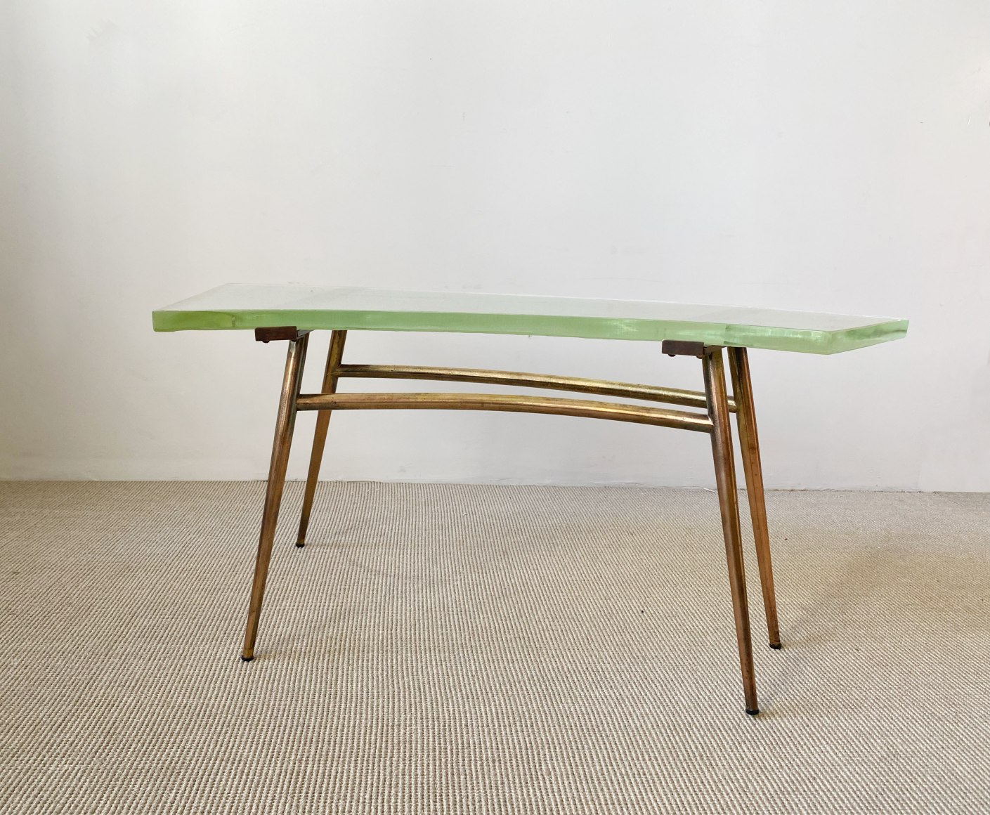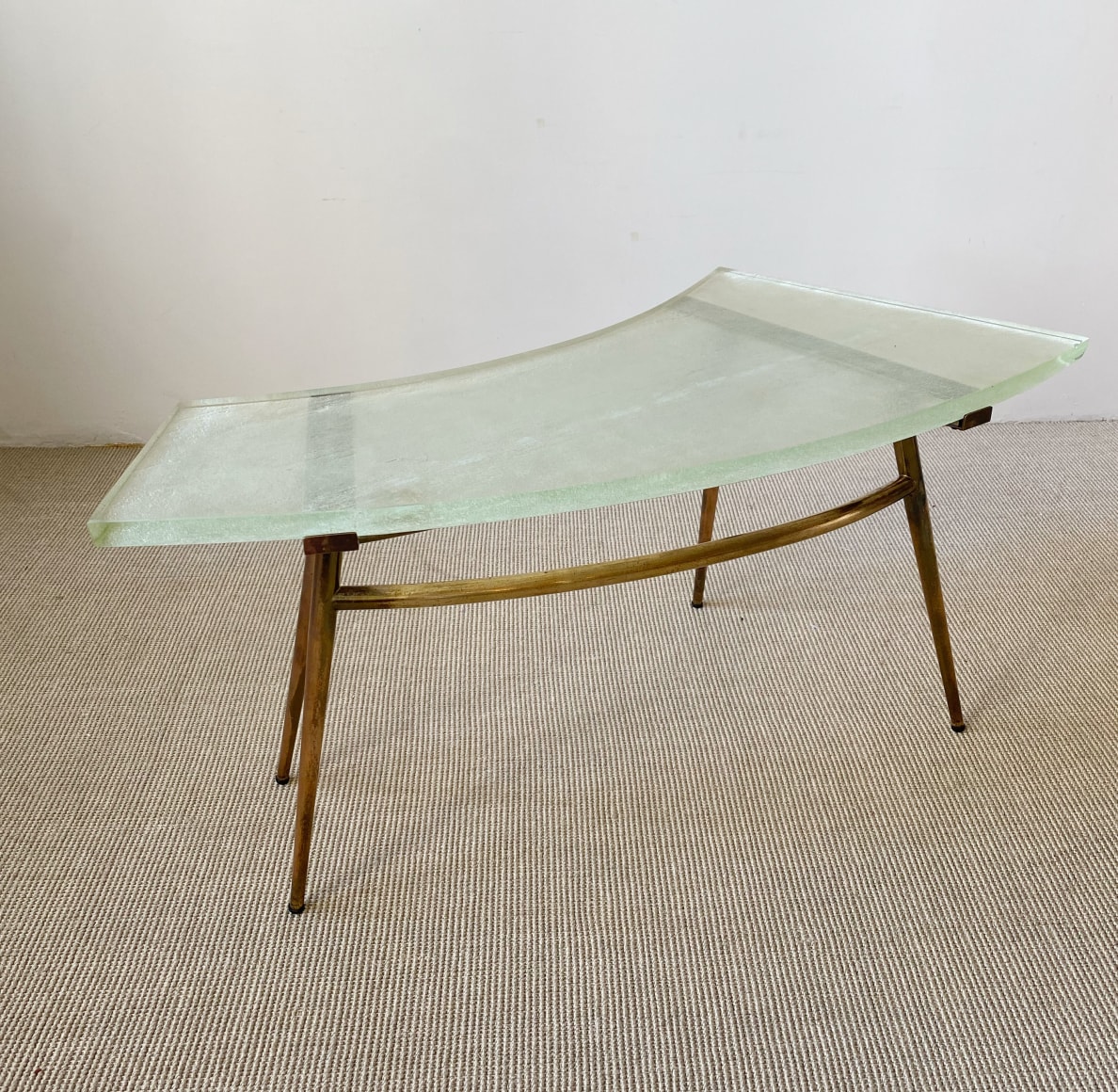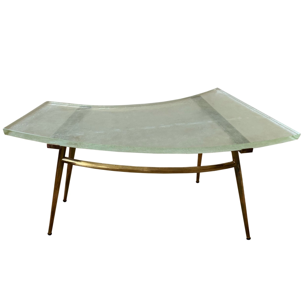 SAINT GOBAIN GLASS AND BRASS TABLE France, c.1950