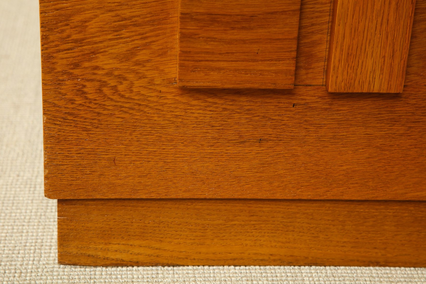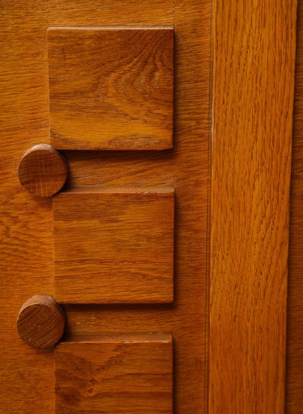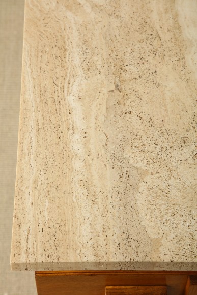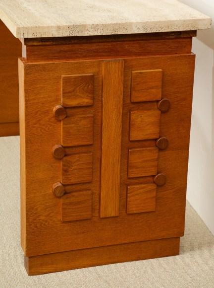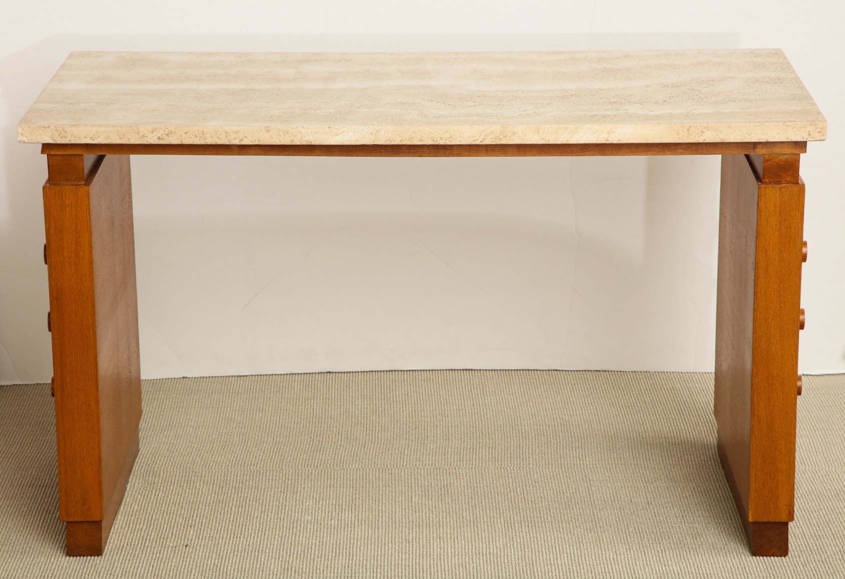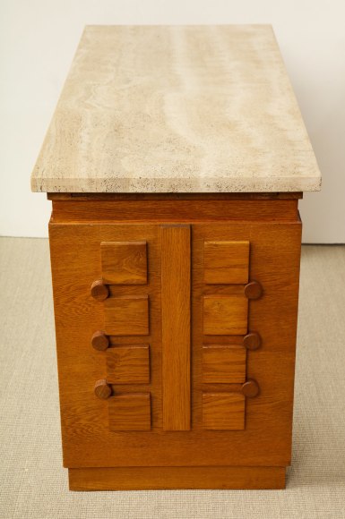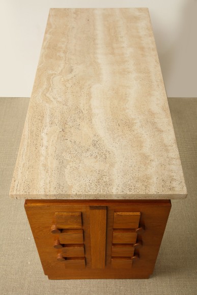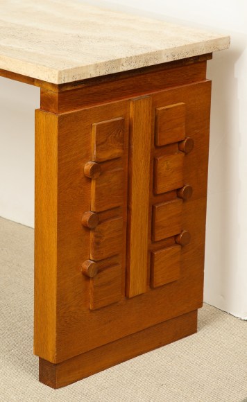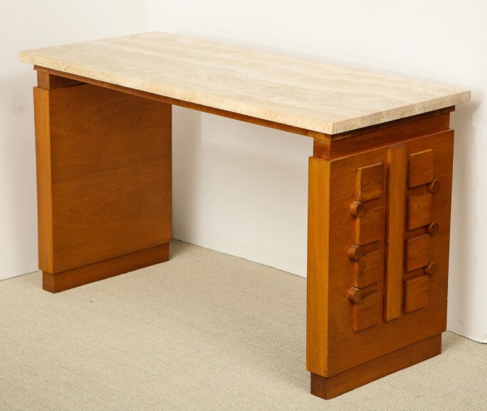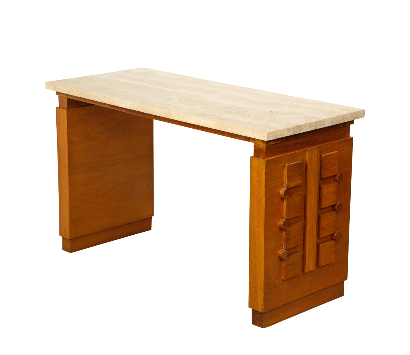 Sculpted oak console/desk with stone top by Charles Dudouyt