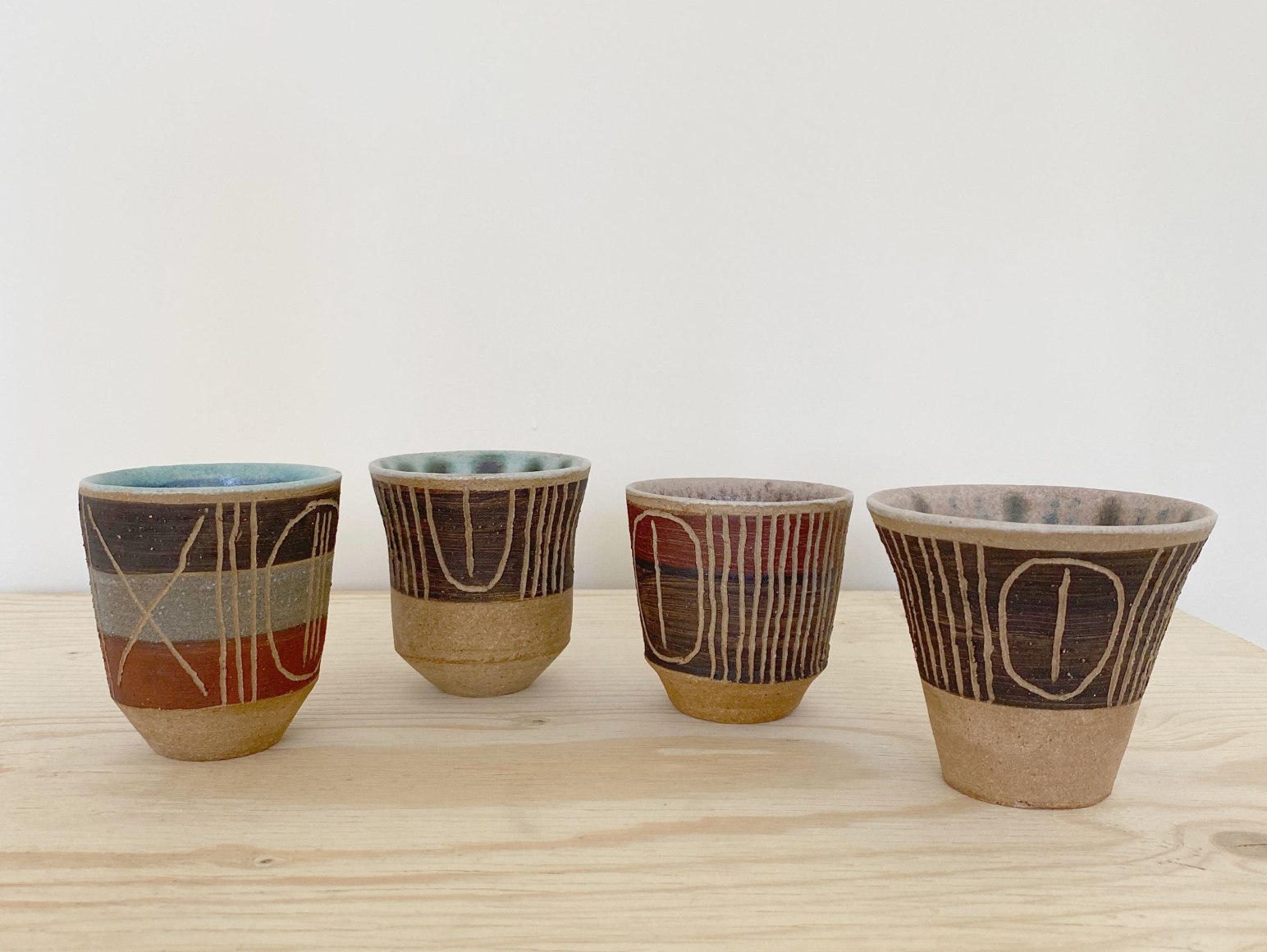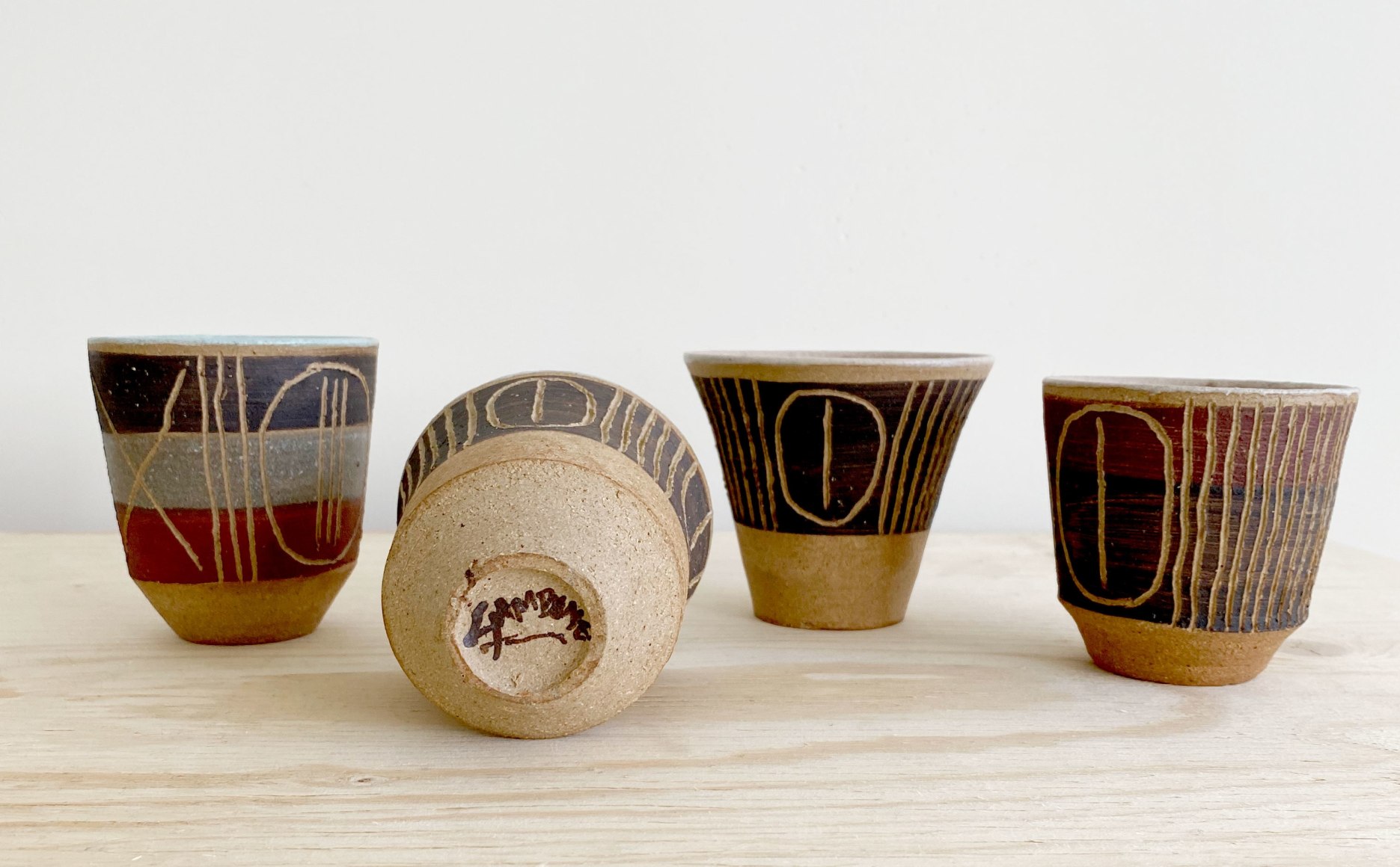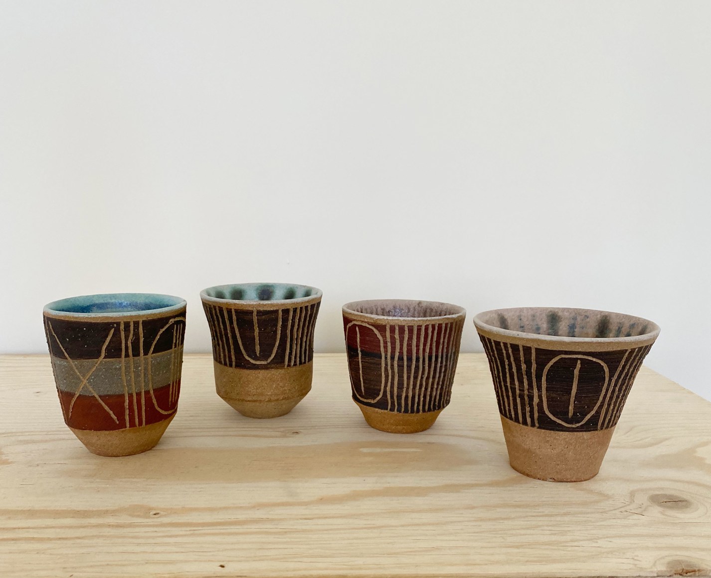 SET OF FOUR BRUNO GAMBONE CERAMIC CUPS