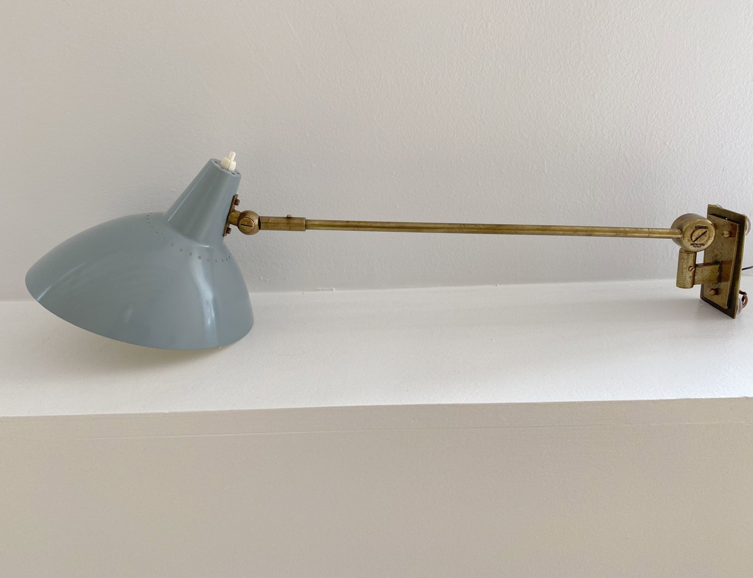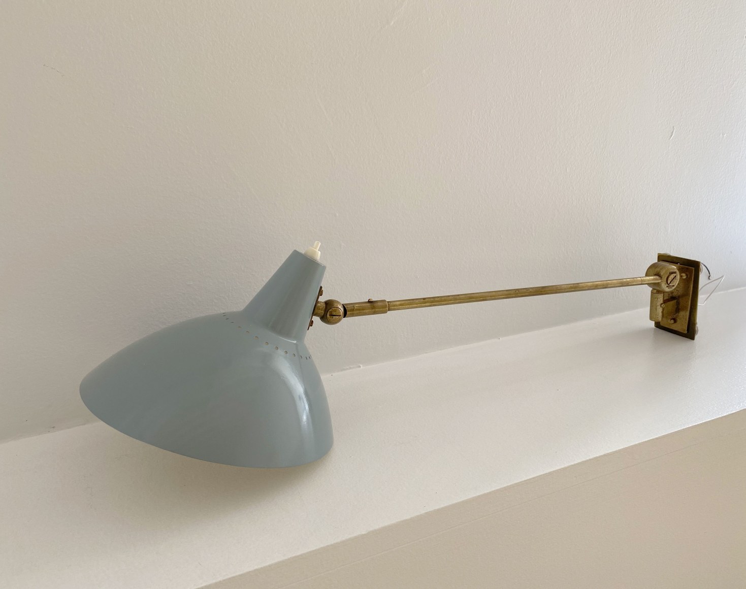 Single wall sconce with blue shade by Stilnovo Italy c. 1960