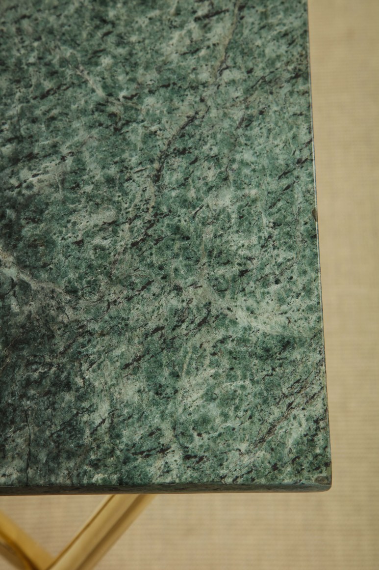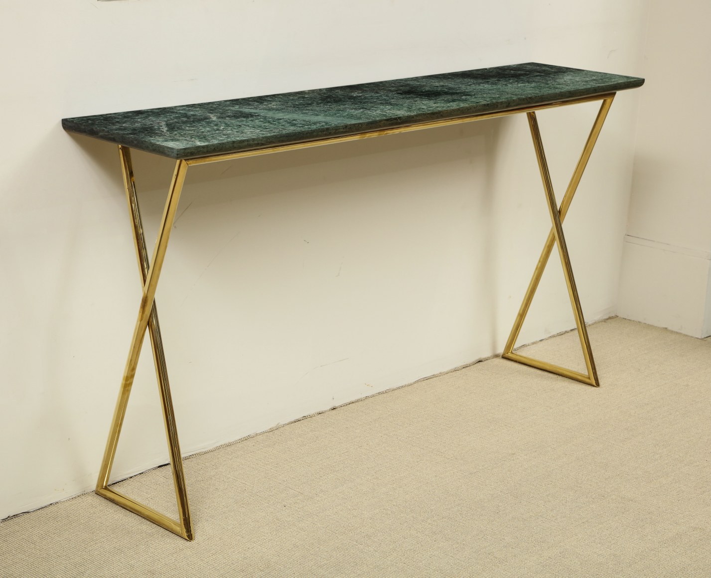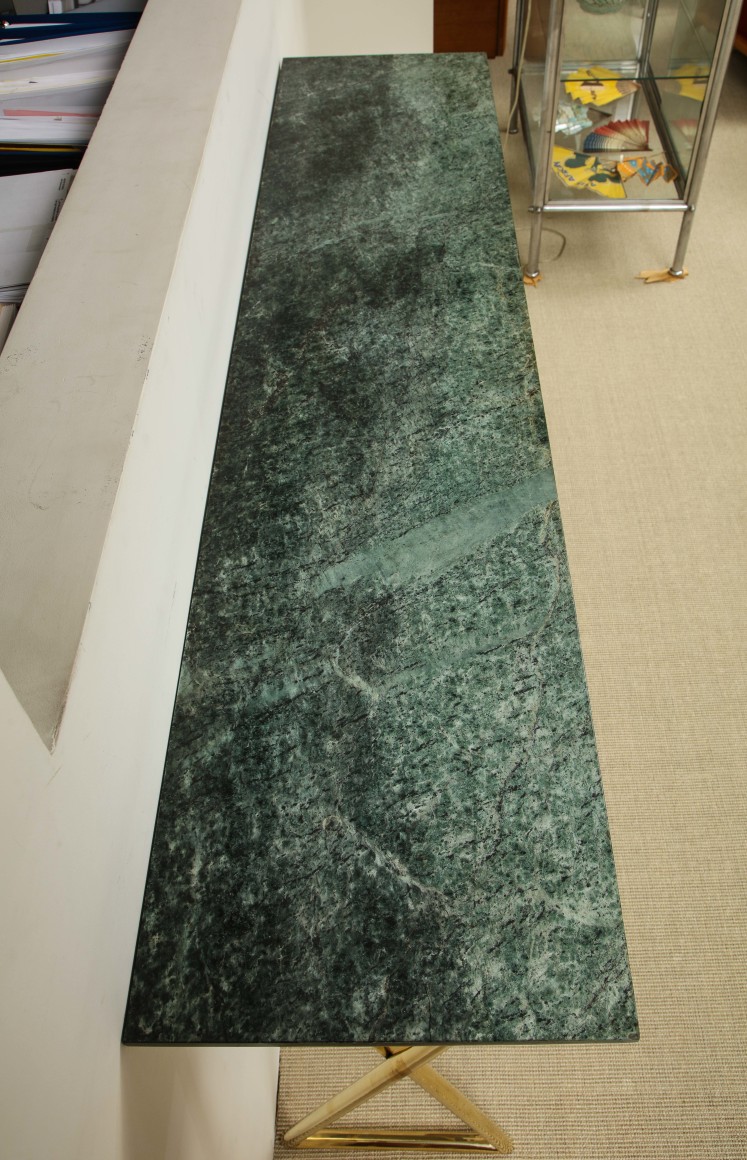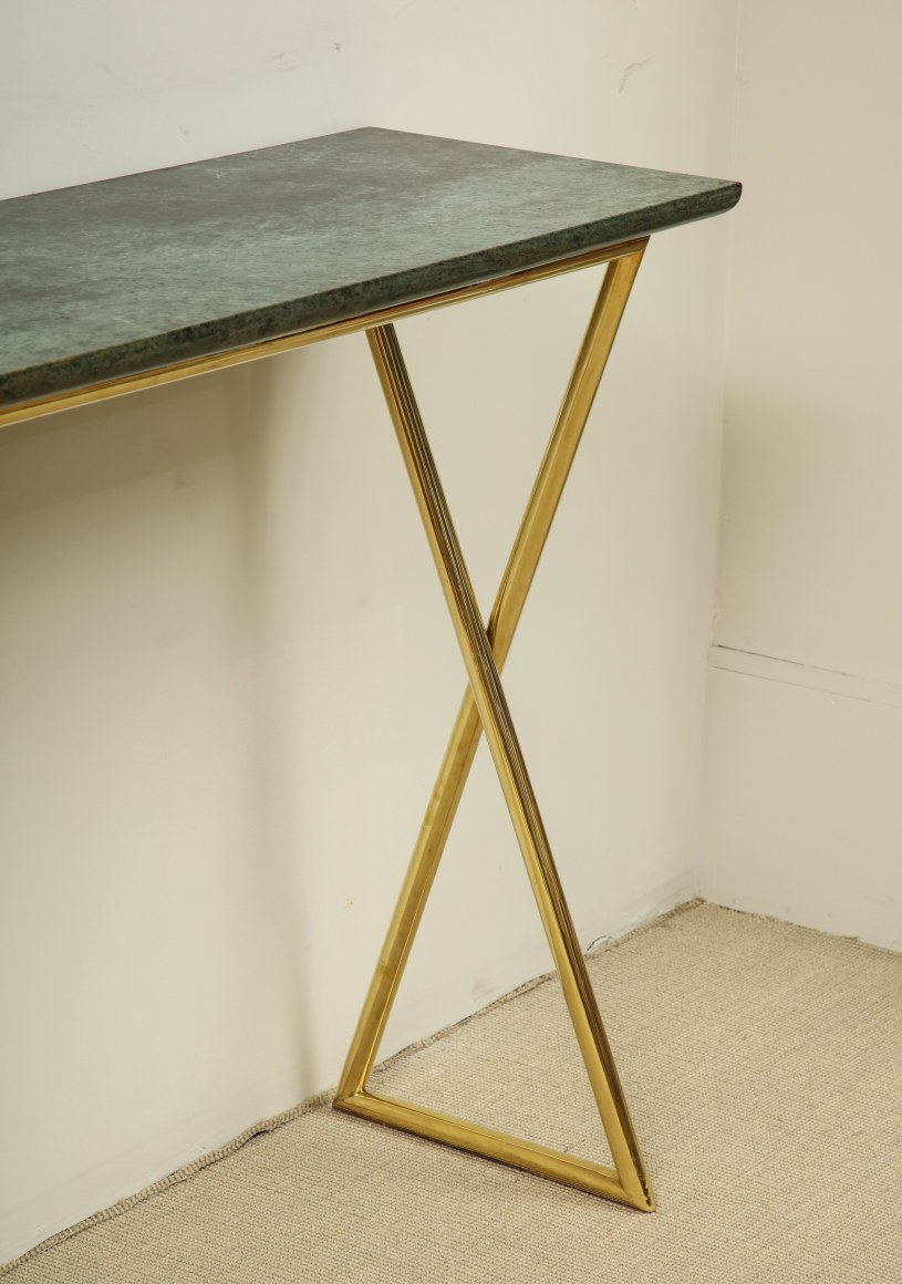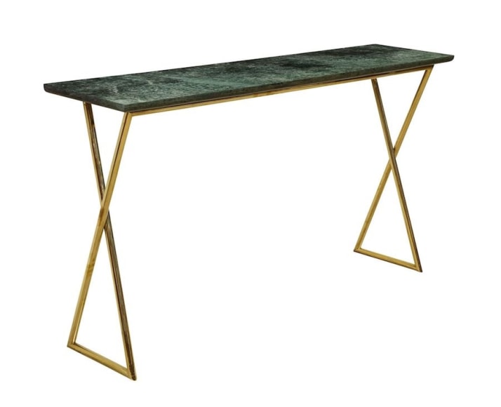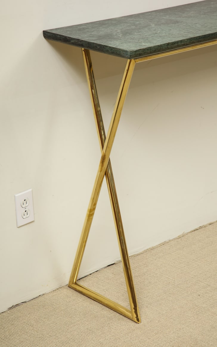 TALL CONSOLE WITH MARBLE TOP + BRASS BASE