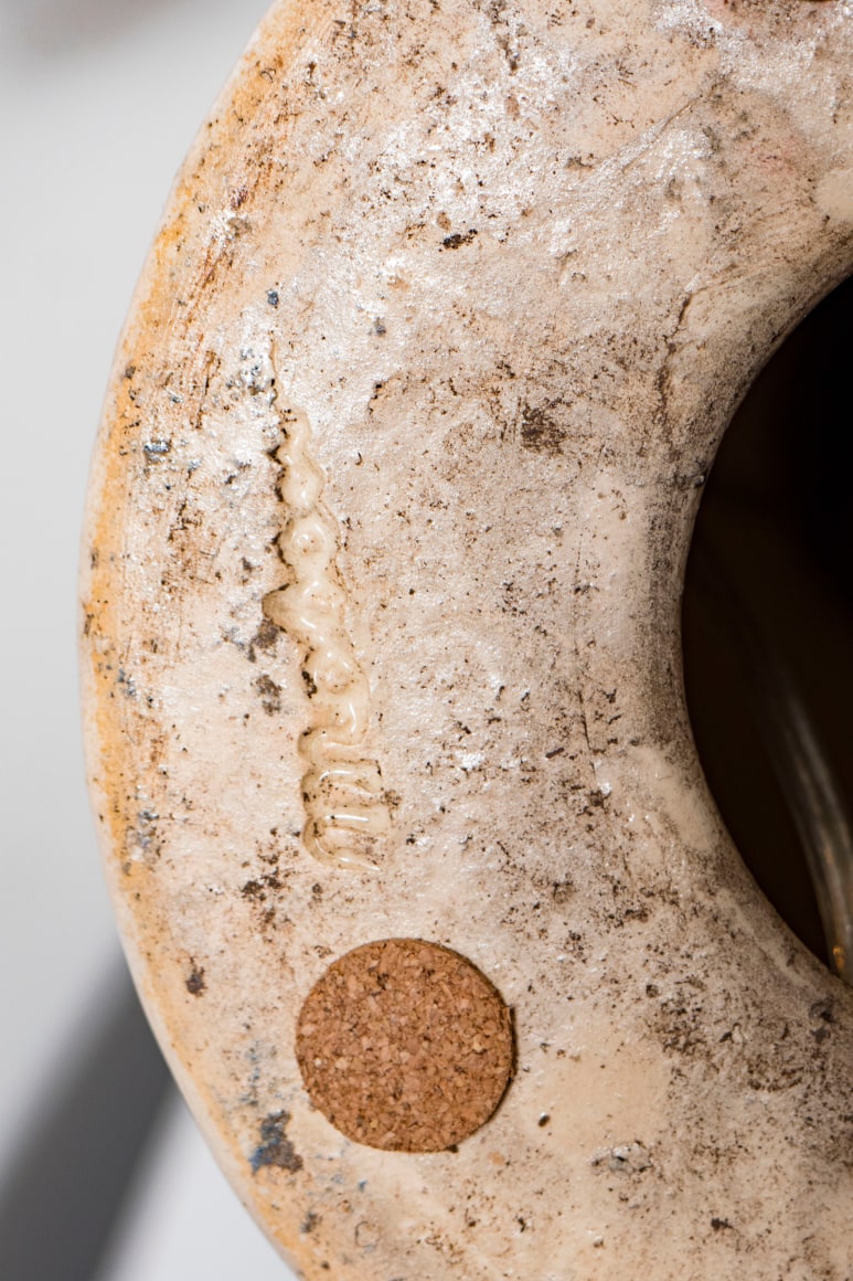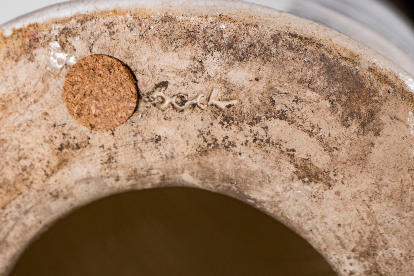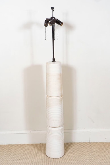 Tall white ceramic "Mobach" floor lamp, Holland c. 1950
