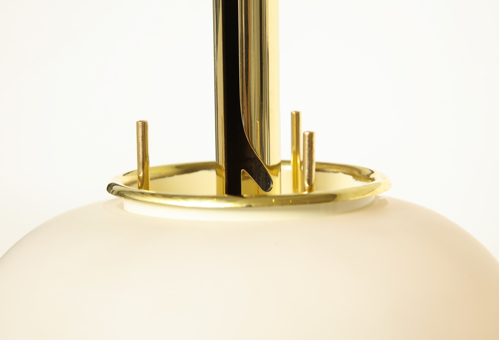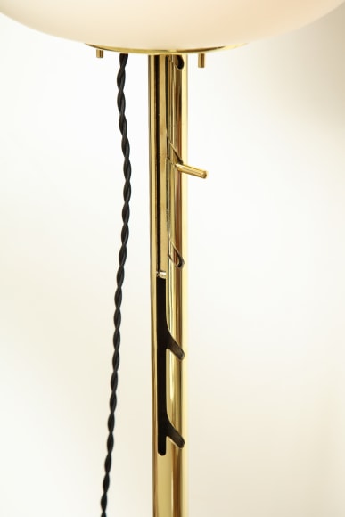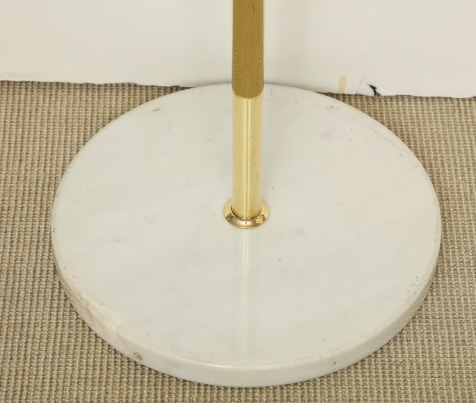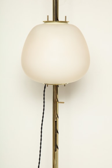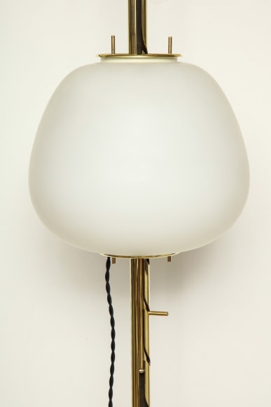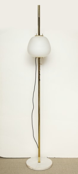 Tall standing lamp in brass with large frosted glass dome and marble base by Angelo Lelii for Arredoluce, Italy c. 1956