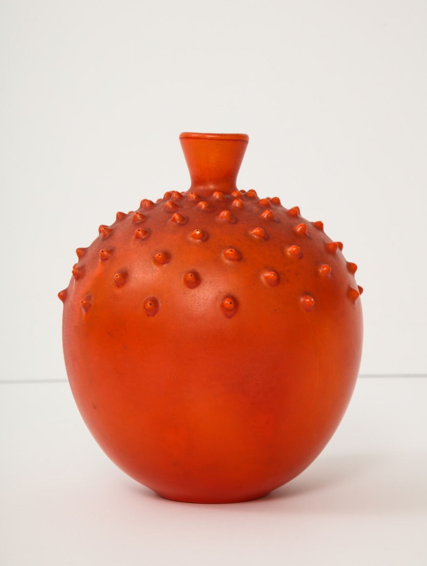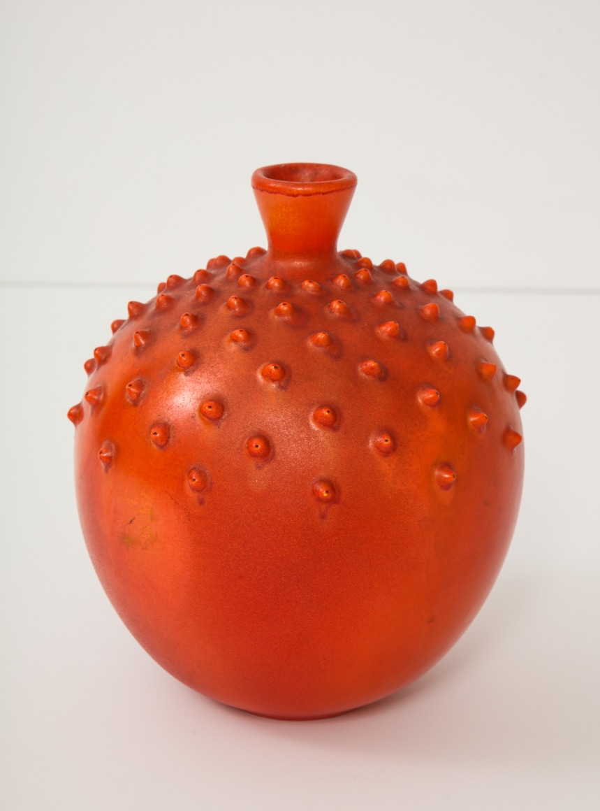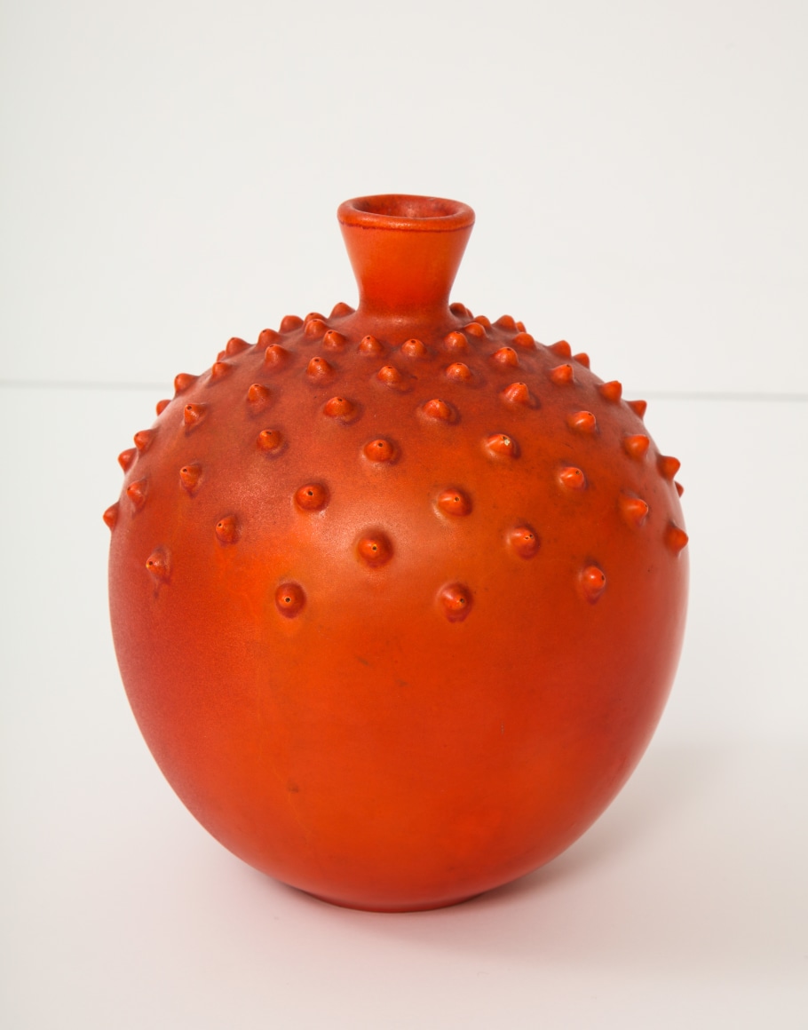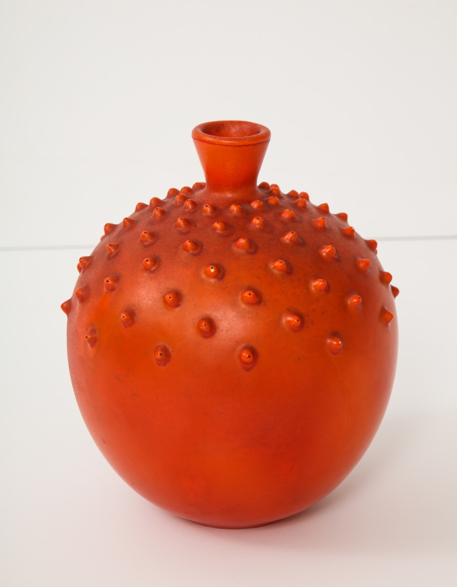 Red textured gourd shape vase by Gio Ponti for Ginori, Italy c. 1940