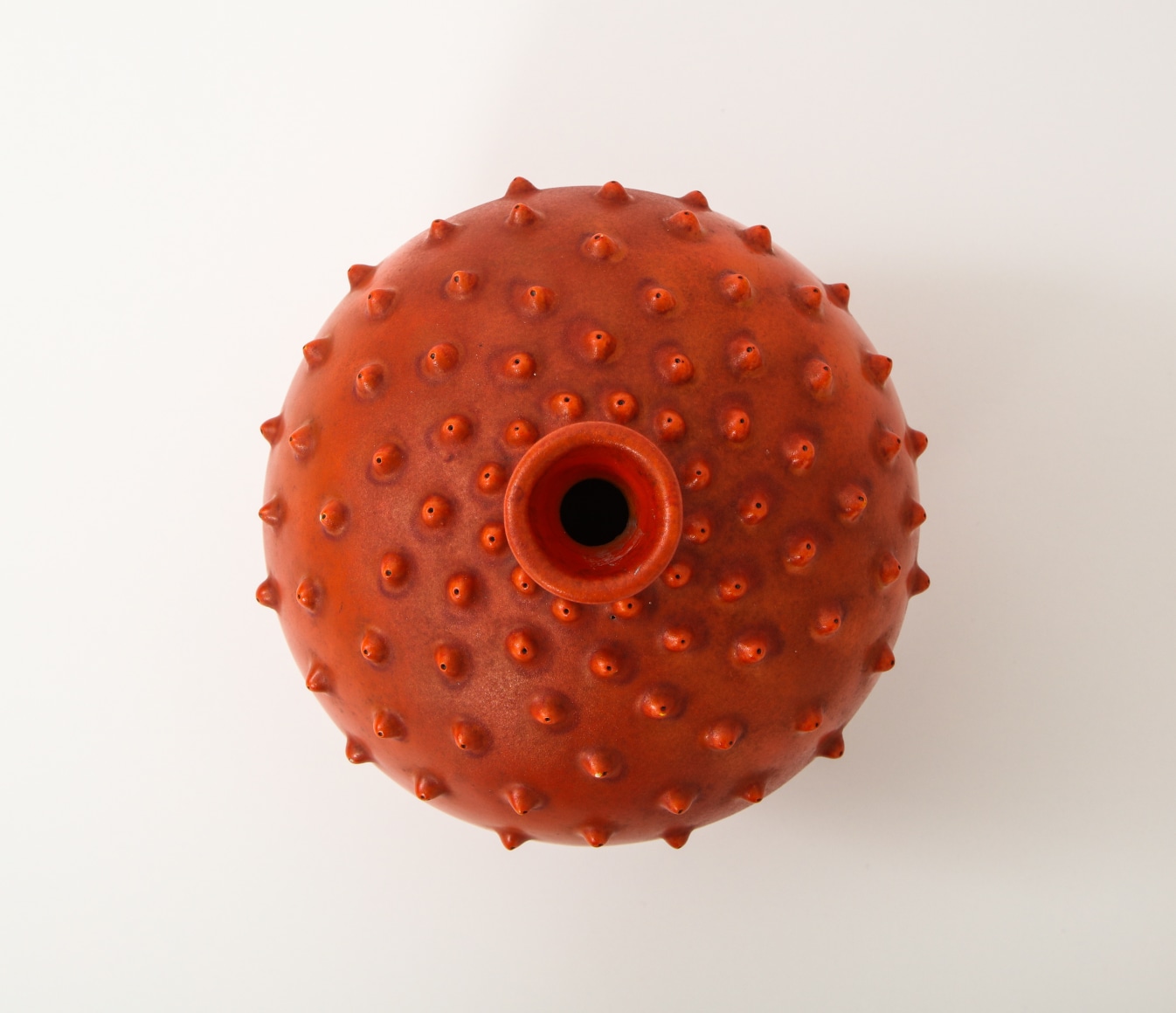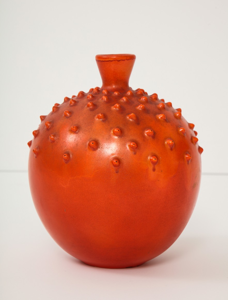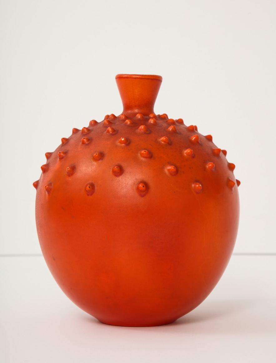 Red textured gourd shape vase by Gio Ponti for Ginori, Italy c. 1940