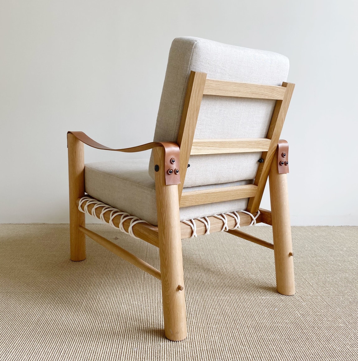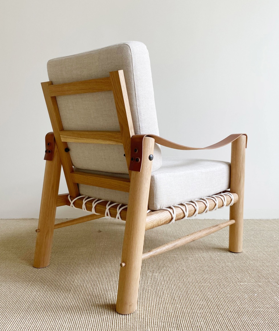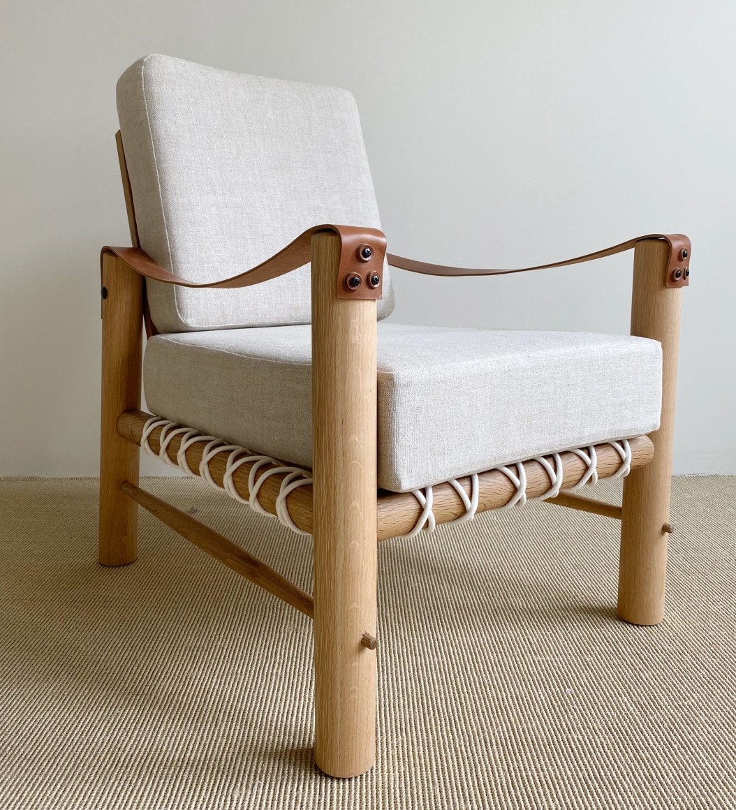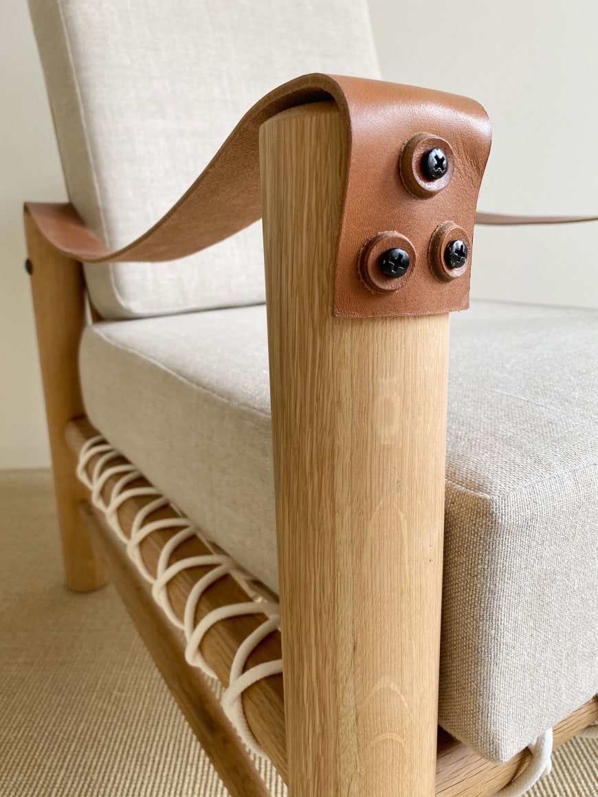 1930 African Safari inspired chairs with oak frame and leather strap arms