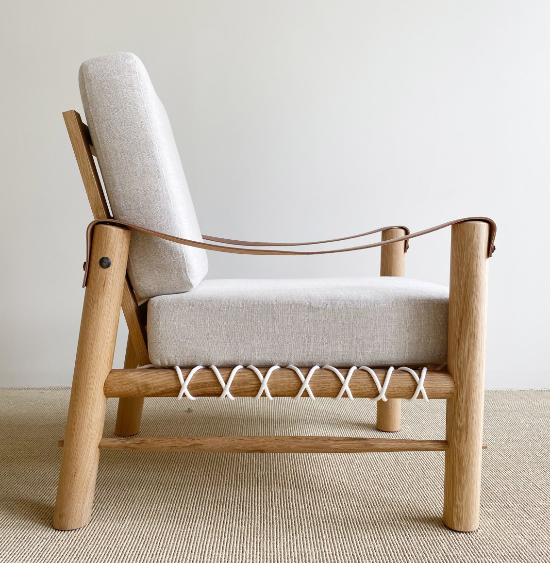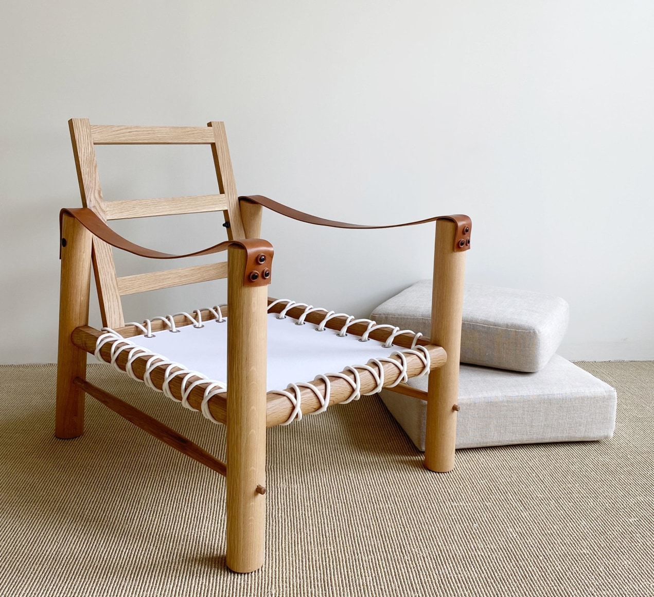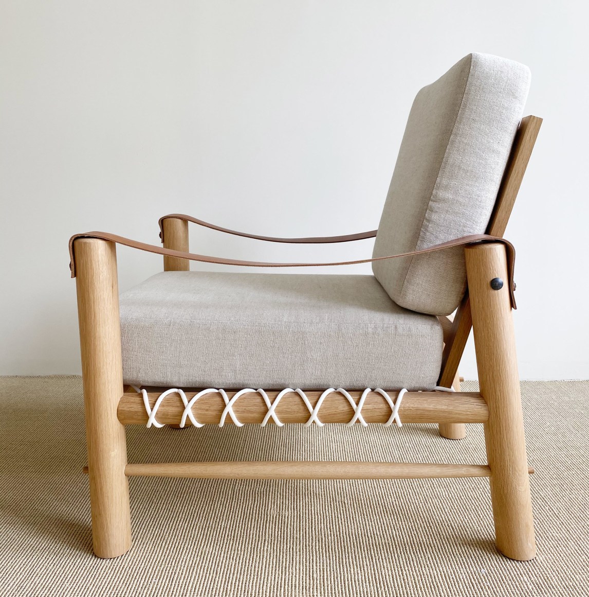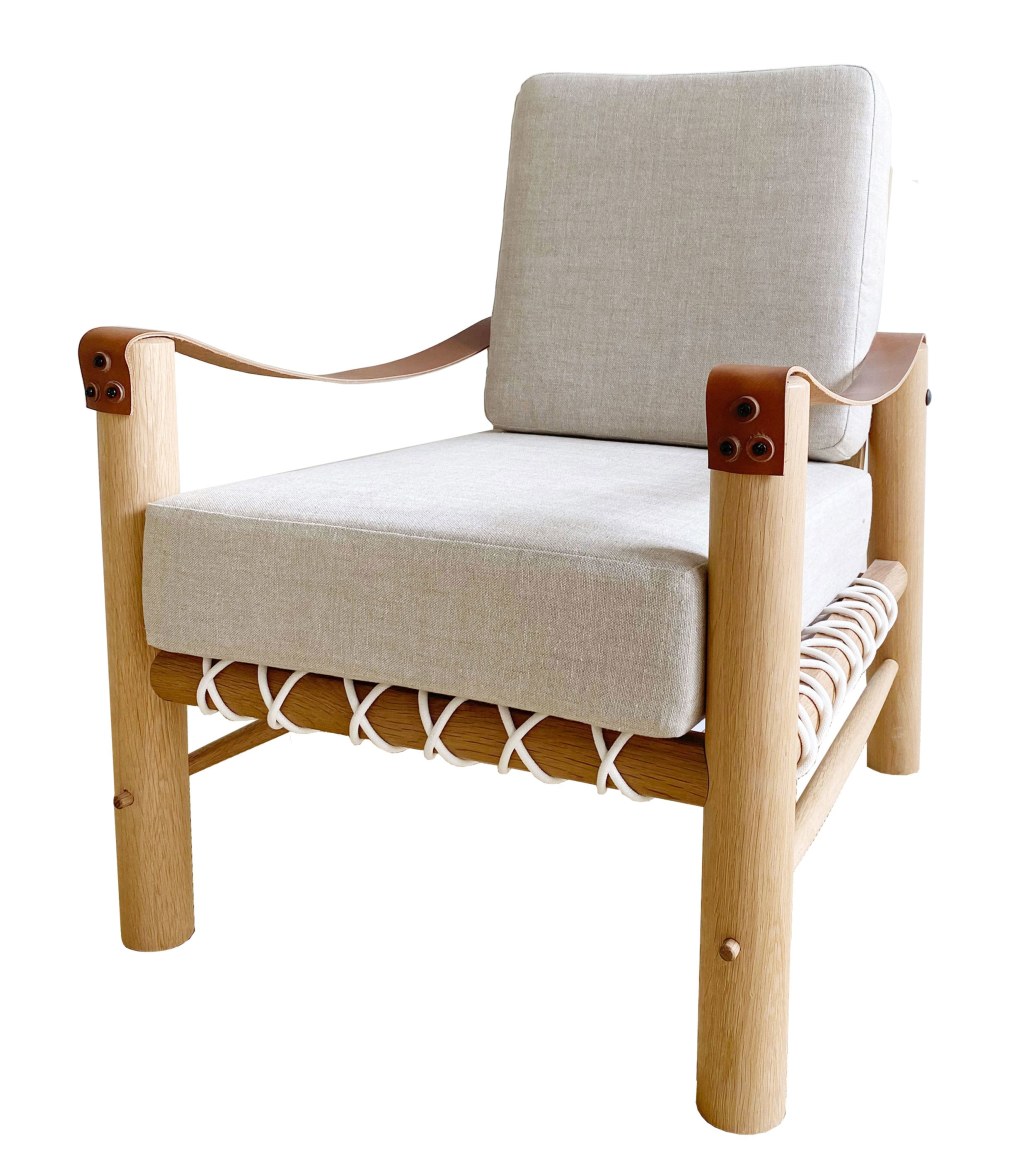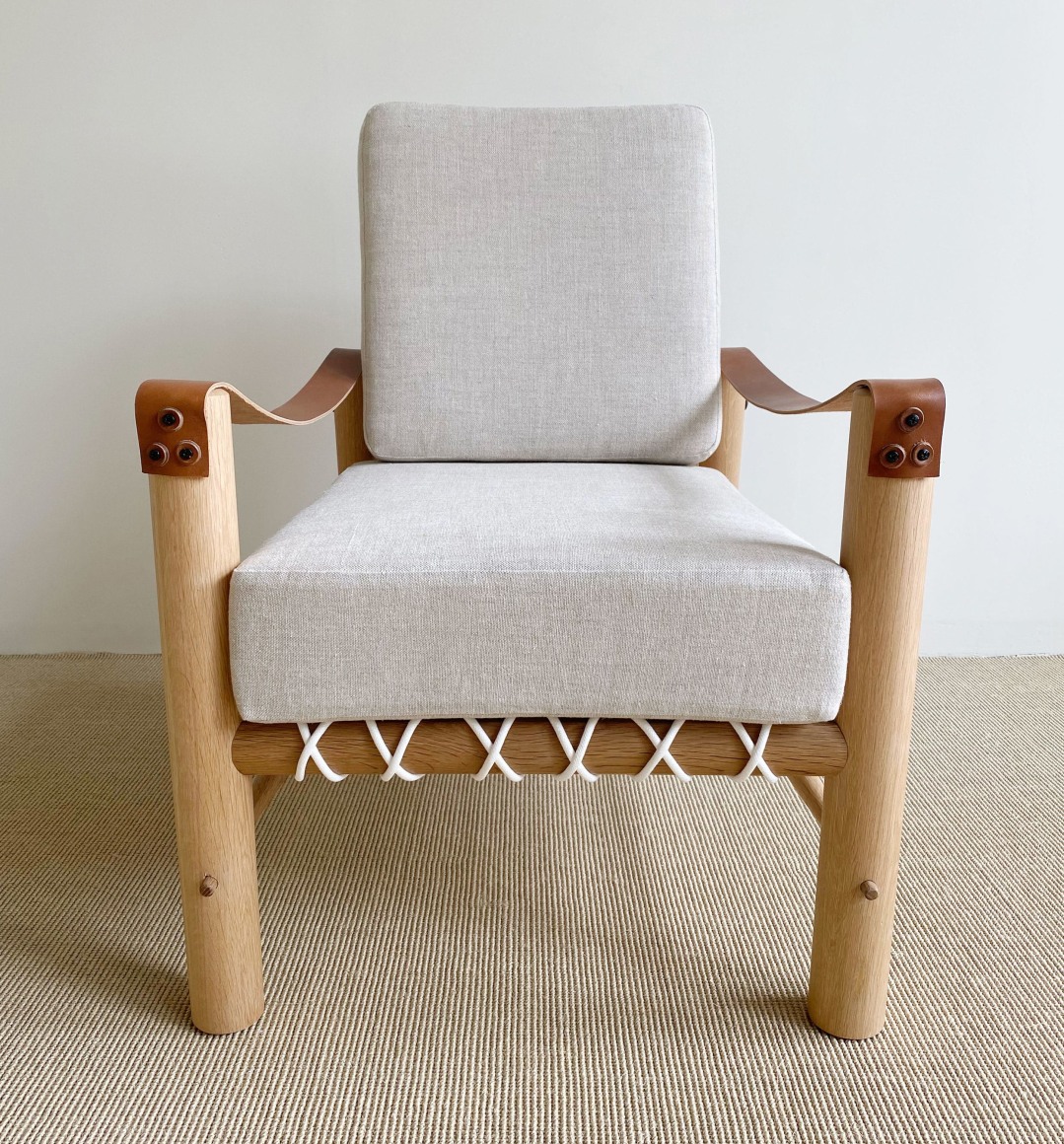 1930 African Safari inspired chairs with oak frame and leather strap arms
