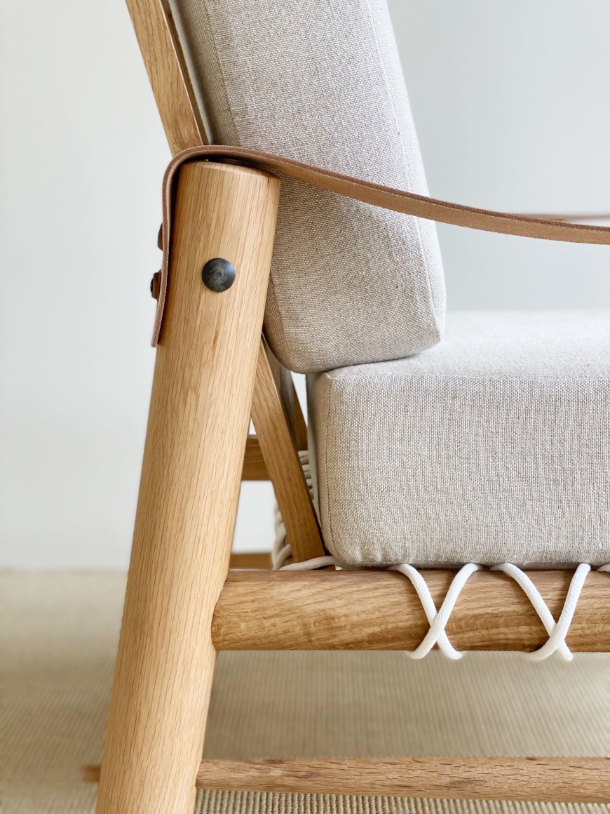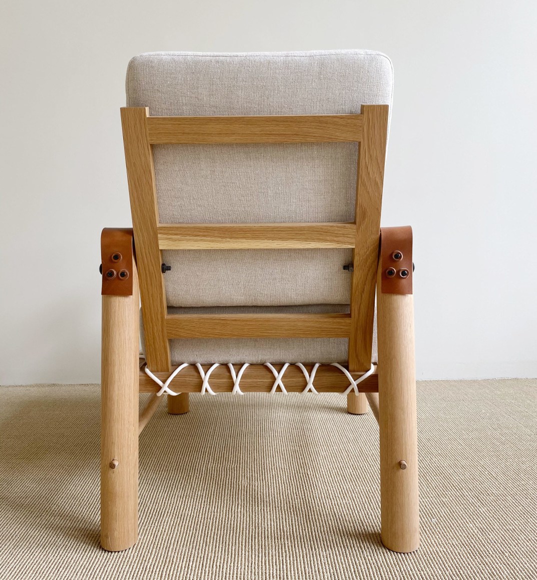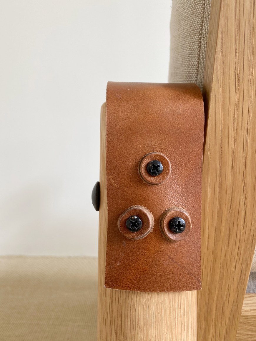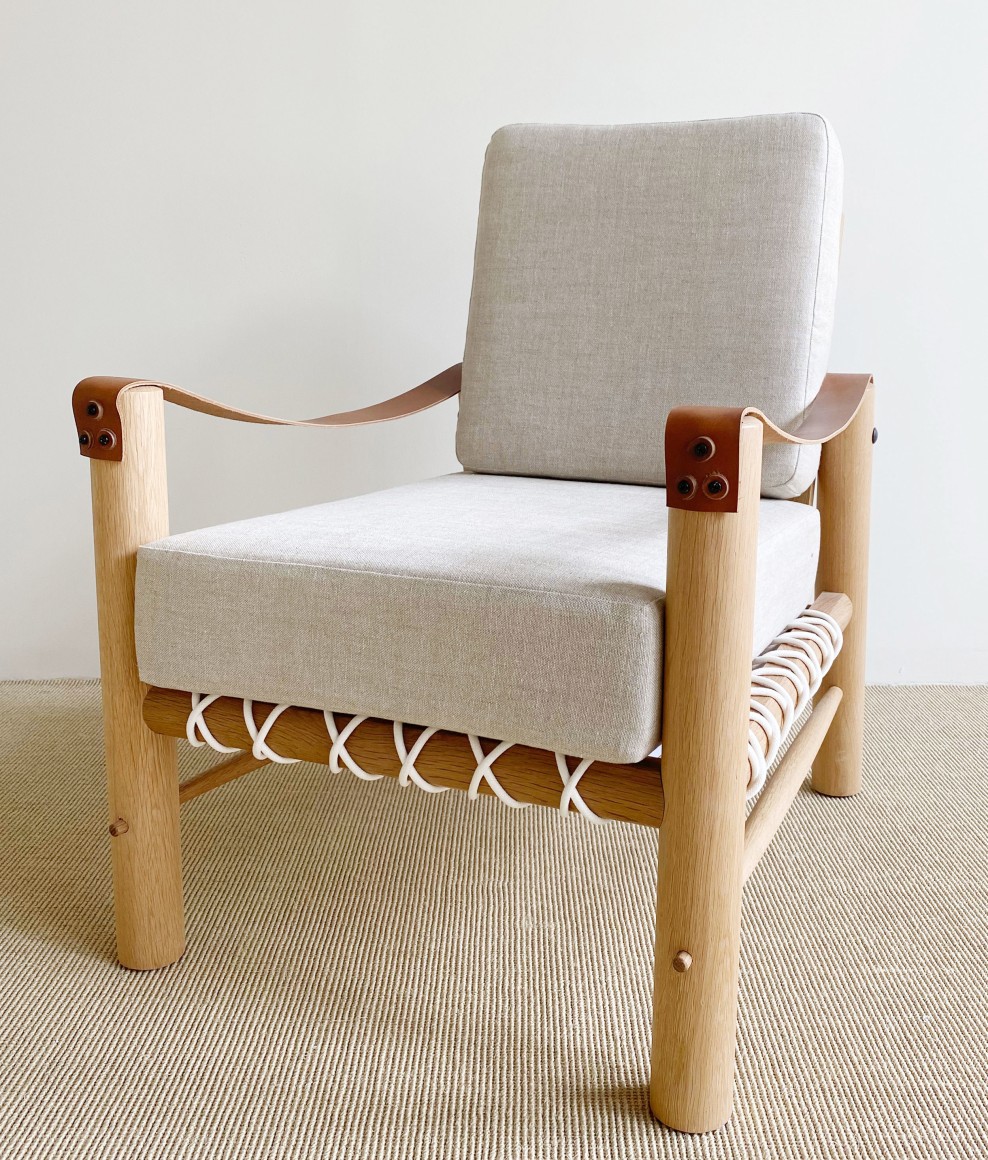 1930 African Safari inspired chairs with oak frame and leather strap arms
