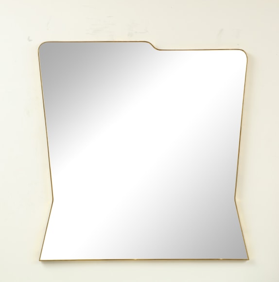 Asymmetrical mirror with brass frame in the Italian 1950's style by Appel Modern