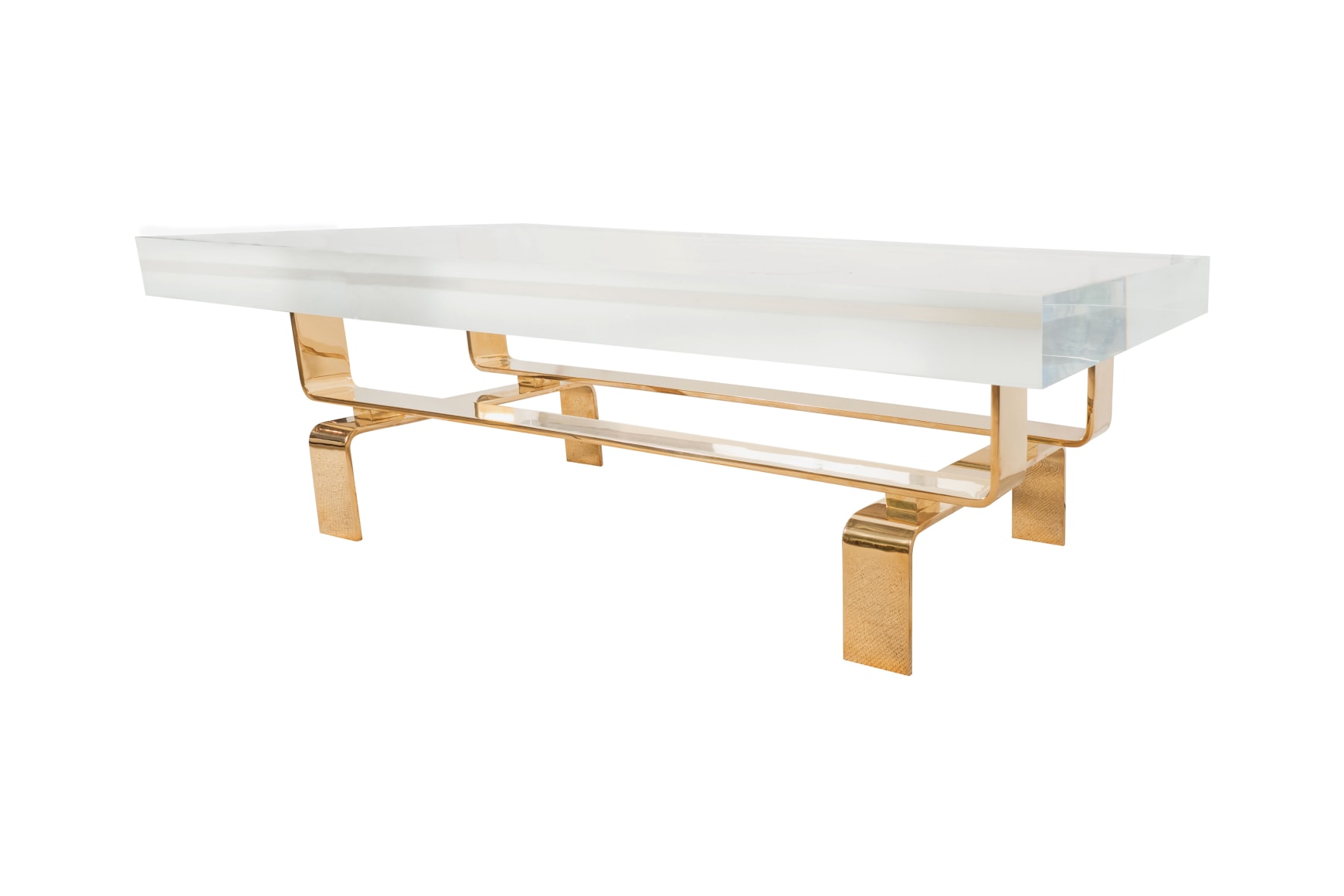 Bronze cocktail table with rectangular lucite top by Appel Modern
