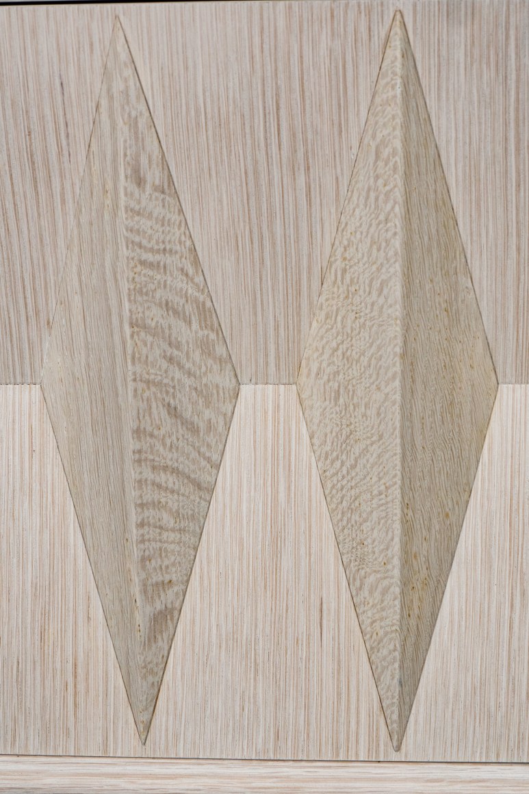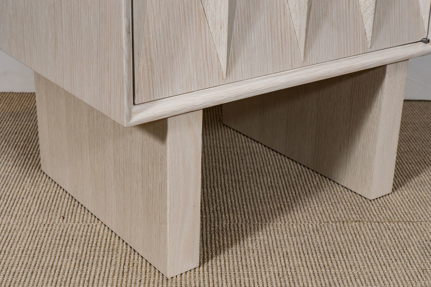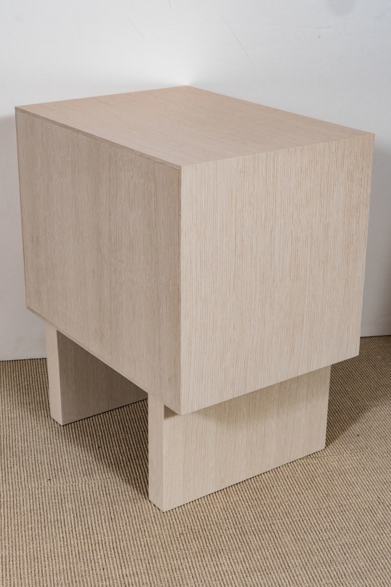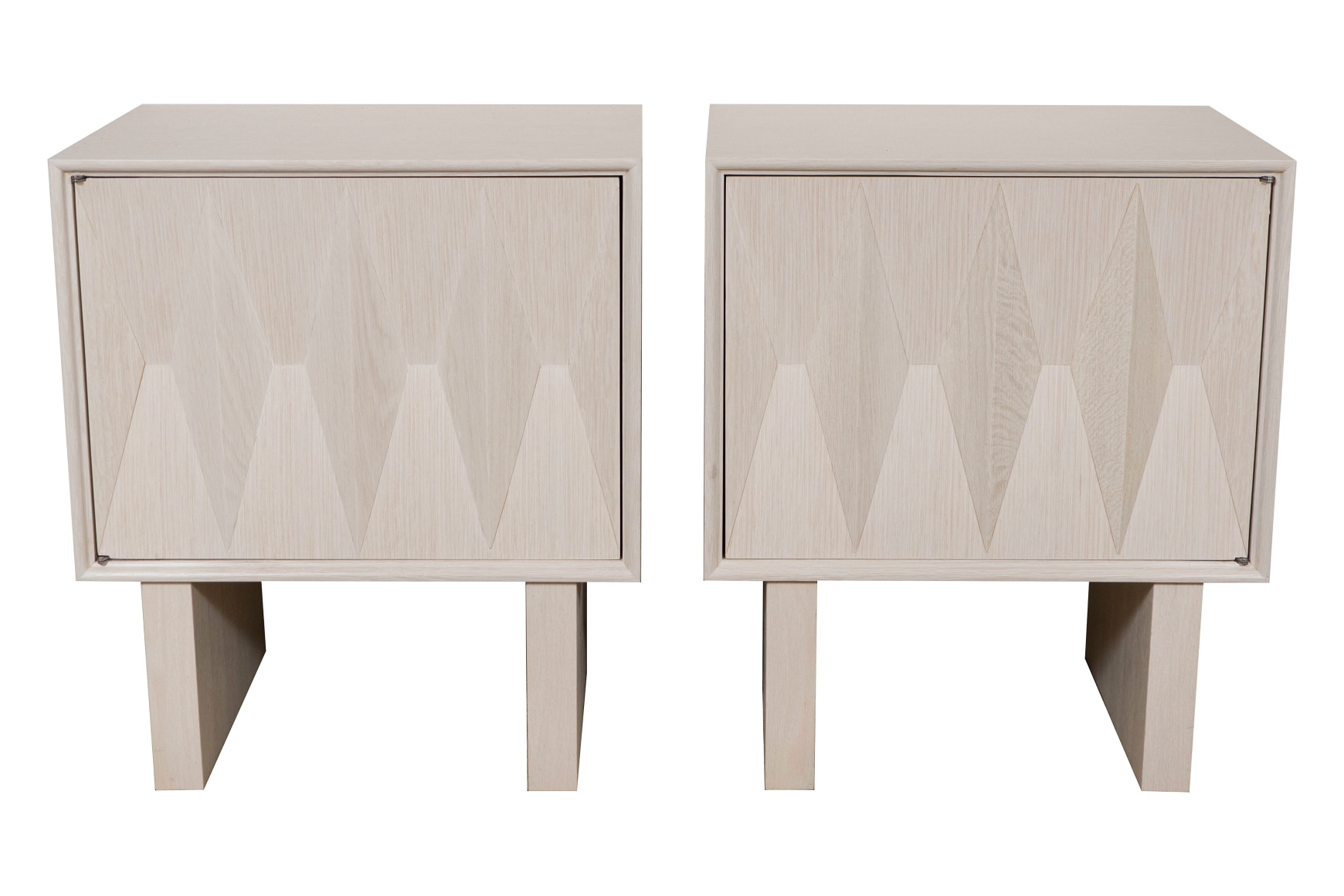 Pair of sculpted front night stands in light cerused oak with interior shelf and drawer by Appel Modern