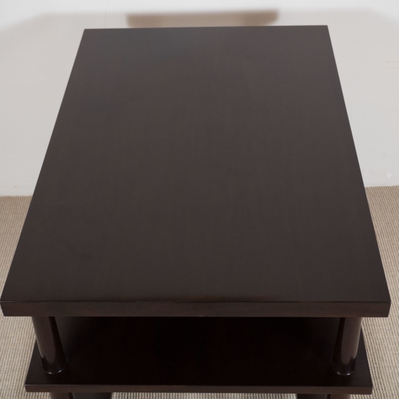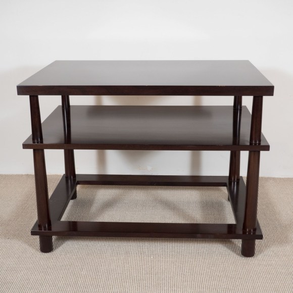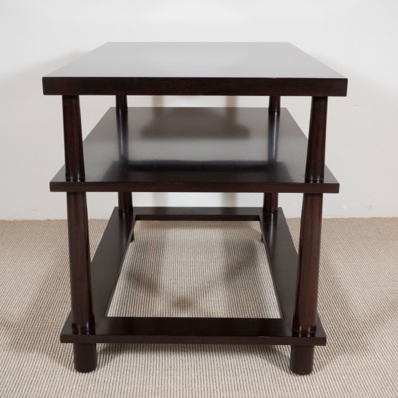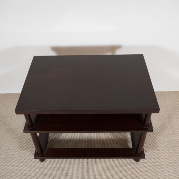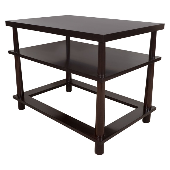 Pair of mid-century style, three-tier end tables with open lower shelf by Appel Modern, Contemporary